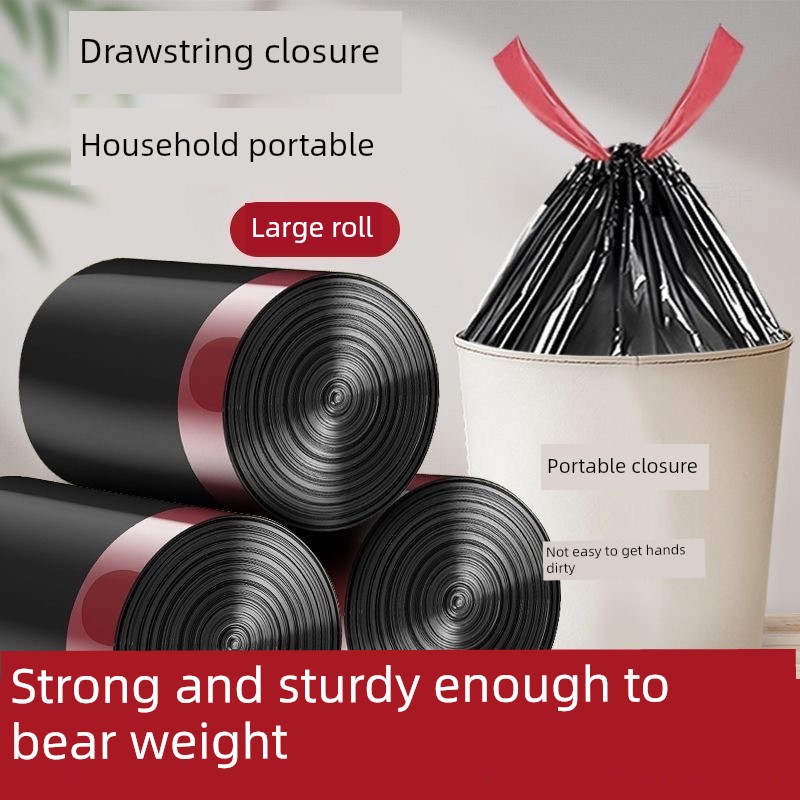 [about 10 Pieces Per Roll] Black Drawstring Garbage Bag