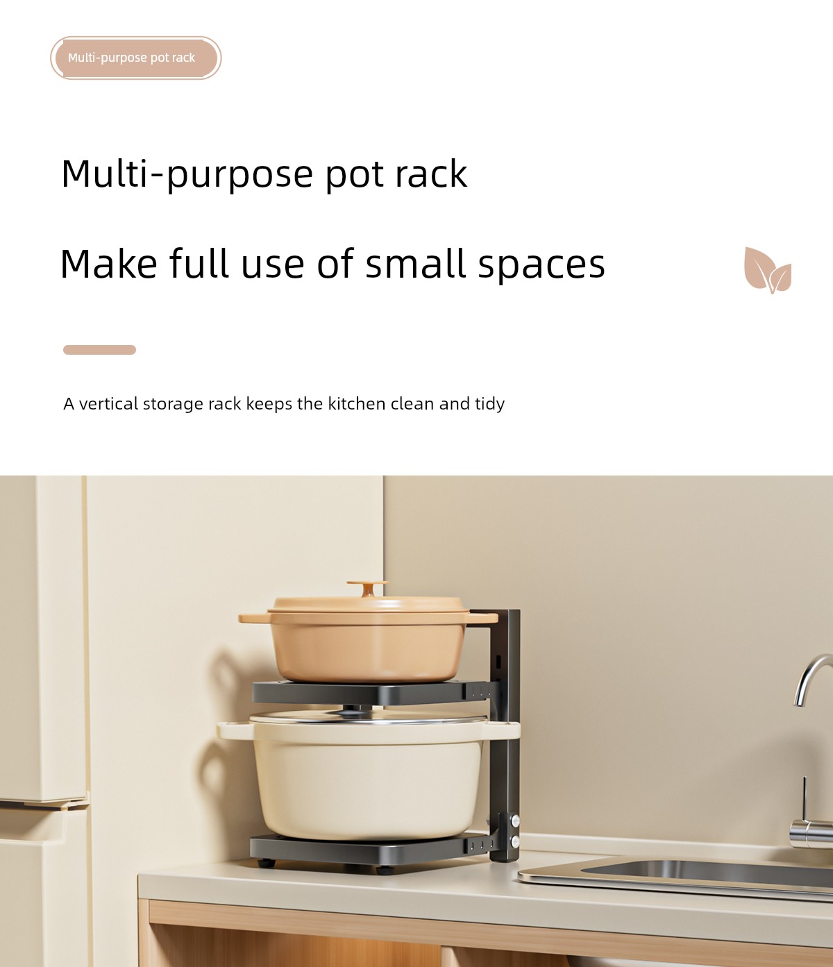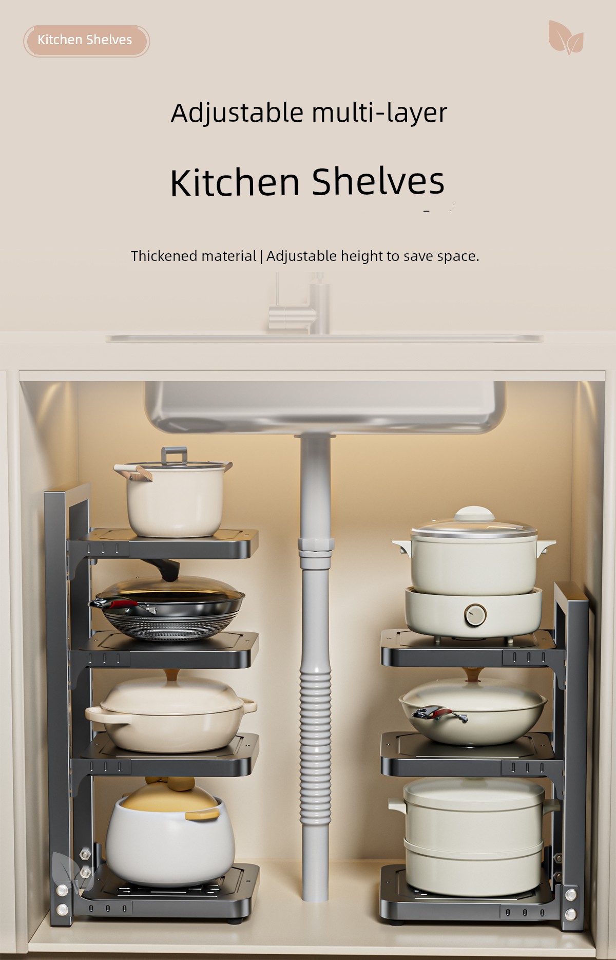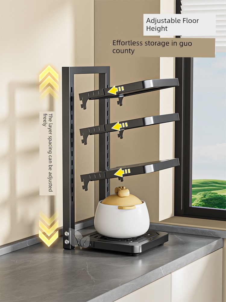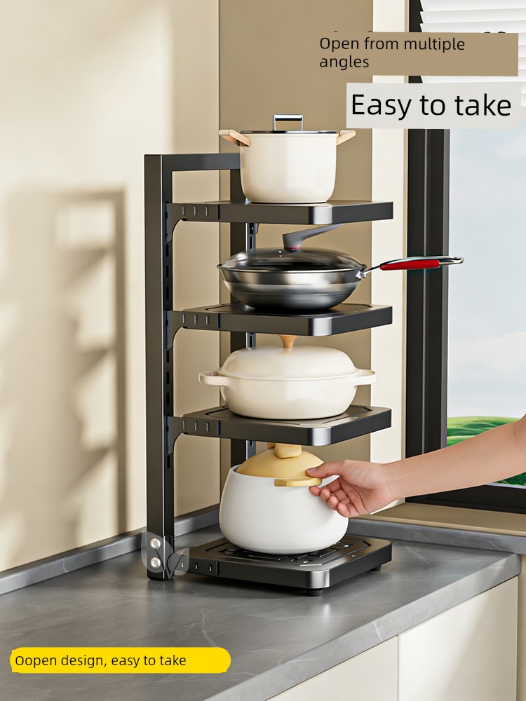 Pot Storage Rack Kitchen Cabinet Multi-Layer Storage Rack Household Countertop Multi-Functional Layered Under-Sink Pot Rack