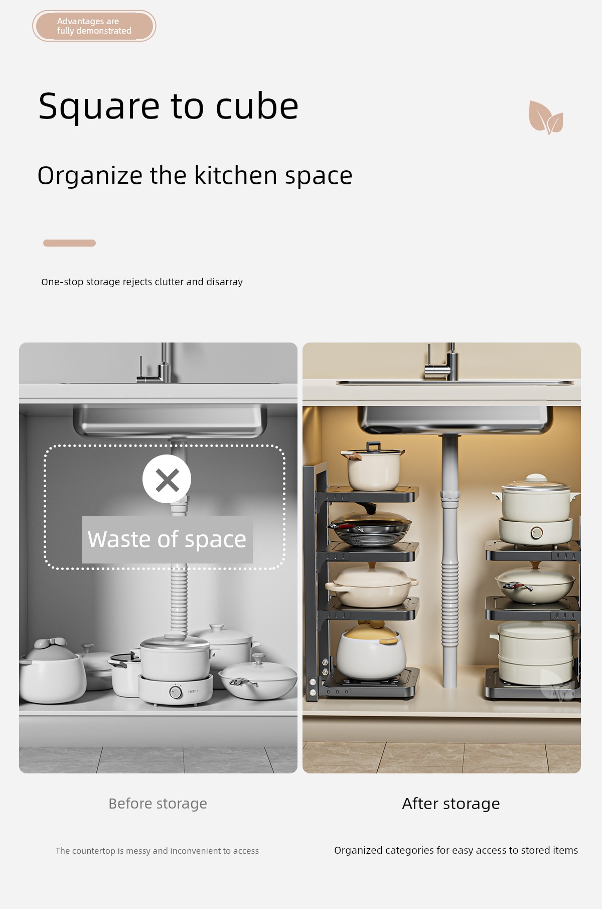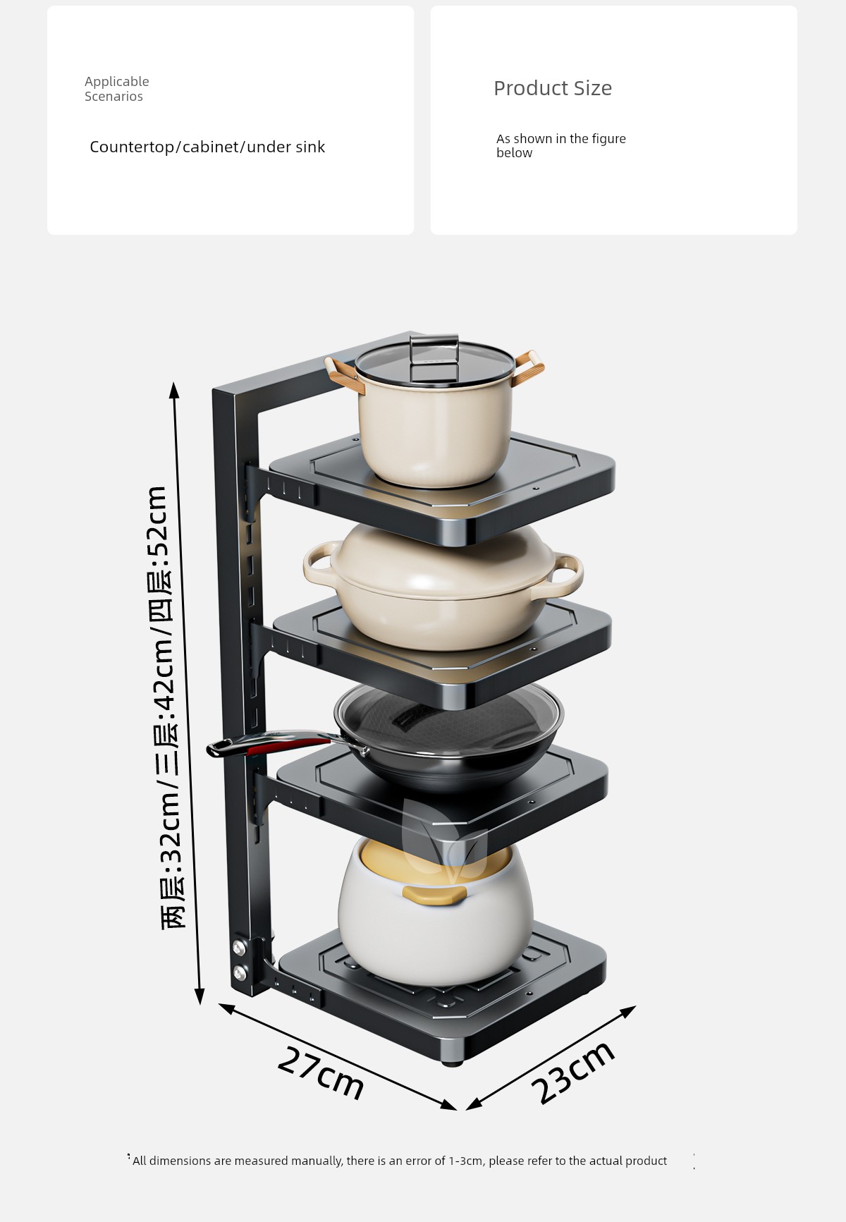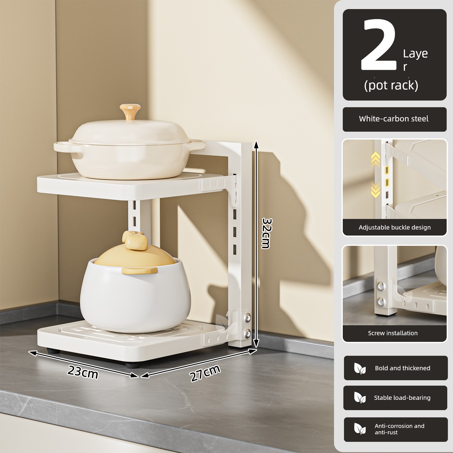 Pot Storage Rack Kitchen Cabinet Multi-Layer Storage Rack Household Countertop Multi-Functional Layered Under-Sink Pot Rack