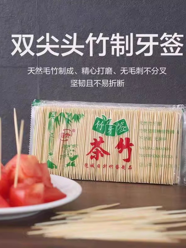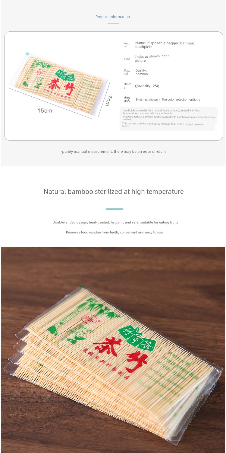 Natural Bamboo Double-Pointed Toothpicks, Disposable, for Home and Commercial Use, Portable Bagged Toothpicks