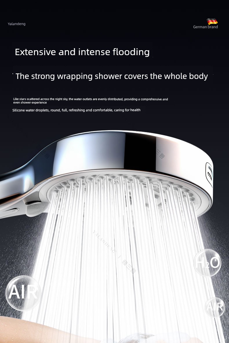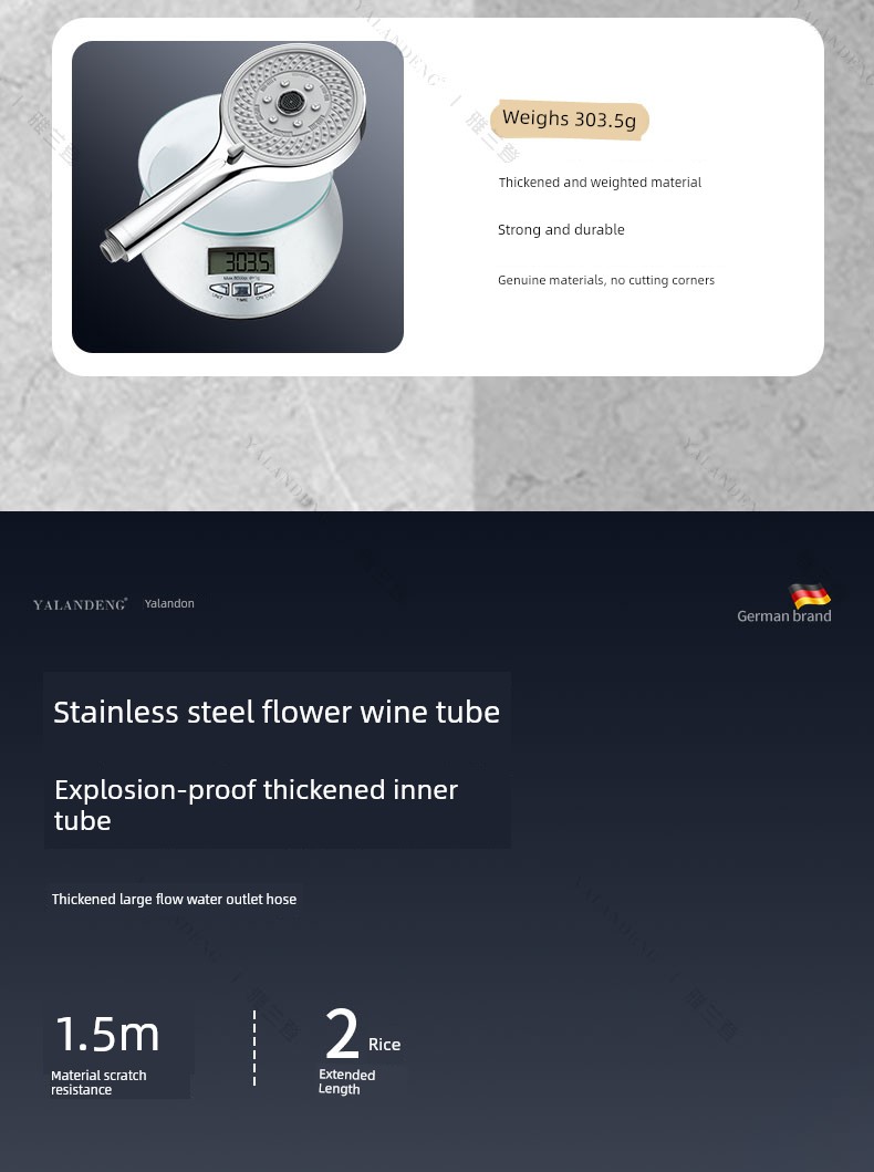 【Water-Plated Grey Set 1】Seven-Setting High-Flow Shower Head + 1.5m Explosion-Proof Hose
