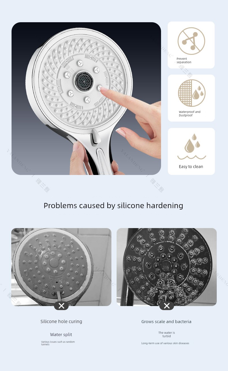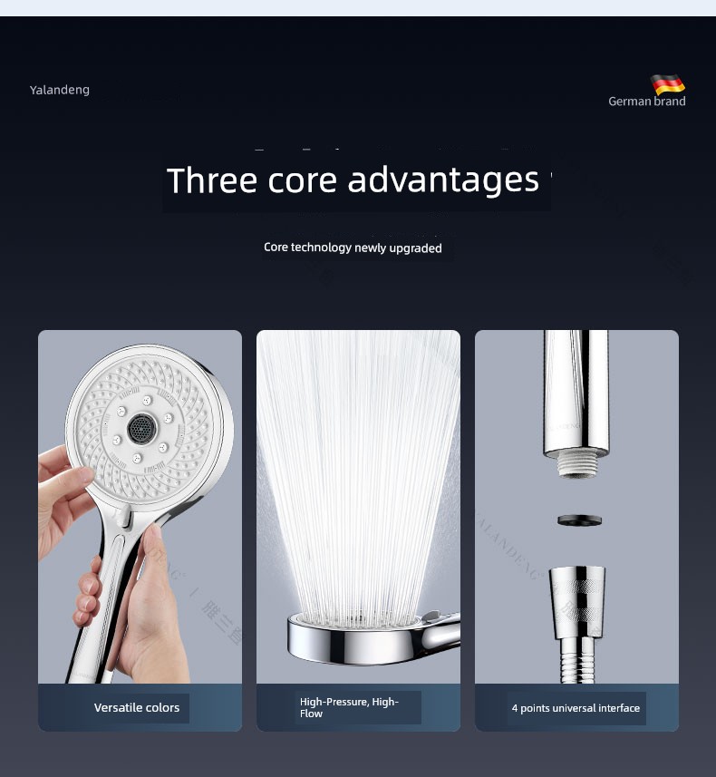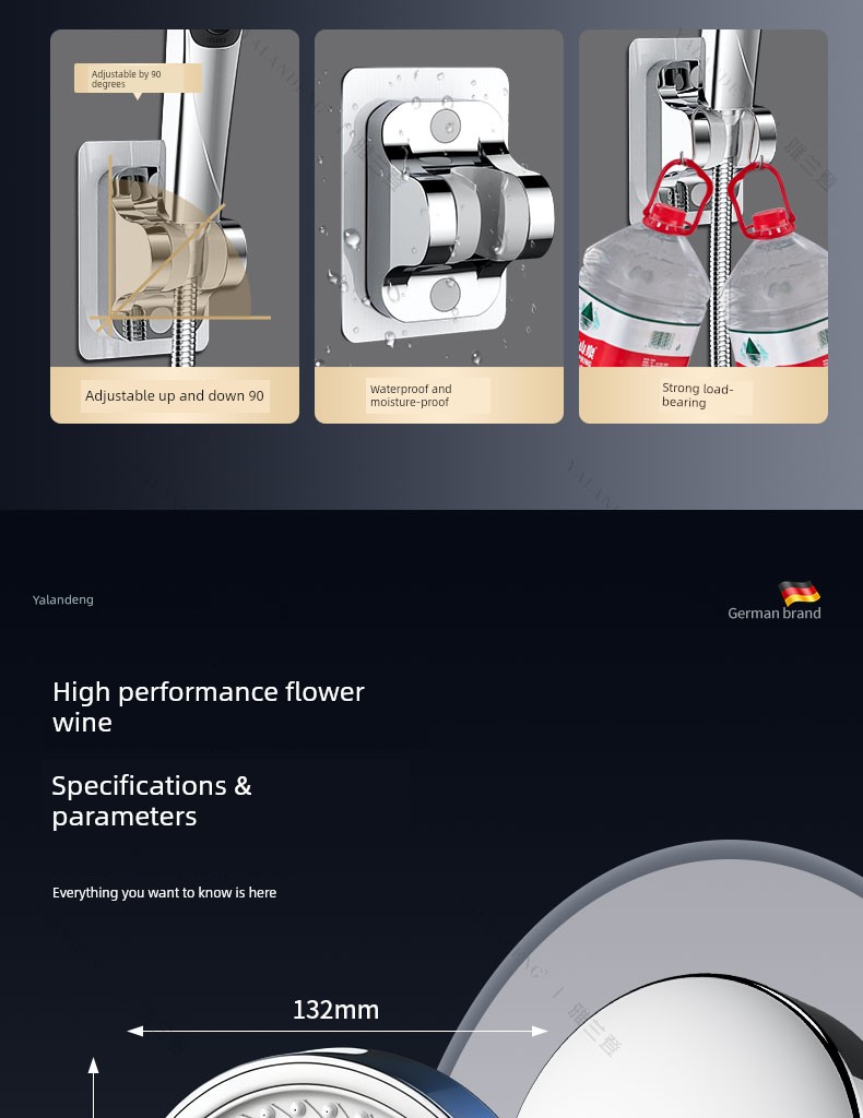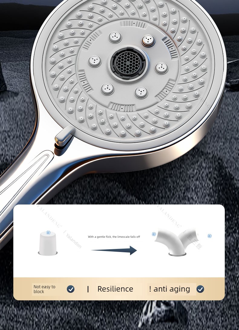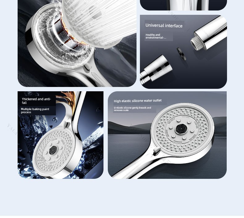 【White Jade Silver Set 5】7-Setting High-Pressure Shower Head + Drill-Free Bracket