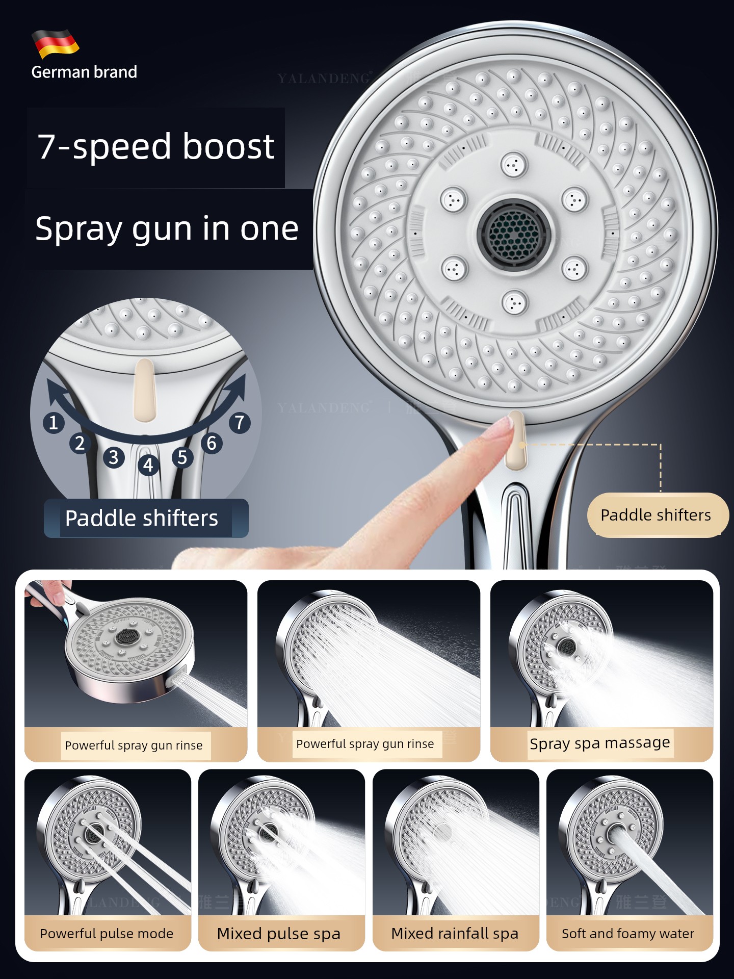 Supercharged Upgraded Version [Matte Black] Seven-Speed Spa Water ❤ 30 Years of Use, Free Replacement if Damaged