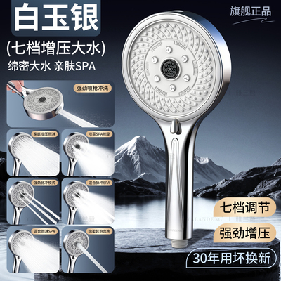[White Jade Silver Set 1] Seven-Speed Large Water Shower + 1.5m Explosion-Proof Hose
