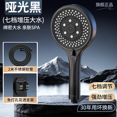 [Matte Black Set 3] Seven-Speed Large Water Shower + 2m Explosion-Proof Hose