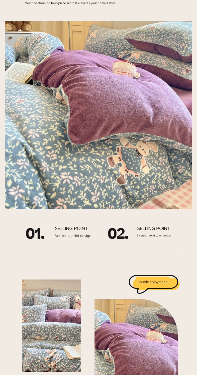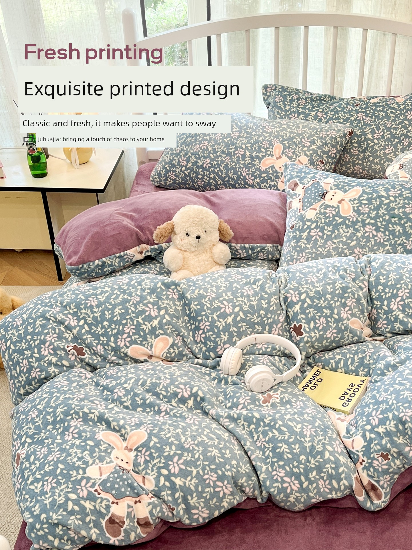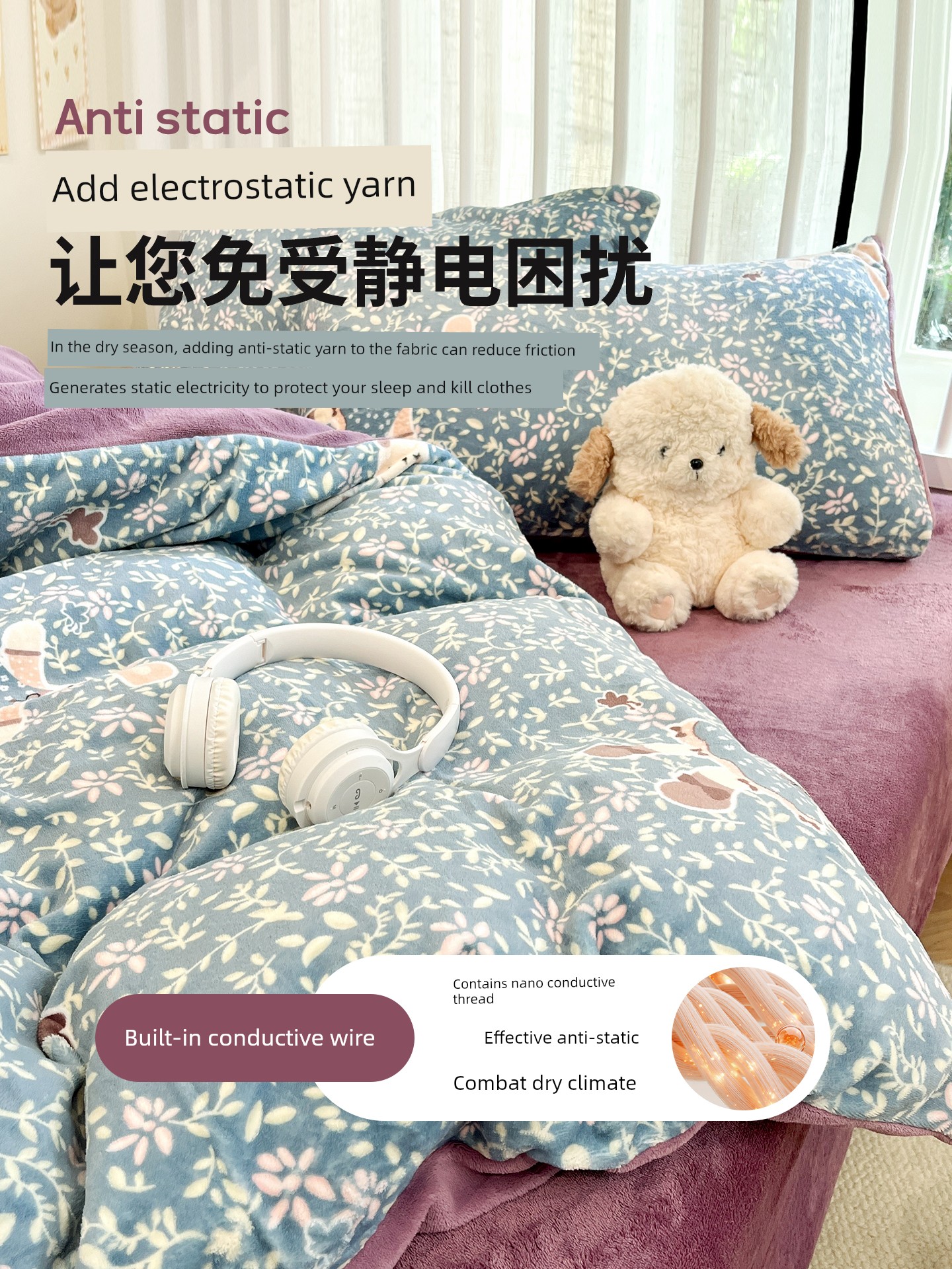 Milk Velvet Four-Piece Bedding Set 2025 New Winter Fleece-Lined Coral Flannel Bed Sheet Duvet Cover Bedding Fitted Sheet