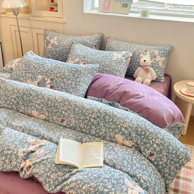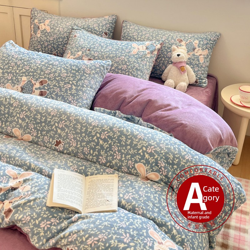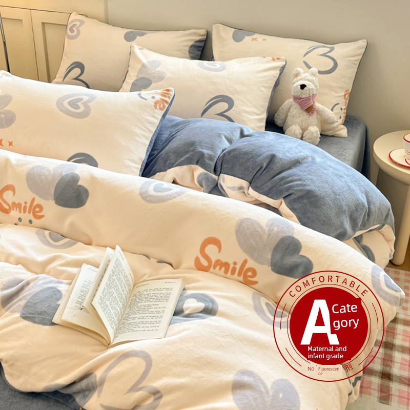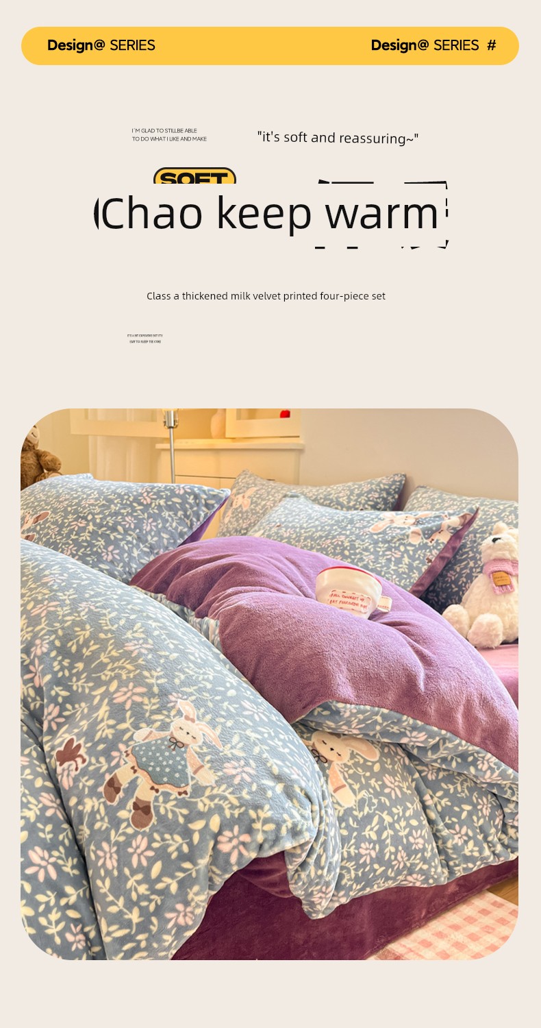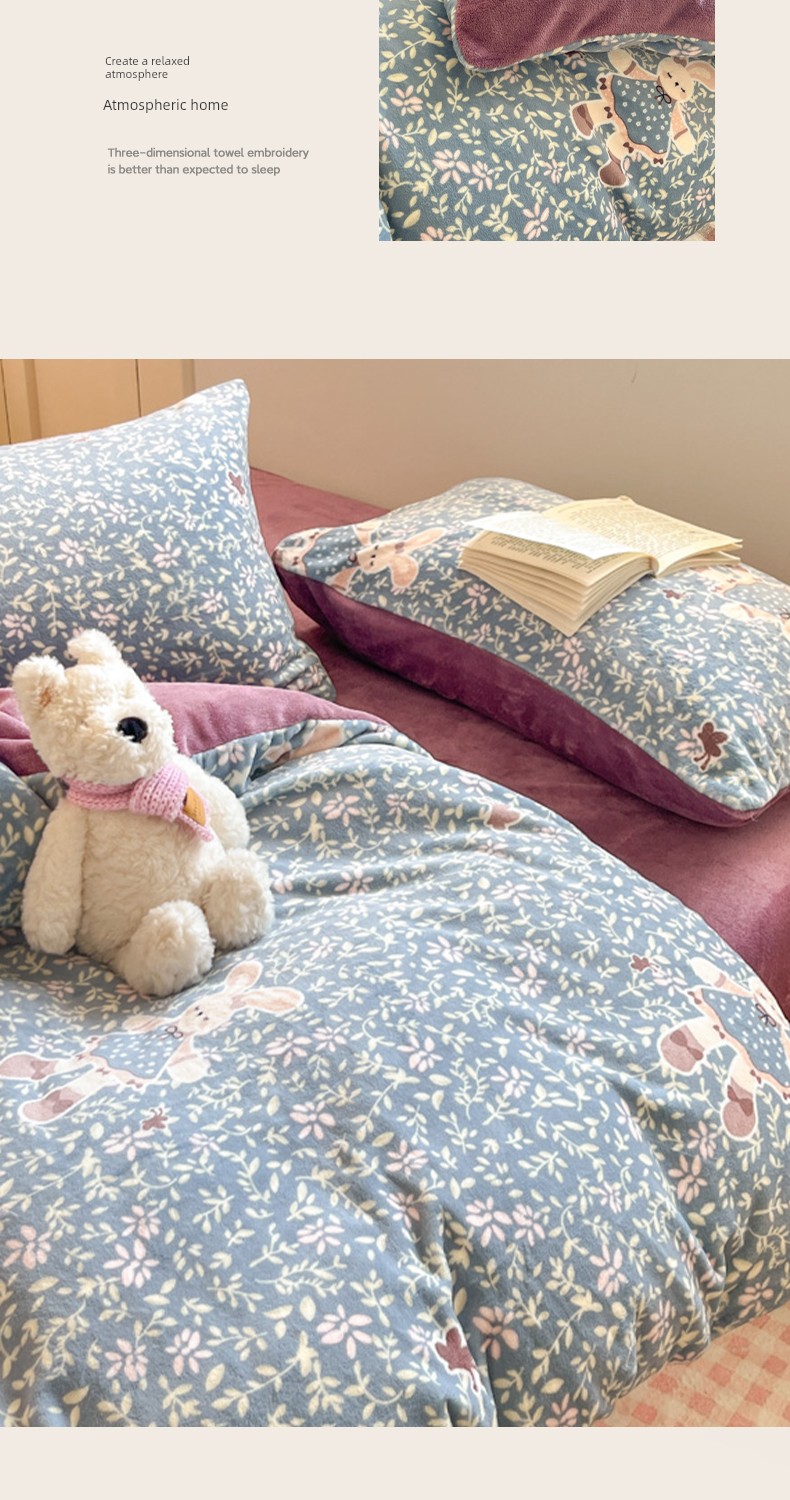 Milk Velvet Four-Piece Bedding Set 2025 New Winter Fleece-Lined Coral Flannel Bed Sheet Duvet Cover Bedding Fitted Sheet