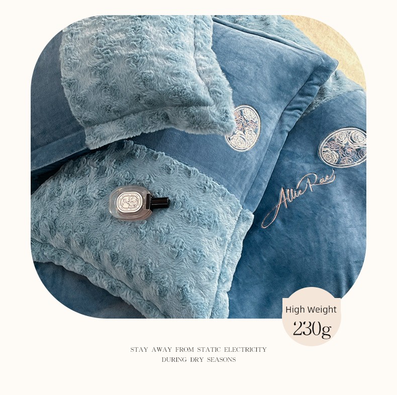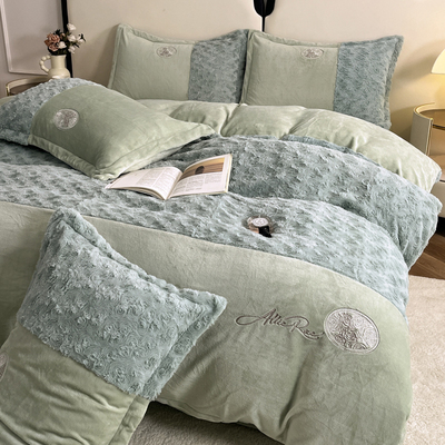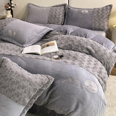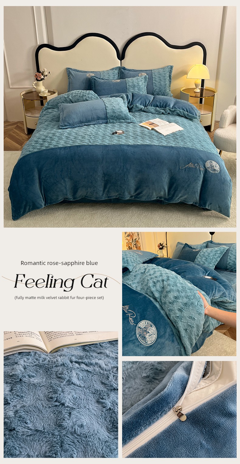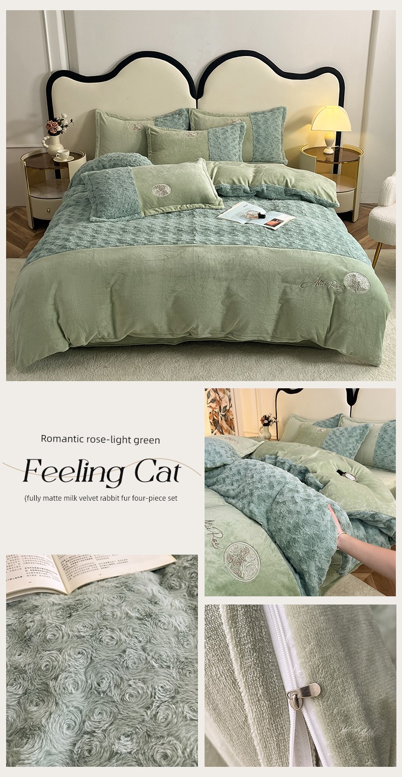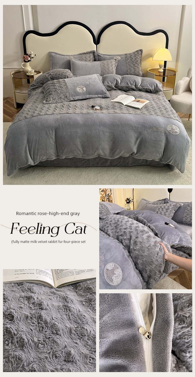 2026 New All-Matte Milk Velvet Four-Piece Set, Romantic Rose Bed Sheet Style, Fleece-Lined and Thickened, High-End Light Luxury Bedding