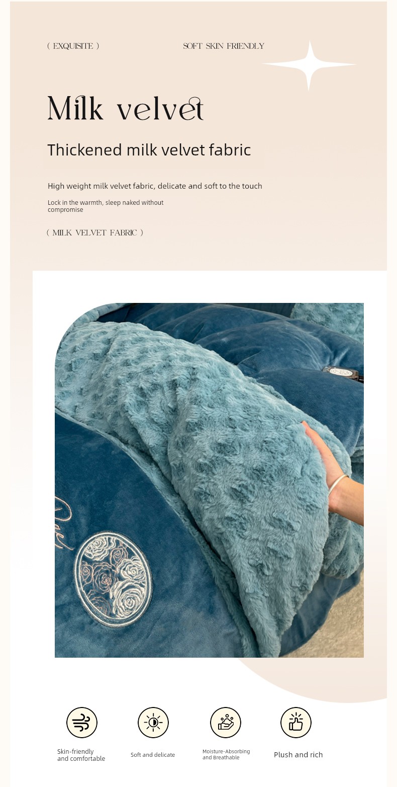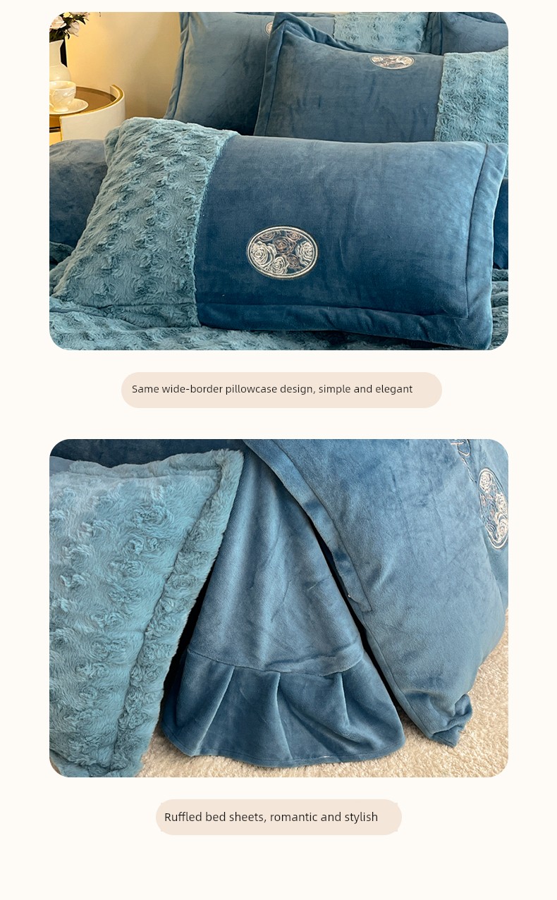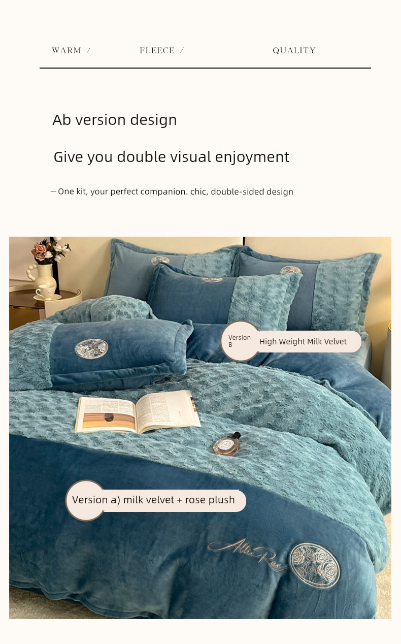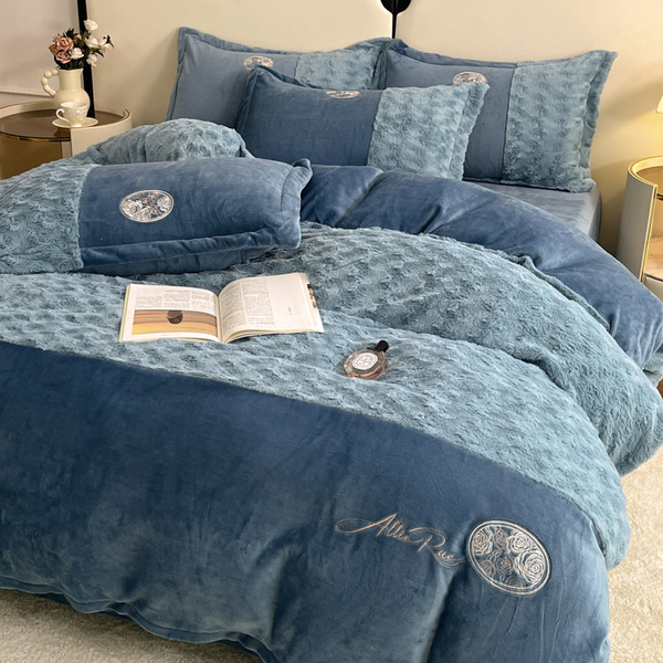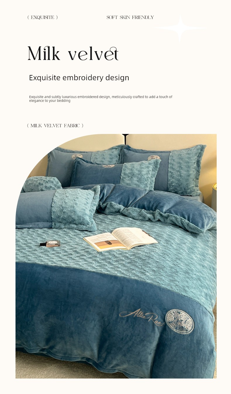 2026 New All-Matte Milk Velvet Four-Piece Set, Romantic Rose Bed Sheet Style, Fleece-Lined and Thickened, High-End Light Luxury Bedding