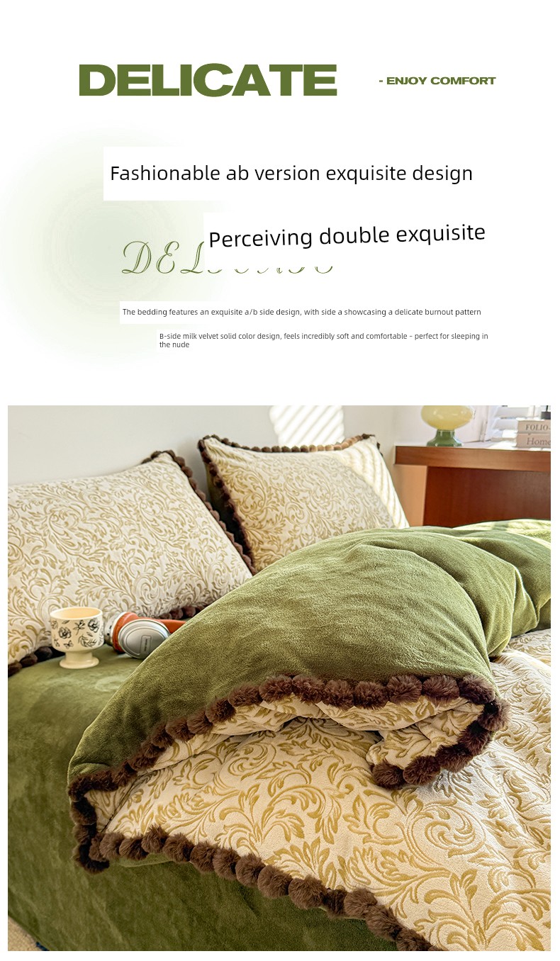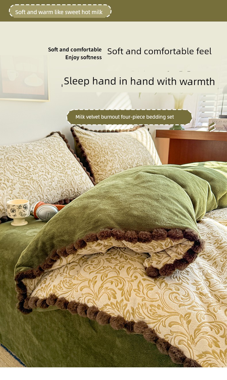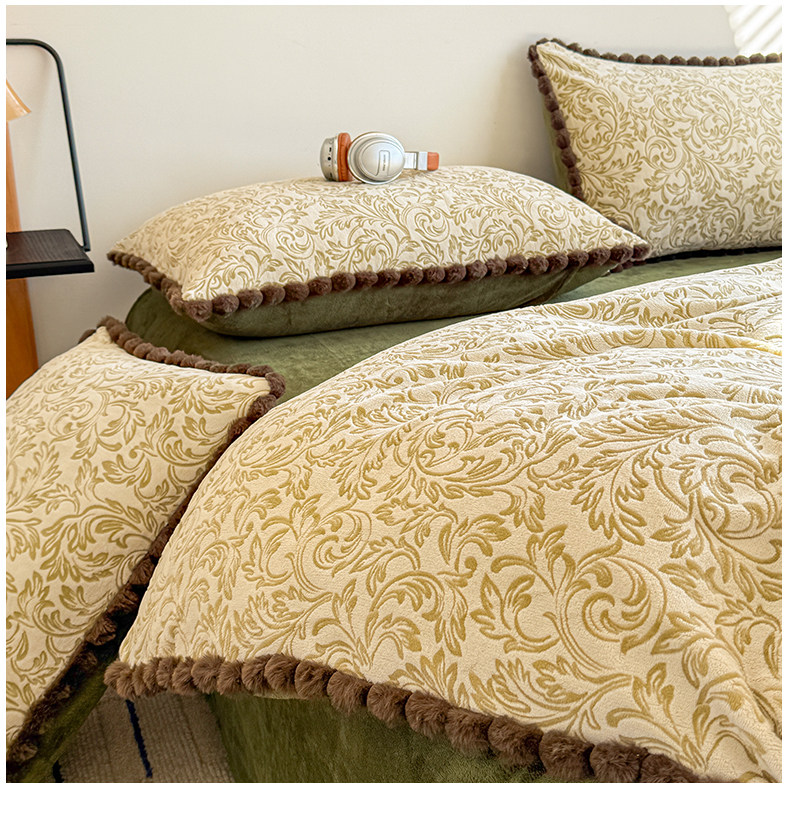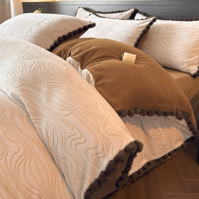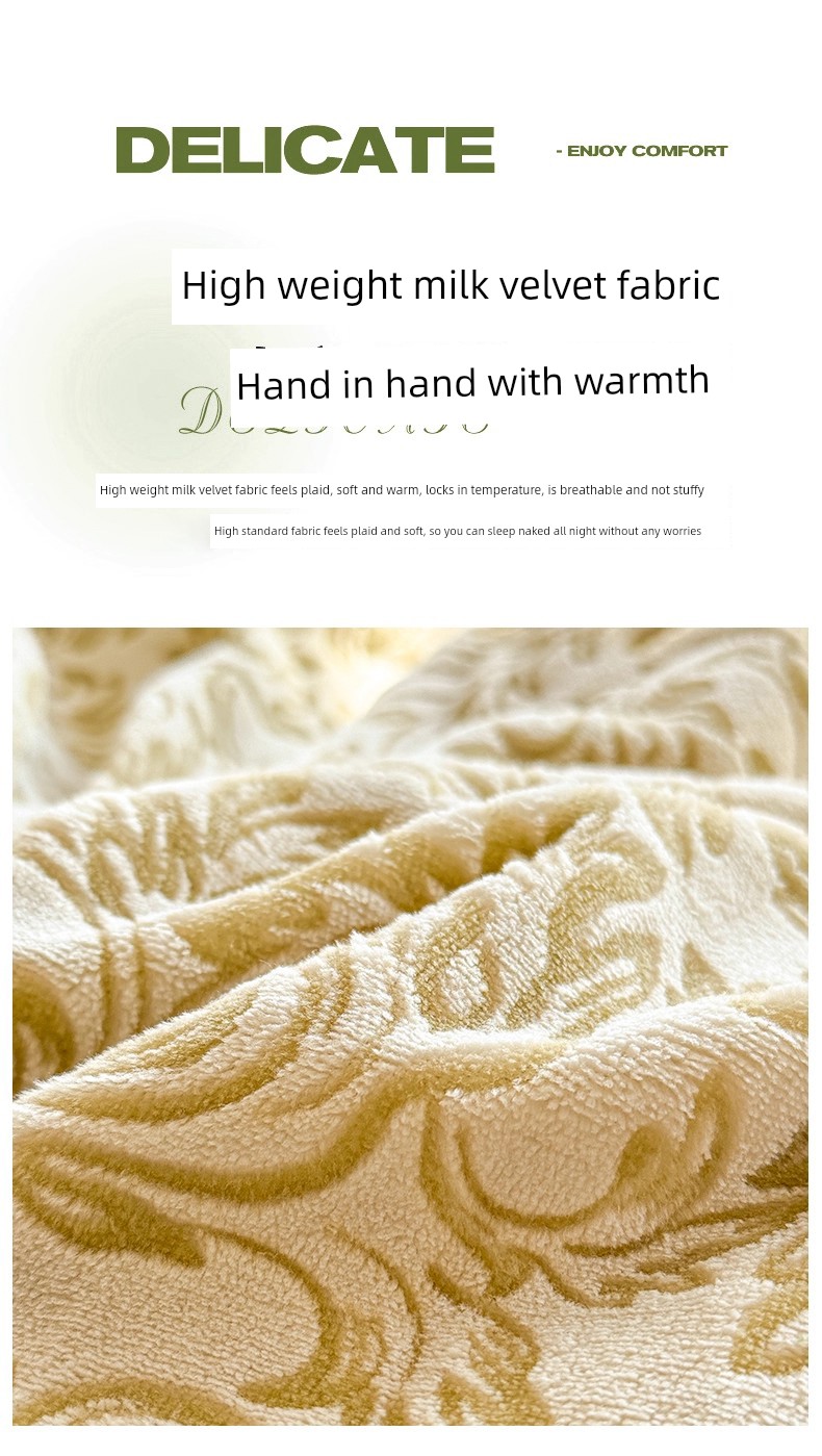 Light Luxury Carved Milk Velvet Thickened Four-Piece Bedding Set Plus Fleece Coral Flannel Bed Sheet Plush Duvet Cover Three-Piece Set
