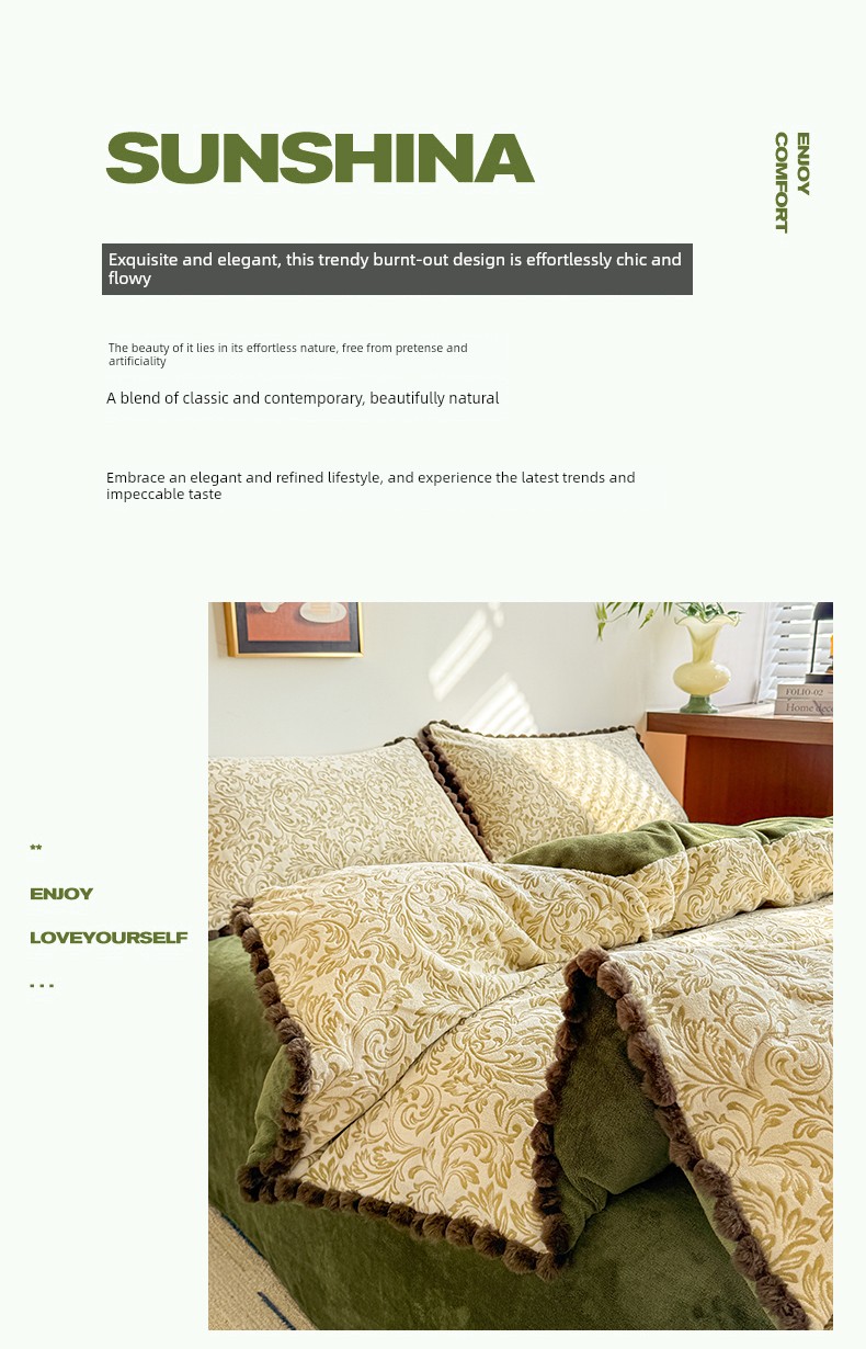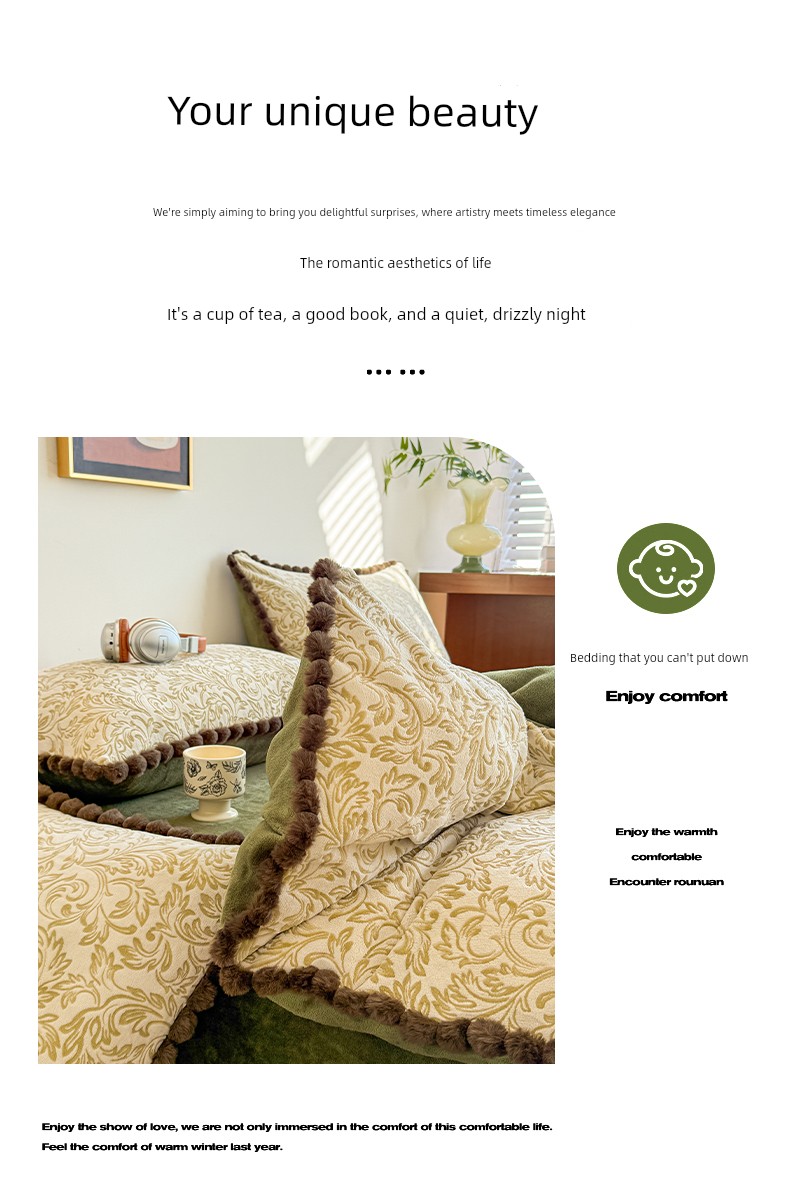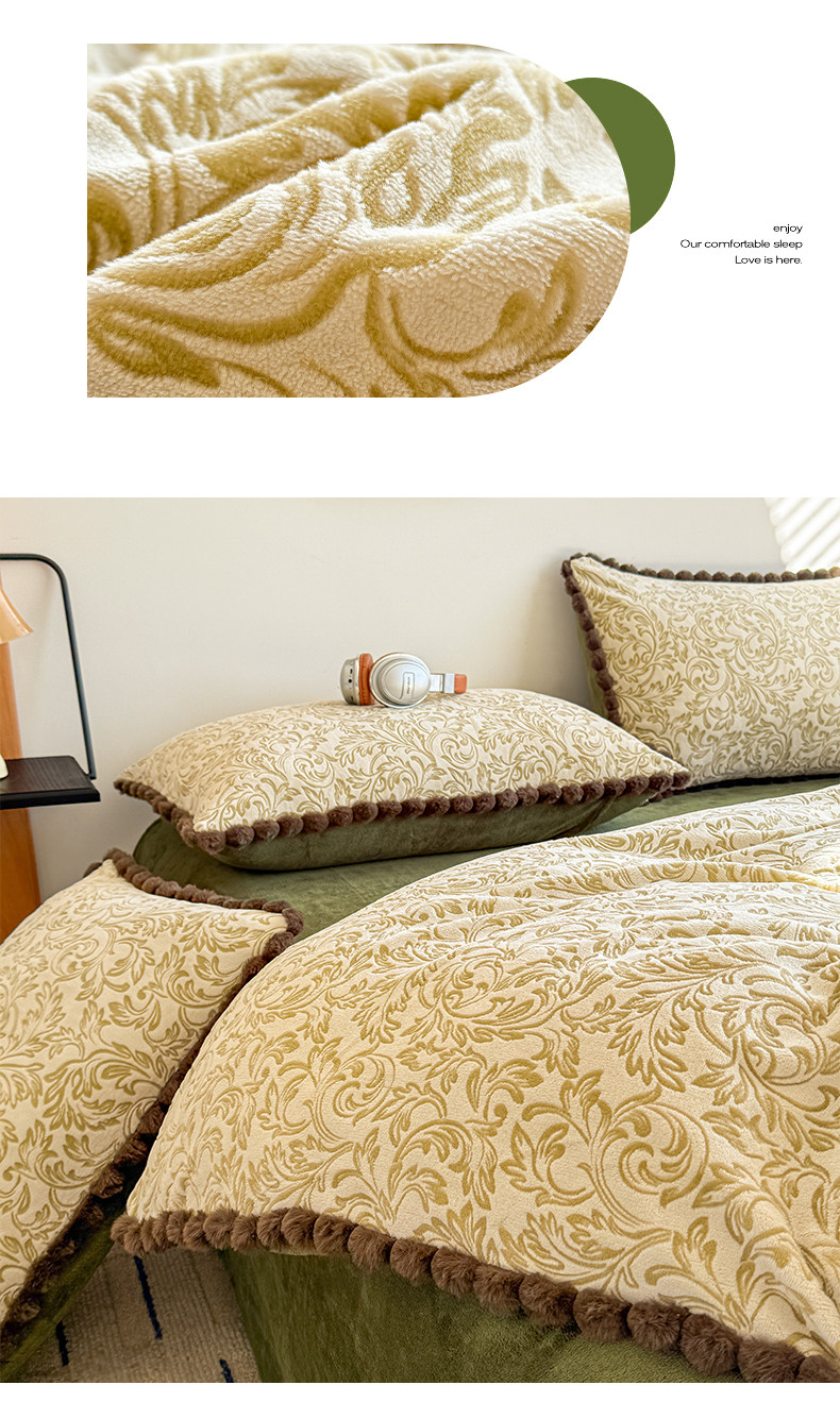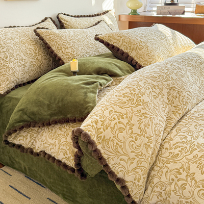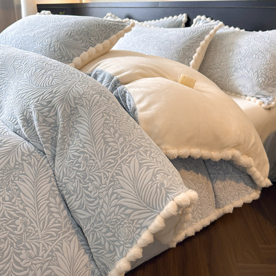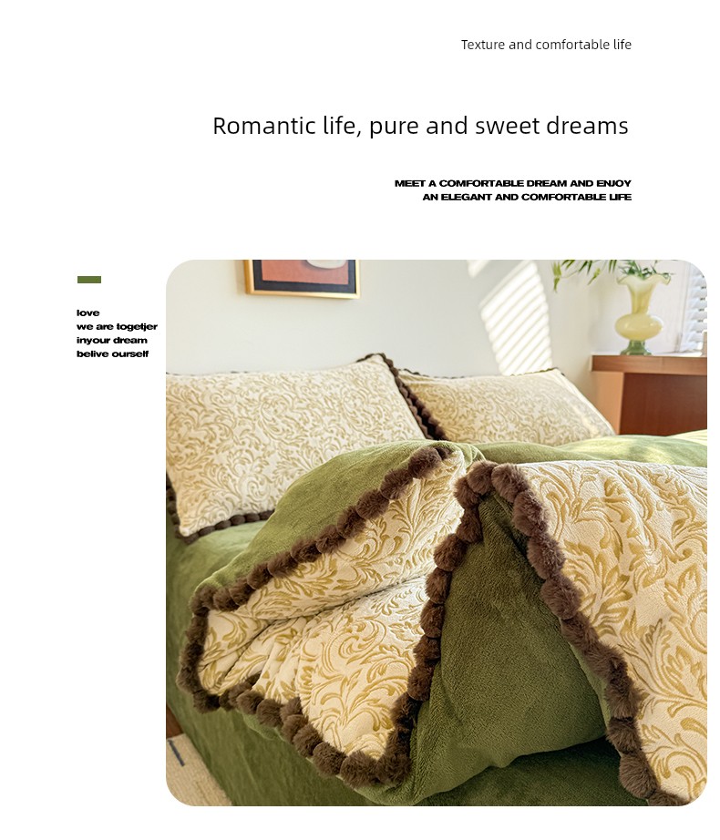 Light Luxury Carved Milk Velvet Thickened Four-Piece Bedding Set Plus Fleece Coral Flannel Bed Sheet Plush Duvet Cover Three-Piece Set