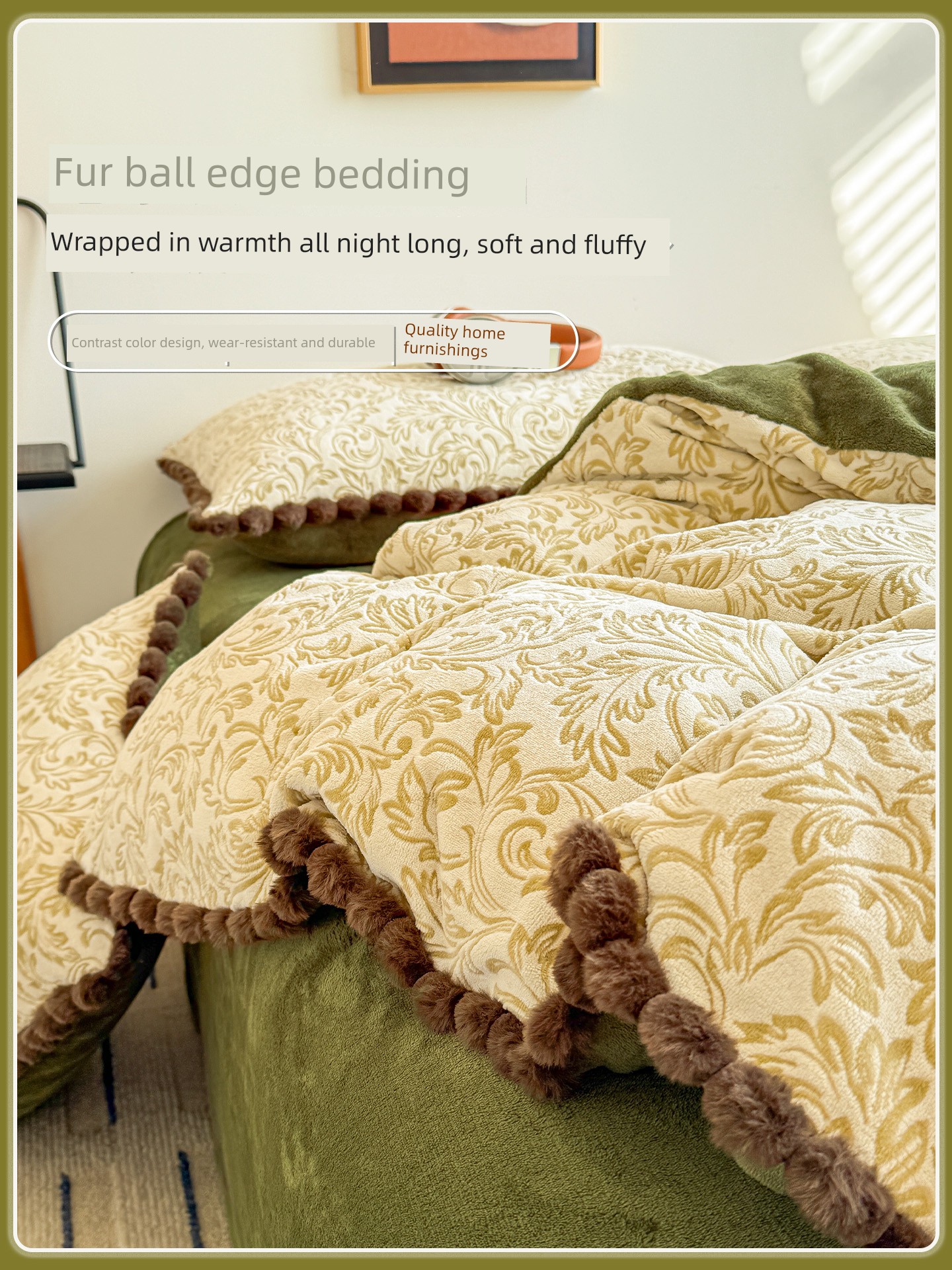 Honey Velvet - Truffle Brown [Thickened Carved Milk Velvet with Exquisite Pom-Pom Detailing]