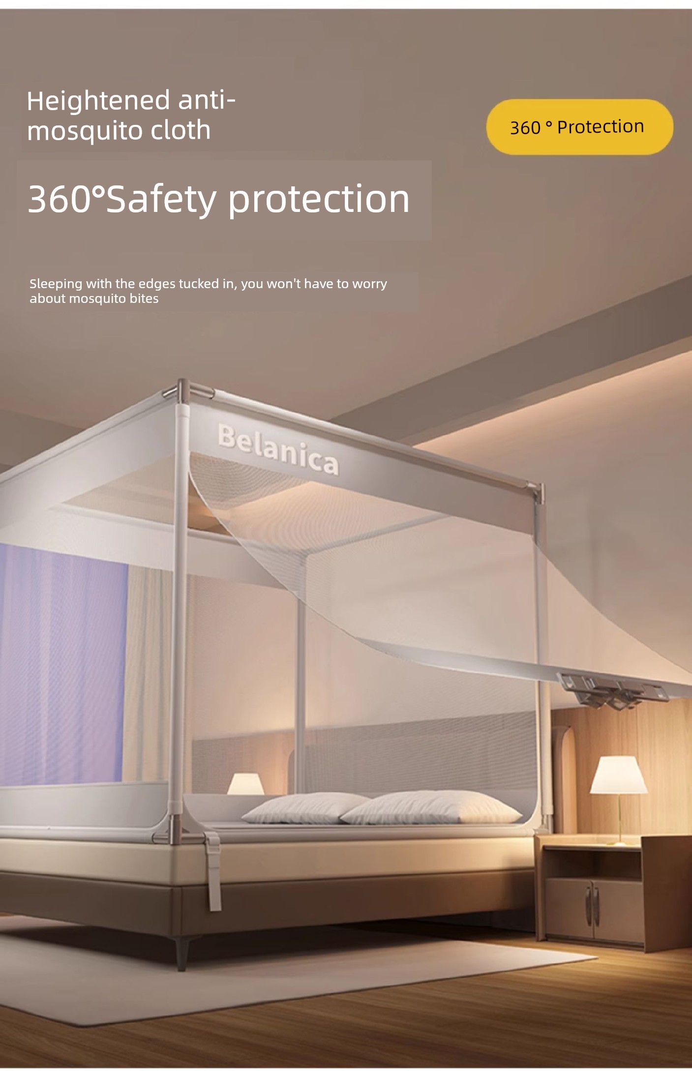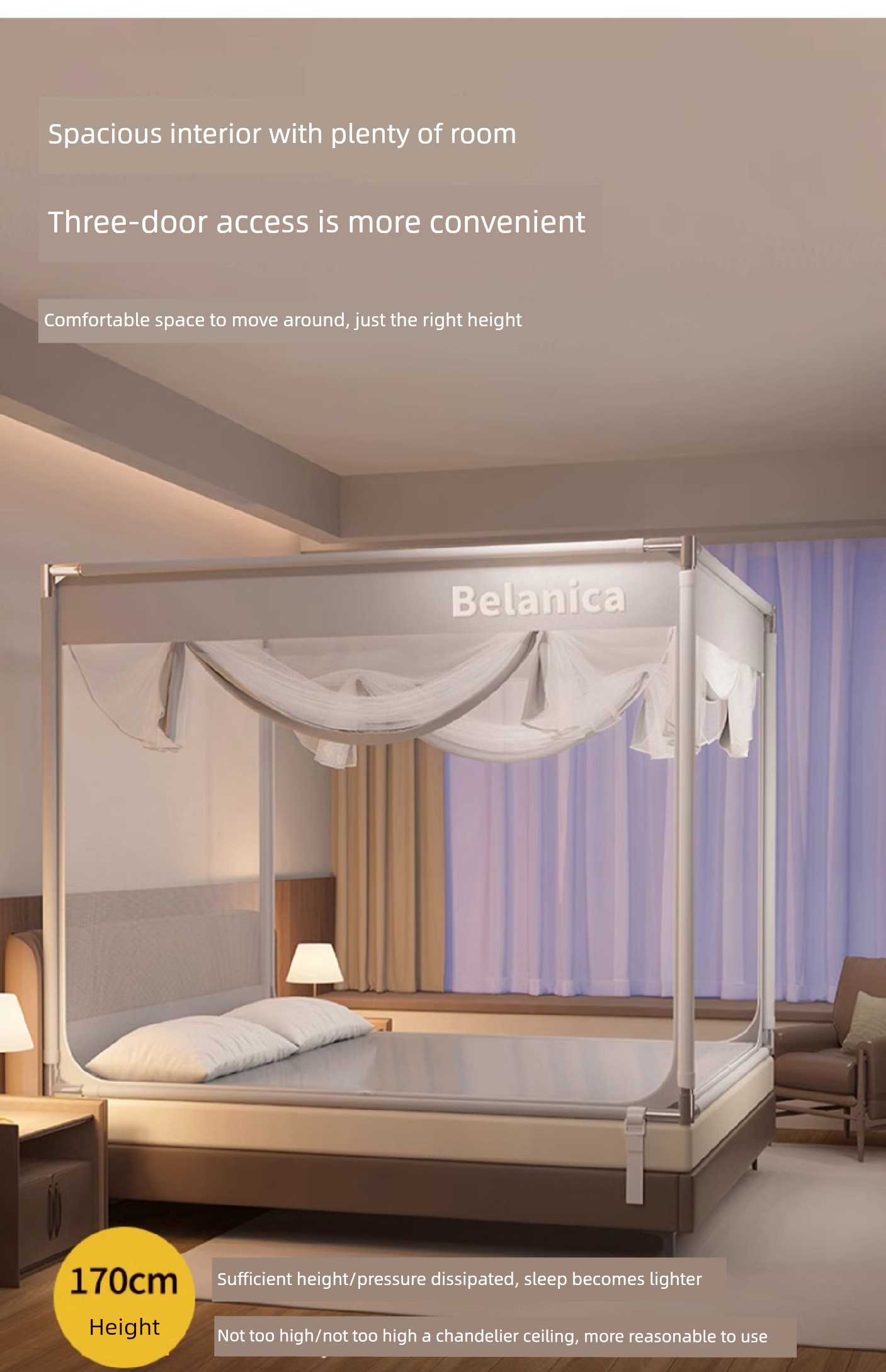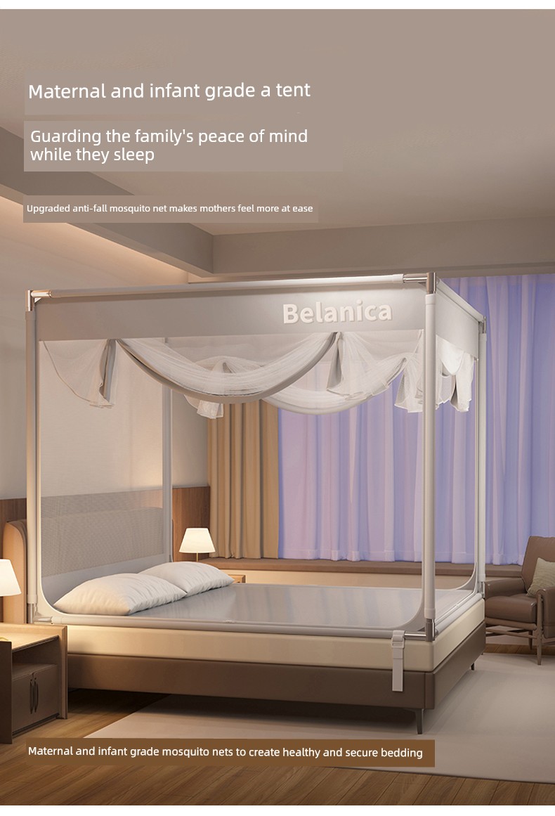 Anti-Fall Mosquito Net for Home Bedroom, No Splicing Required, Full-Cover Mongolian Yurt for Children, Integrated Bottom Fence