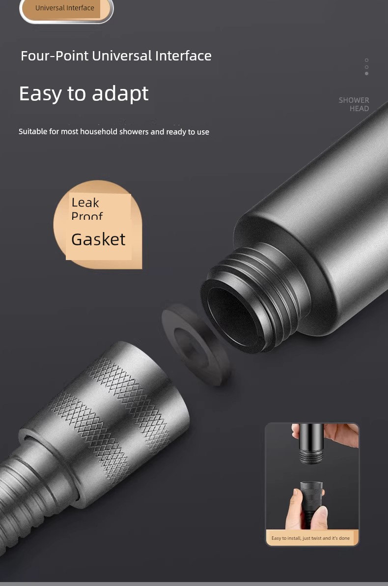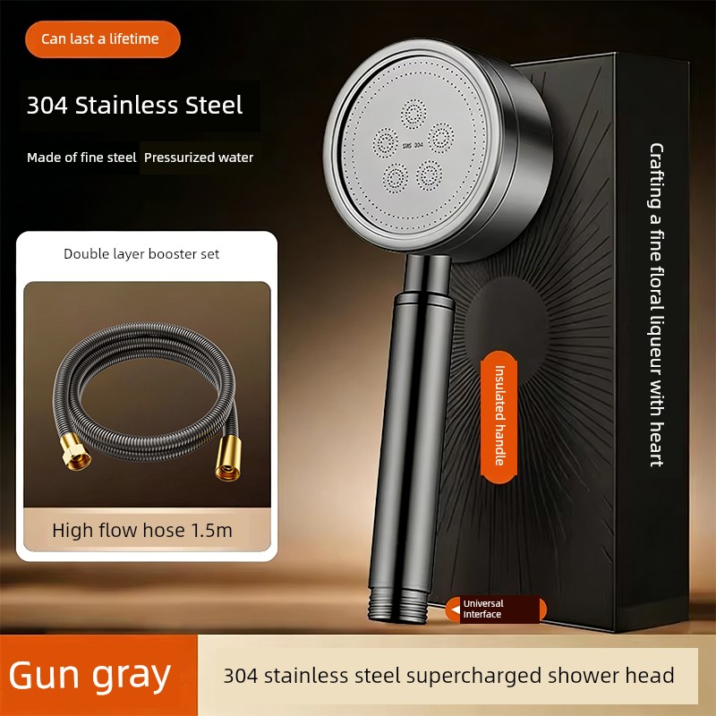 Gun Gray Supercharged Shower + 1.5m Explosion-Proof Pipe