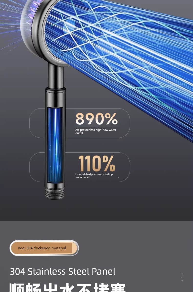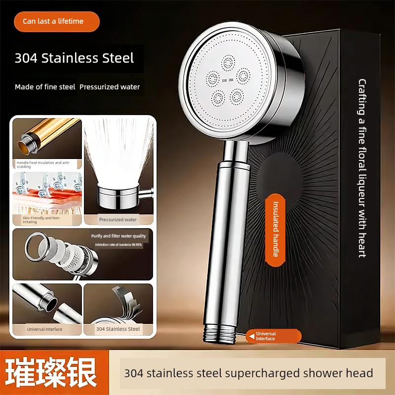 Brilliant Silver Supercharged Shower + Punch-Free Bracket + 1.5m Explosion-Proof Pipe
