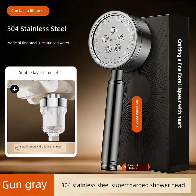 [Super Supercharged, Super Large Water Output] Gun Gray Shower + Shower Filter