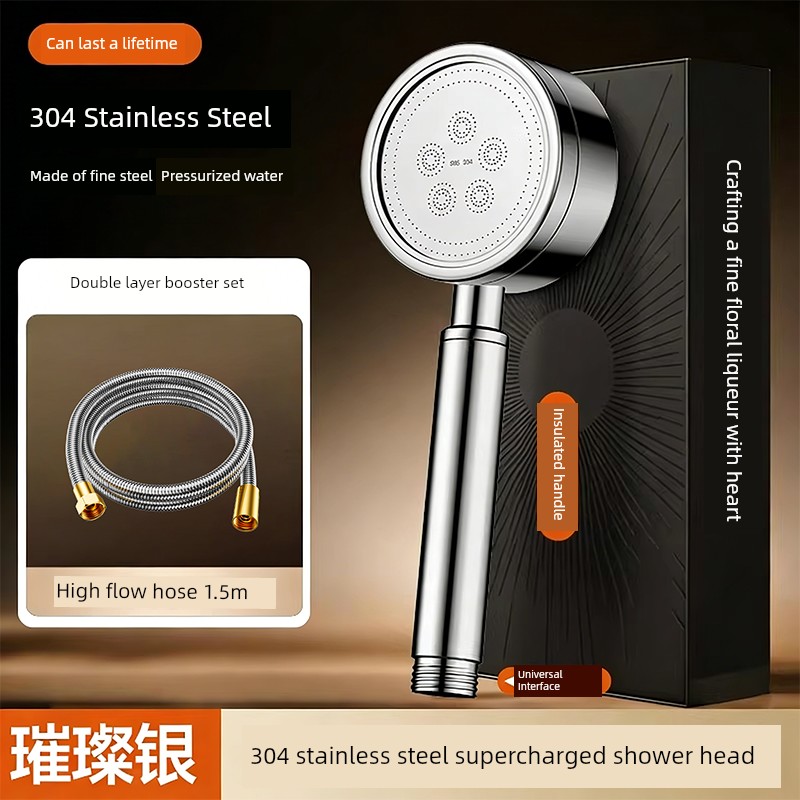 Brilliant Silver Supercharged Shower + 1.5m Explosion-Proof Pipe