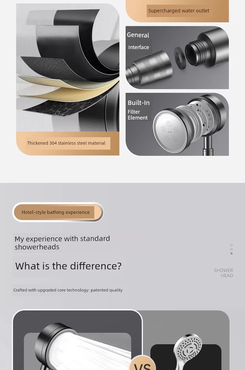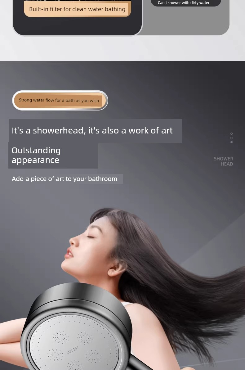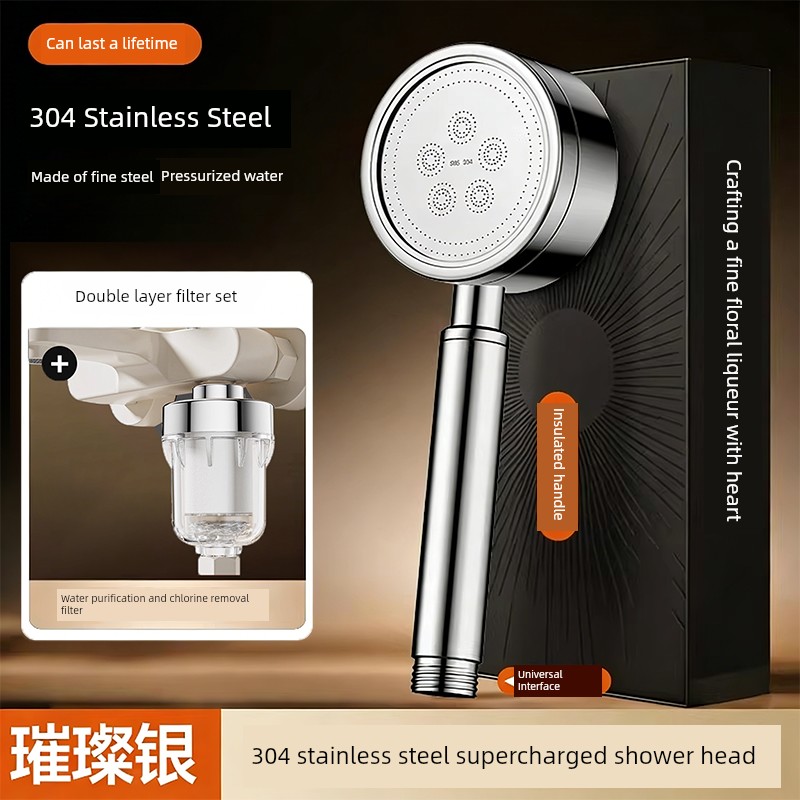 【Supercharged Pressure, Extra-Wide Spray】Brilliant Silver Shower Head + Shower Head Filter