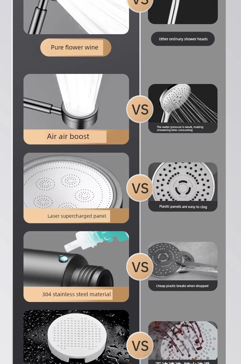 [Super Supercharged and Super Large Water Output] Obsidian Black Shower + 1.5m Large Flow Tube