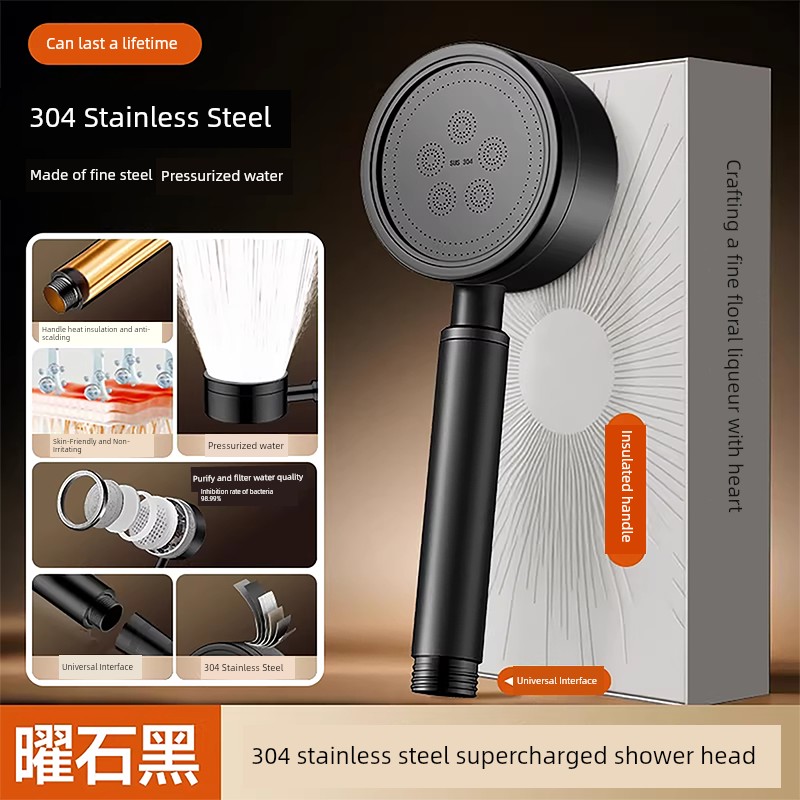 [Super Supercharged and Super Large Water Output]★304 Stainless Steel★Obsidian Black 1 Piece