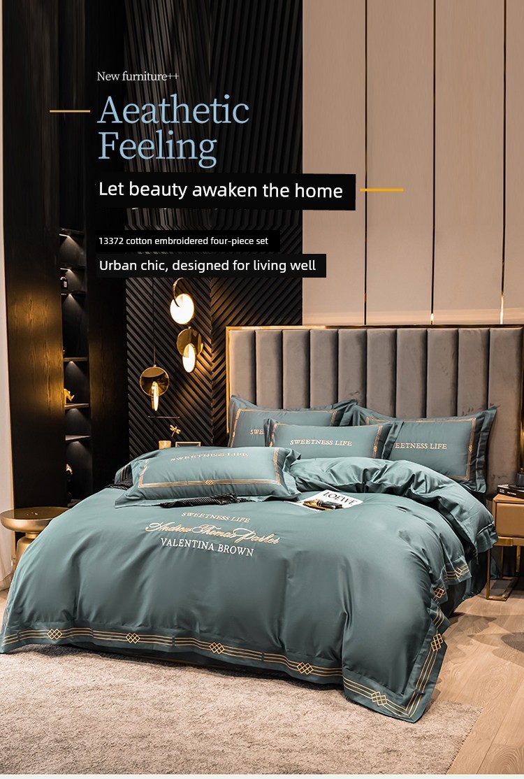 Five-Star Hotel Pure Cotton Four-Piece Set 100% Cotton Bed Sheet Duvet Cover 1.5/1.8m Double Duvet Cover Bedding