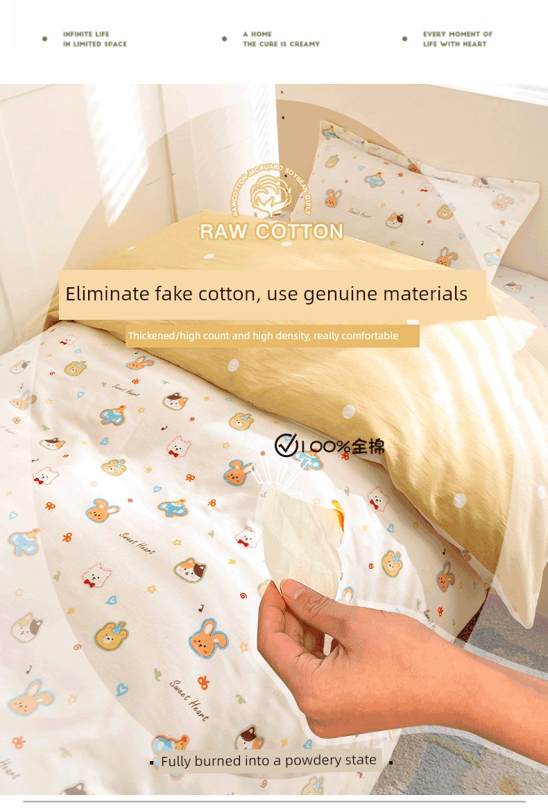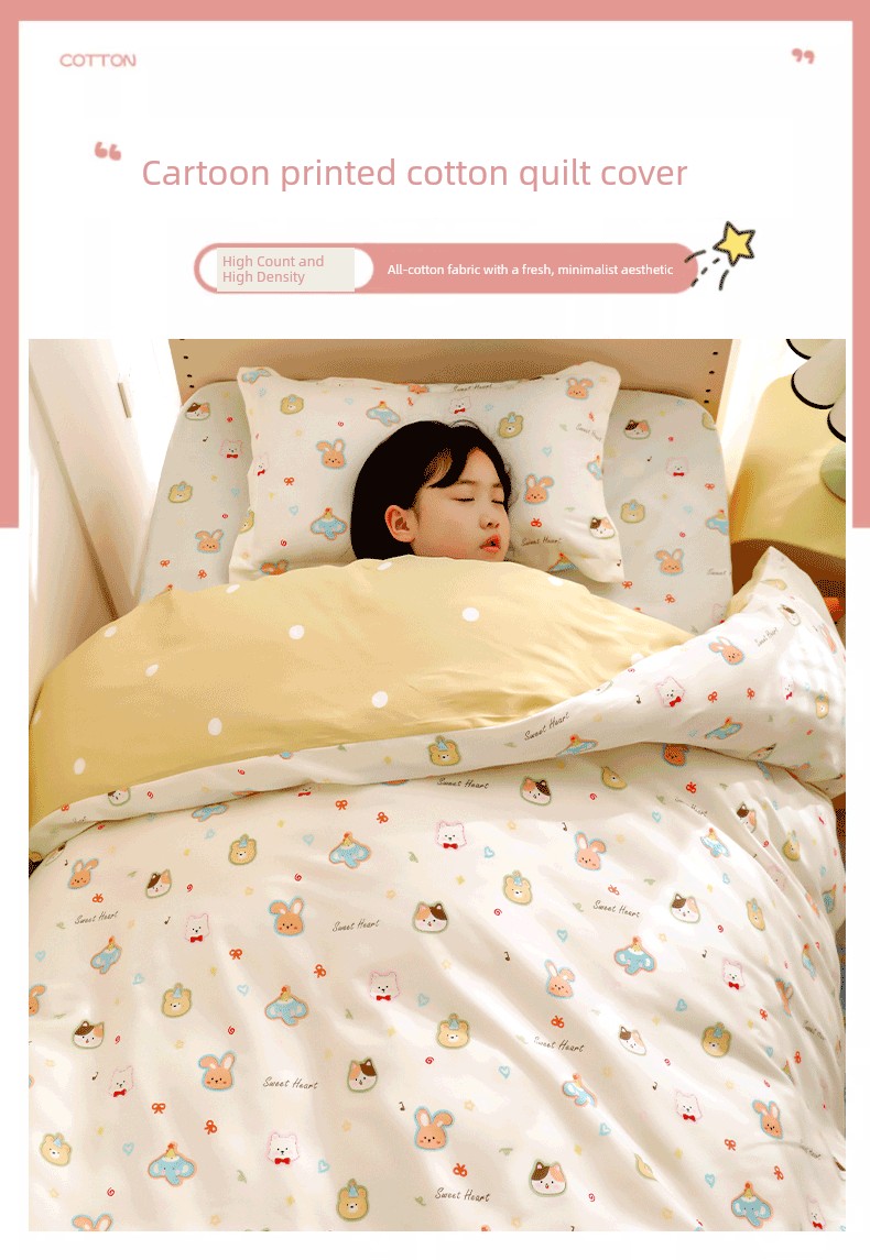 Pure Cotton Children's Duvet Cover Single Piece for Boys 120X150X200Cm Baby Quilt Cover Single Bed for Girls 1.5m