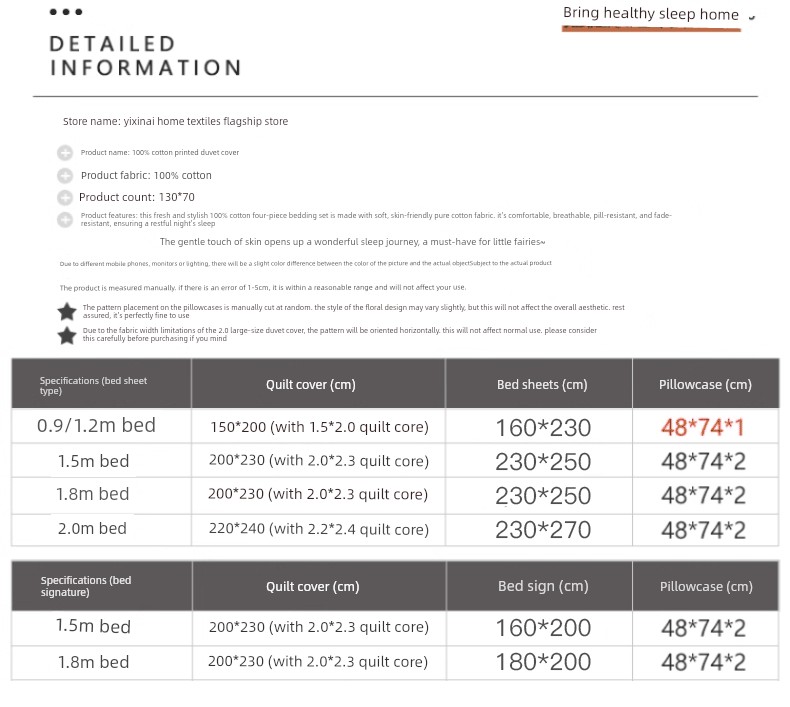 180X220Cm Quilt Cover + 1 Pair of Pillowcases of the Same Style