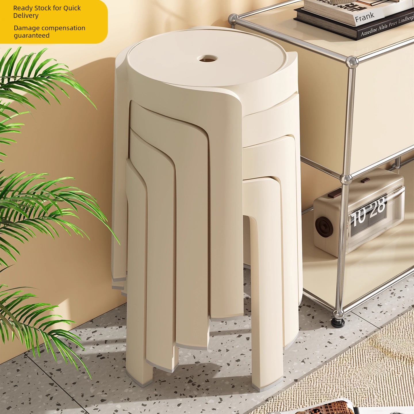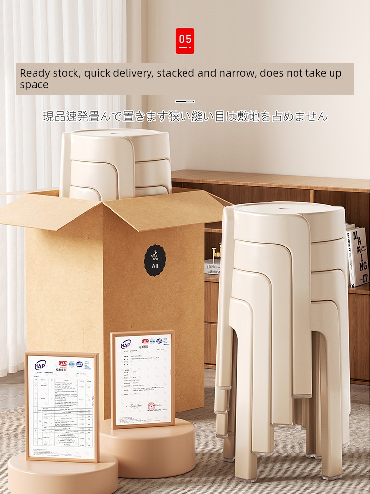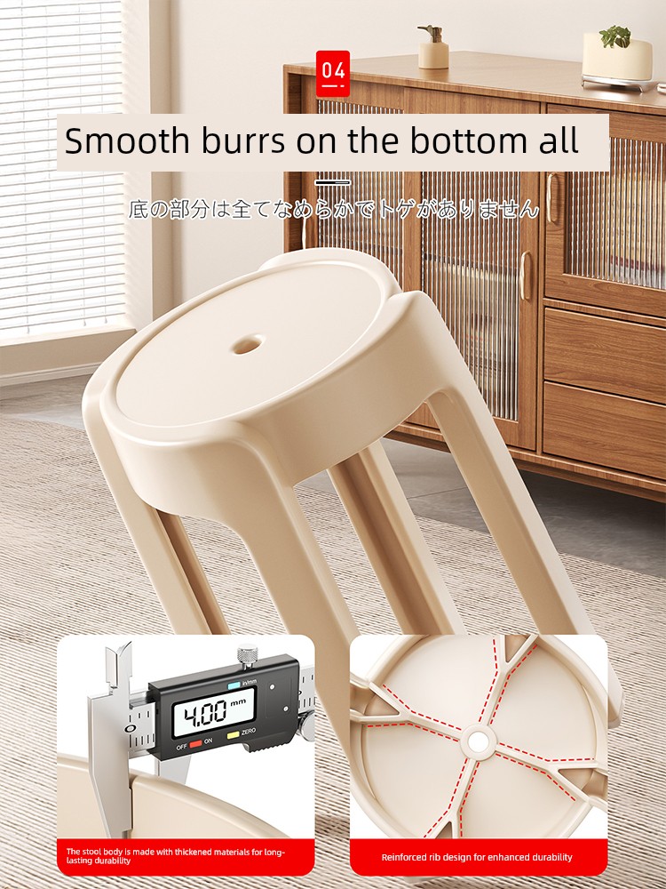 Japanese Plastic Stool for Home Use, Thickened Round Stool, Stackable, Sturdy and Durable, Guest Spare Stool, Can Be Stored, Chair