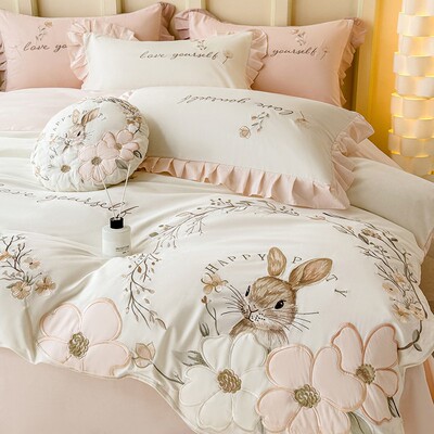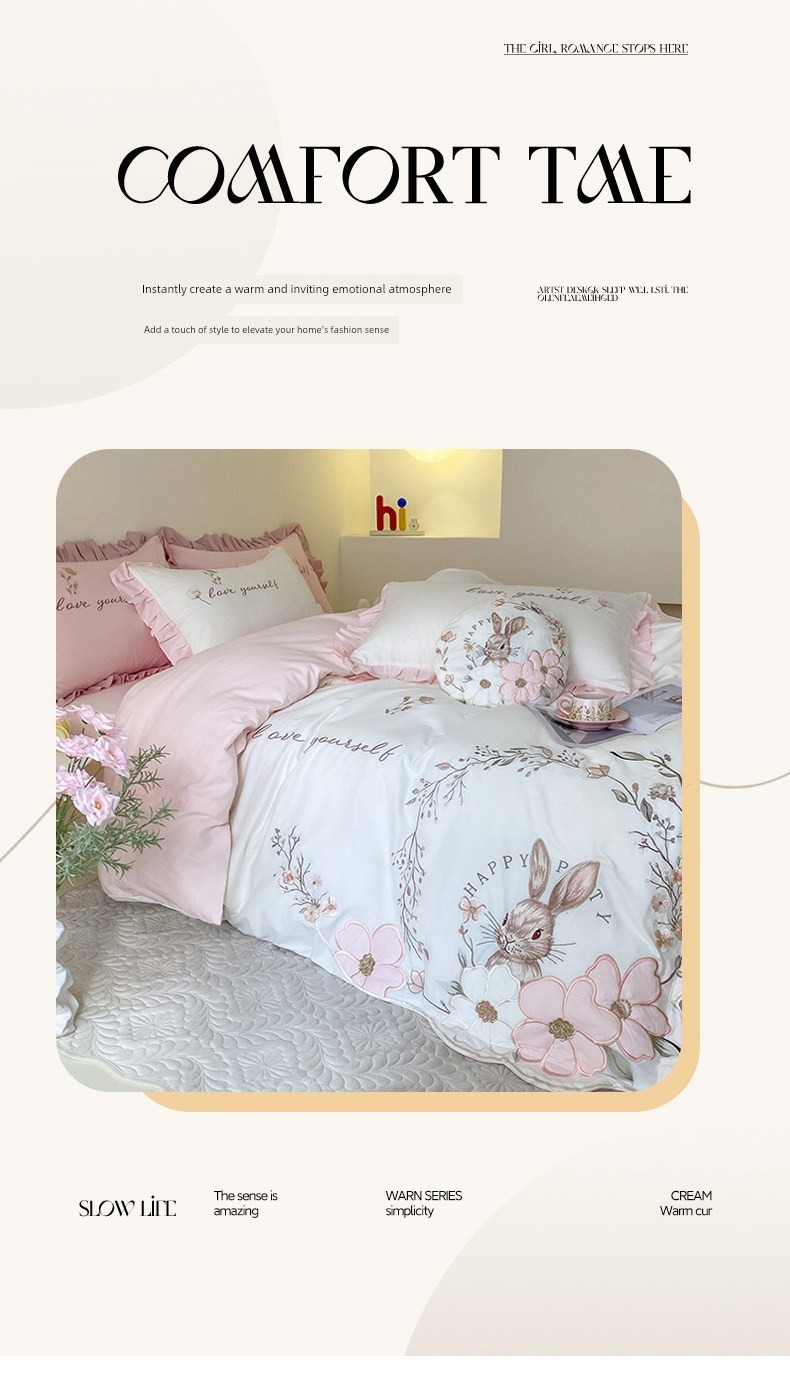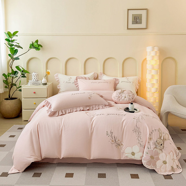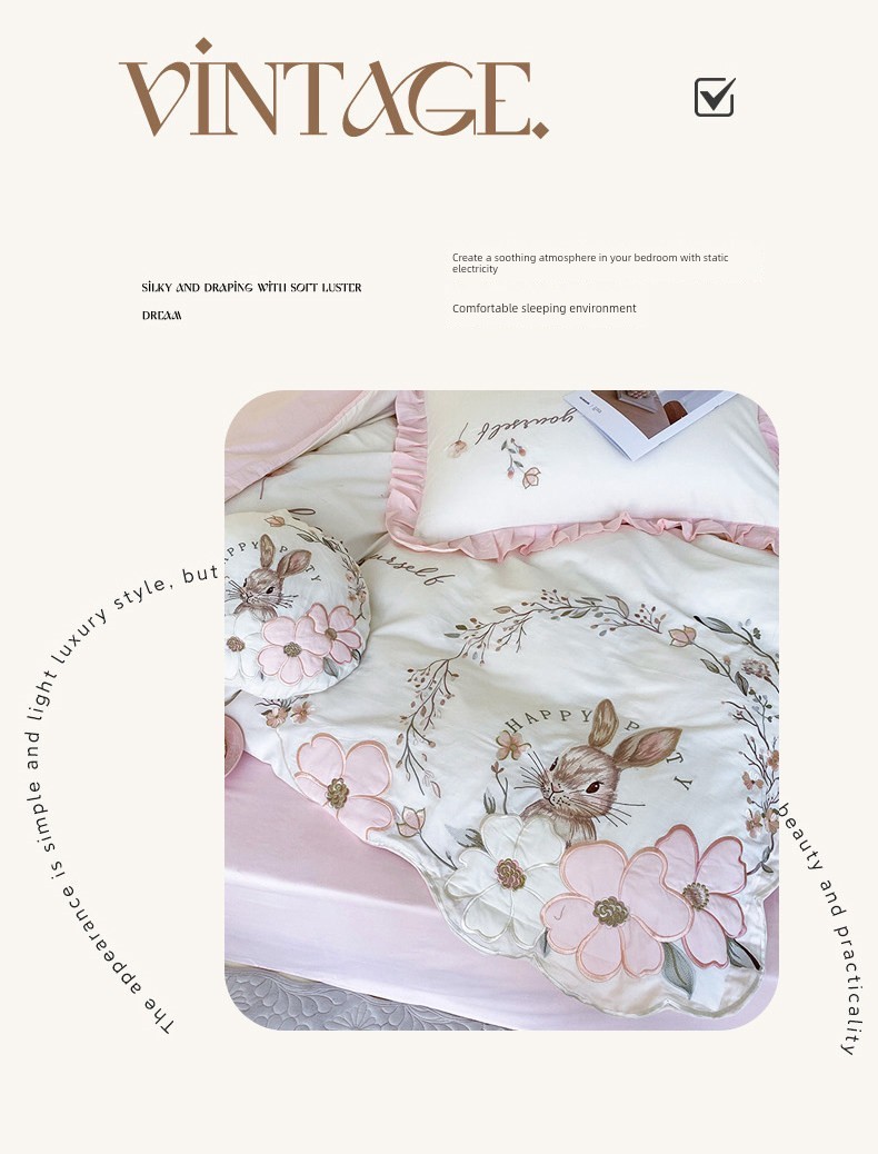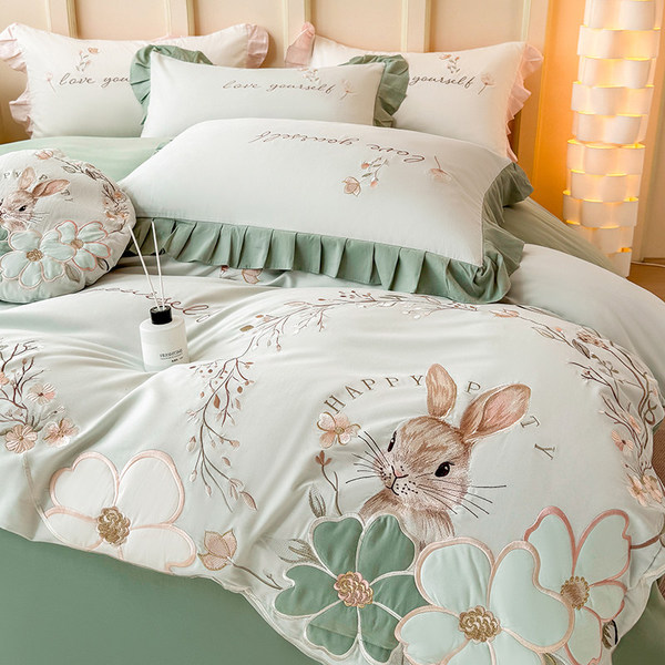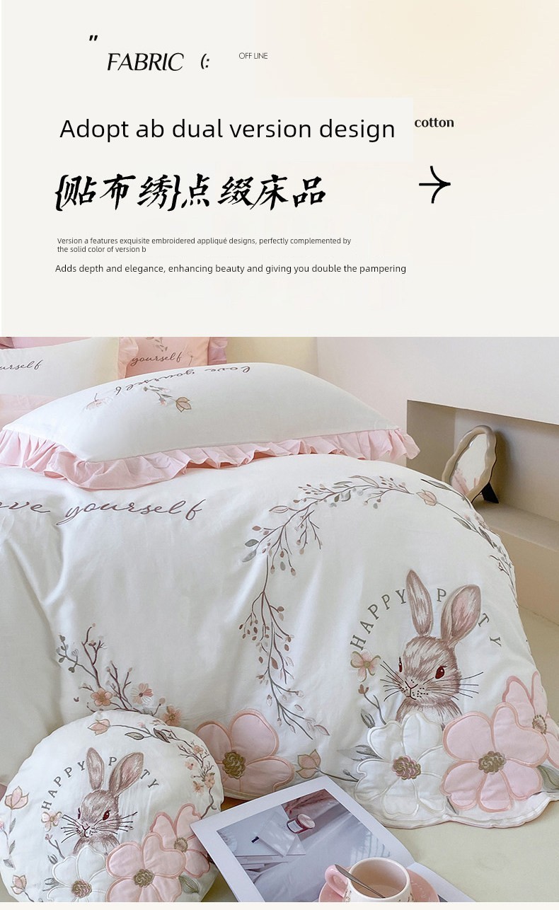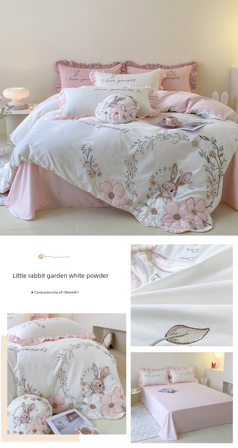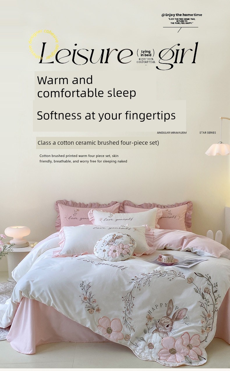 New Autumn and Winter A-Grade Maternal and Infant-Grade All-Cotton Brushed Four-Piece Set, Pure Cotton, Thickened, Warm Floral Duvet Cover Bedding Set 4