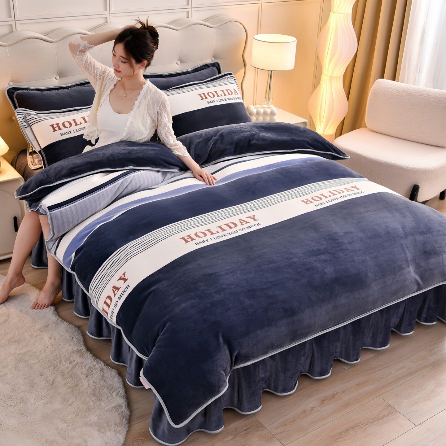 All-Cotton Pure Cotton Milk Velvet Four-Piece Set, Winter Thickened Coral Fleece 2025 New Double-Sided Flannel Duvet Cover for Bed
