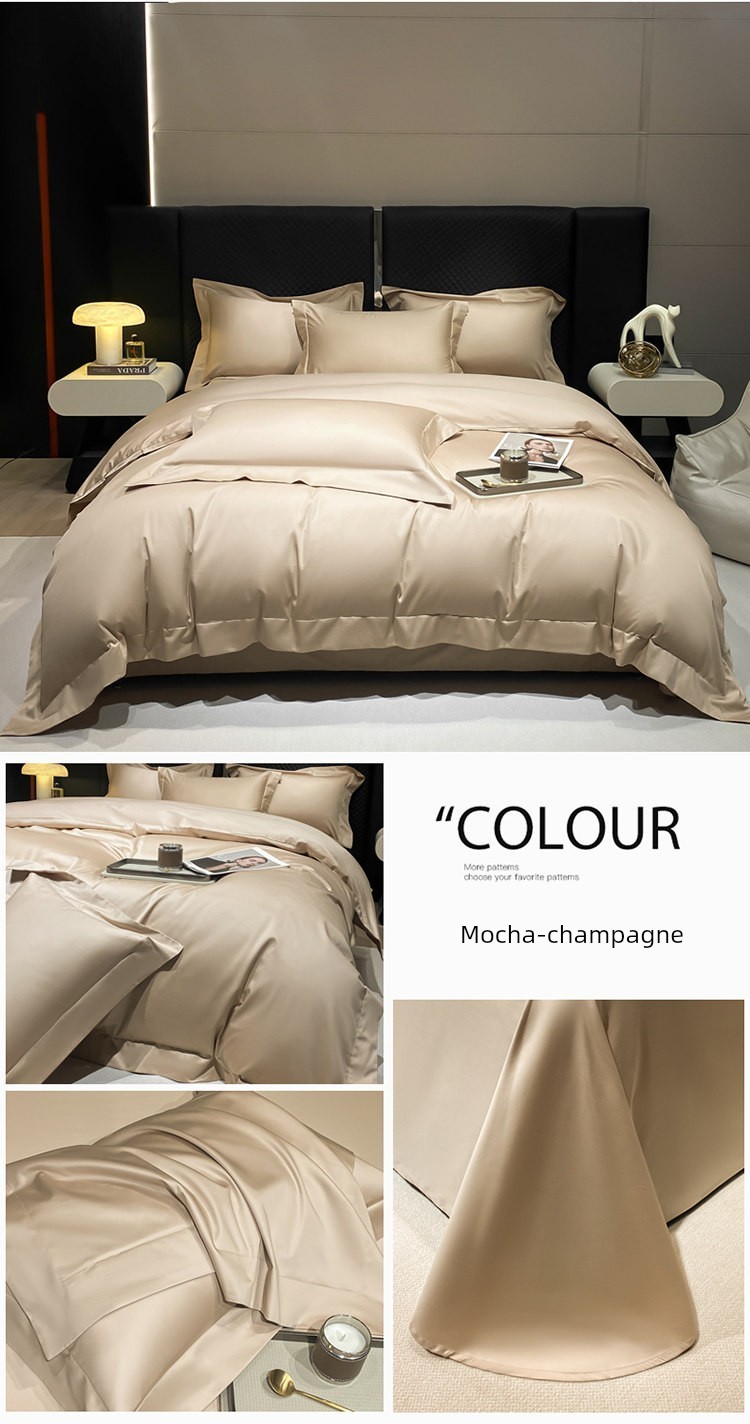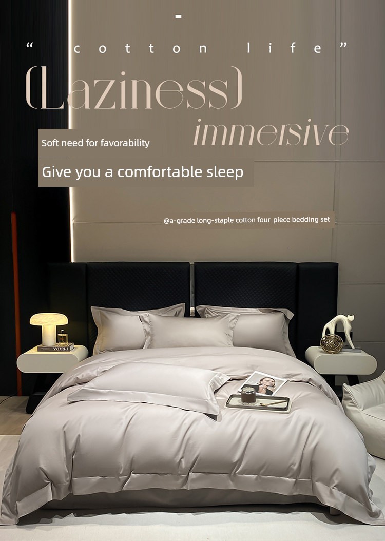 High-End Hotel A-Class New High-Density Long-Staple Cotton Four-Piece Set Pure Cotton Duvet Cover All-Cotton Solid Color Bedding 4