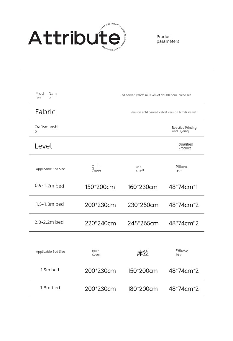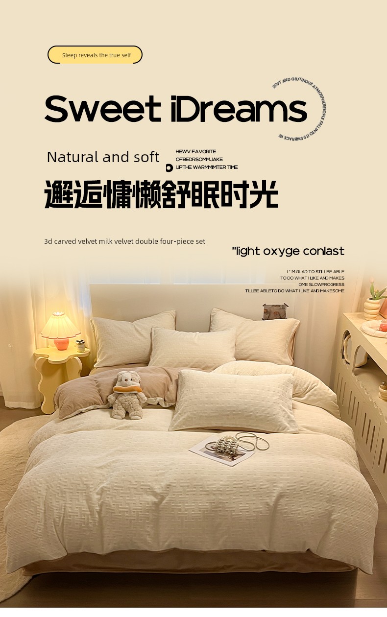 1.5m Bed [Milk Velvet Sheet Set of Four] - Suitable for 200X230Cm Quilt Core