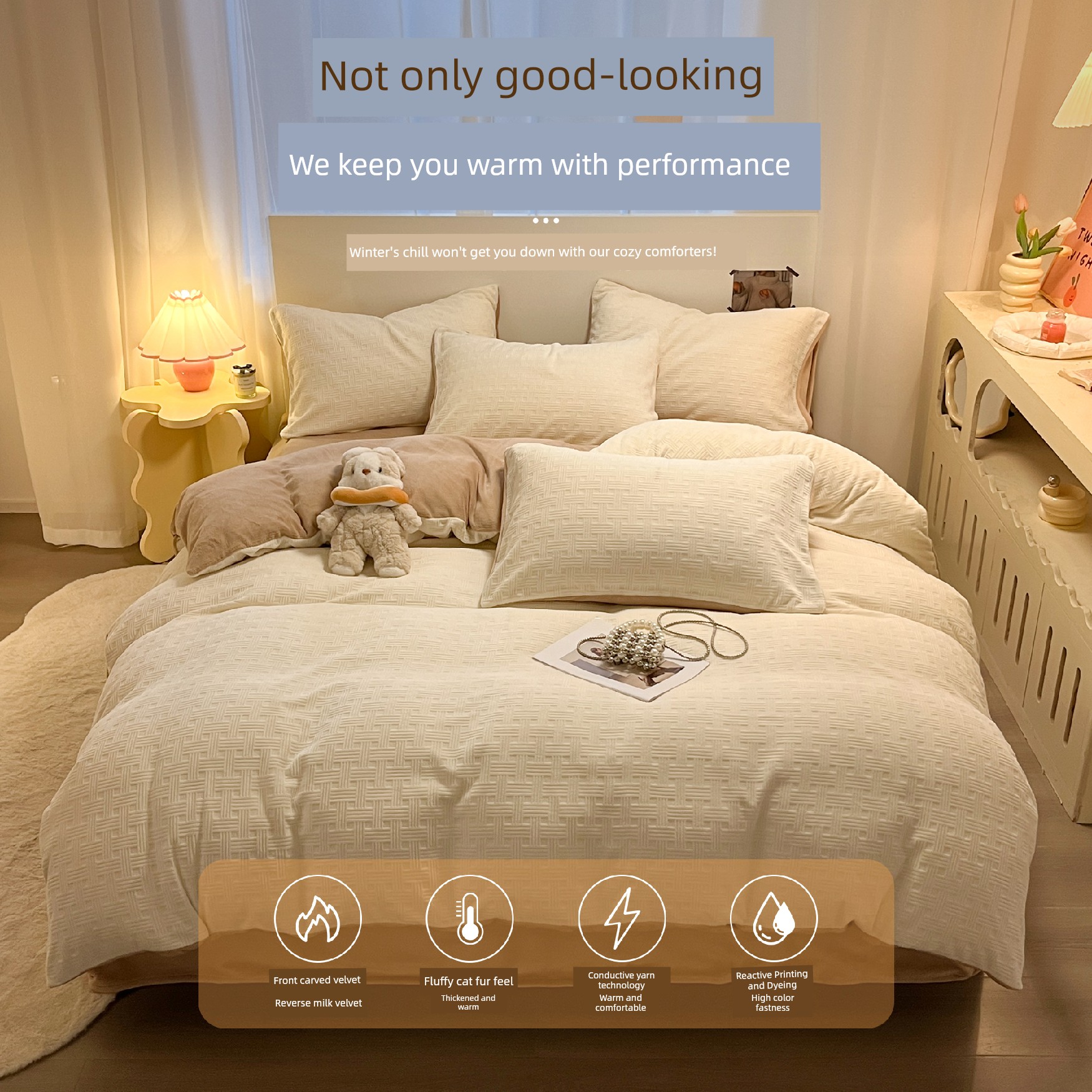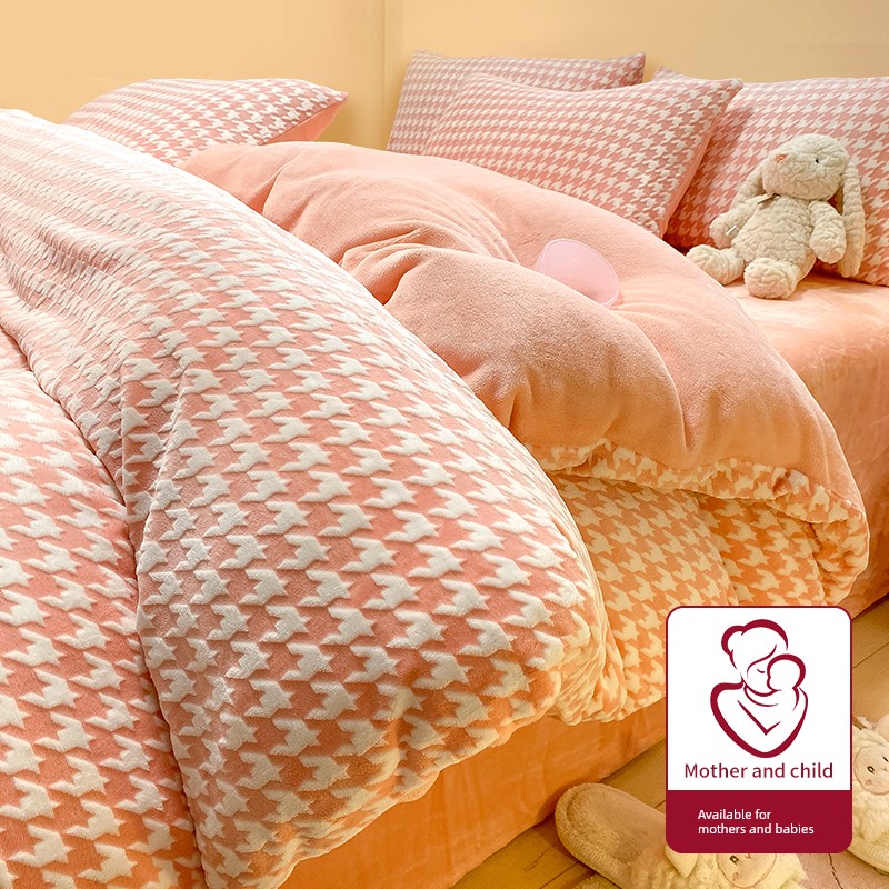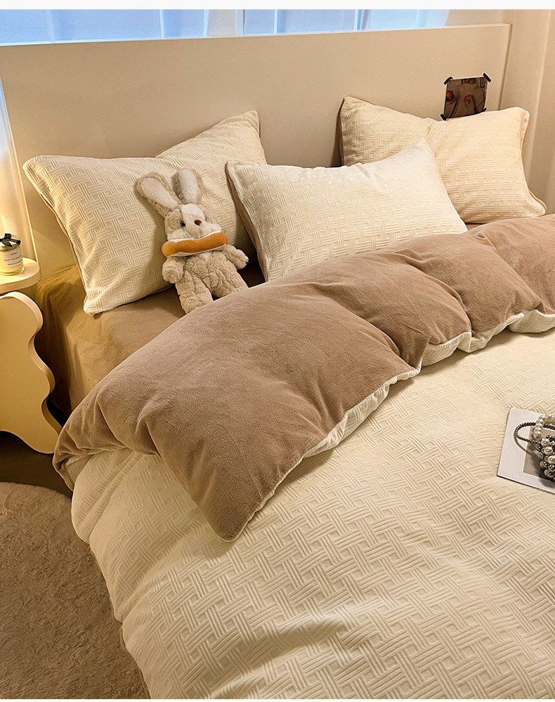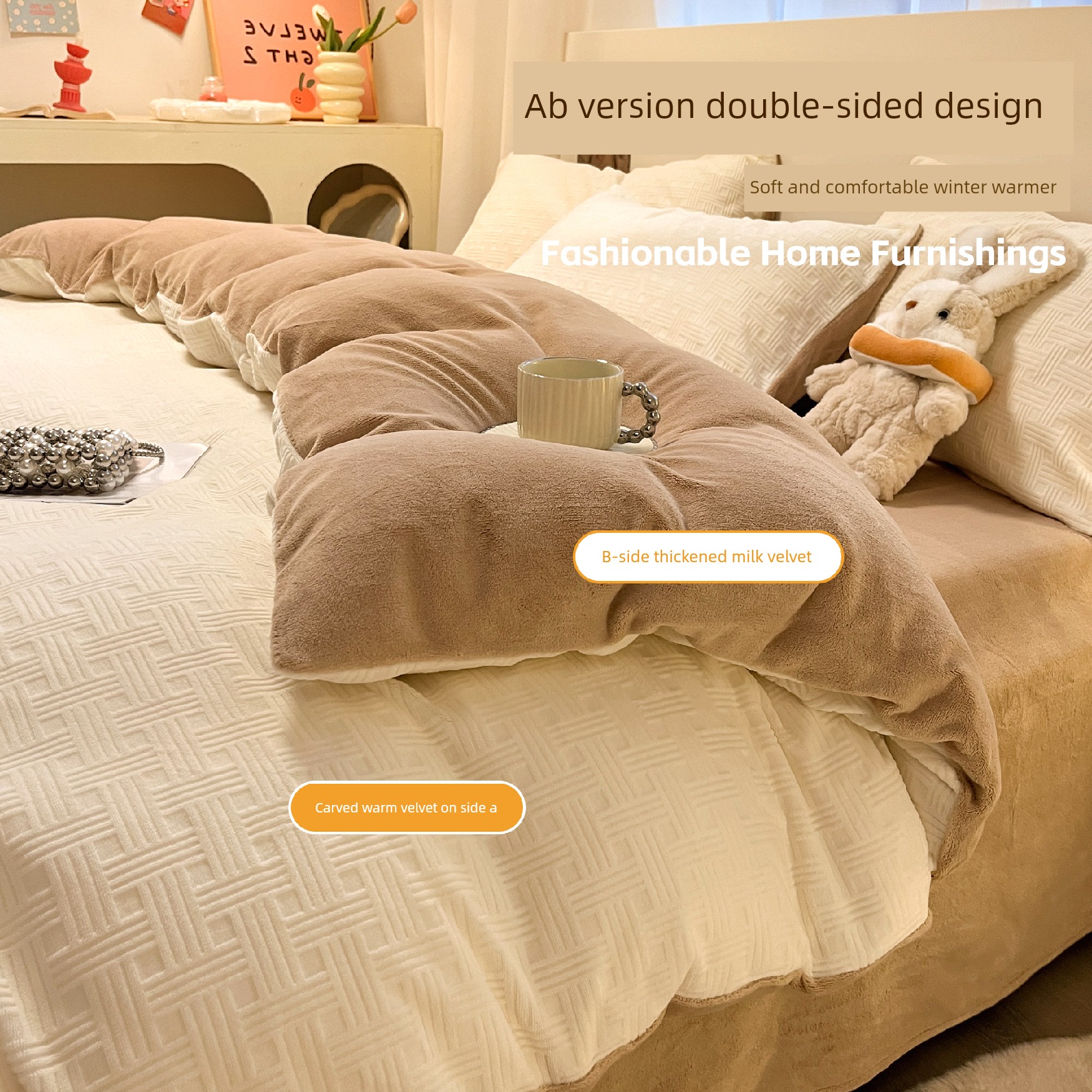 Thickened Milk Velvet Four-Piece Bedding Set 2025 New Winter Coral Velvet Bed Sheet Duvet Cover Three-Piece Bedding Set