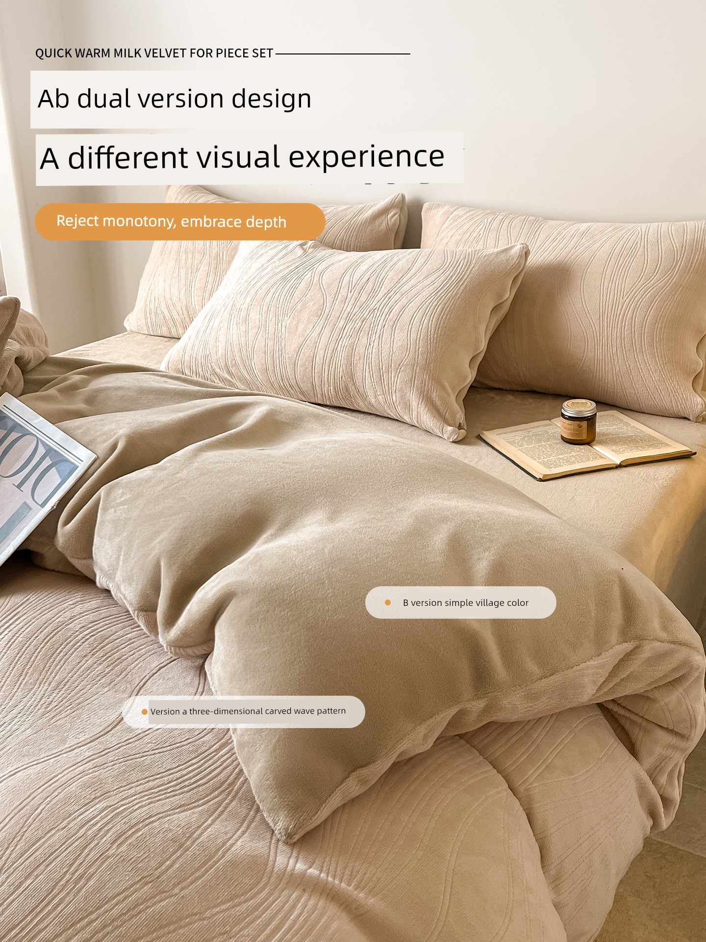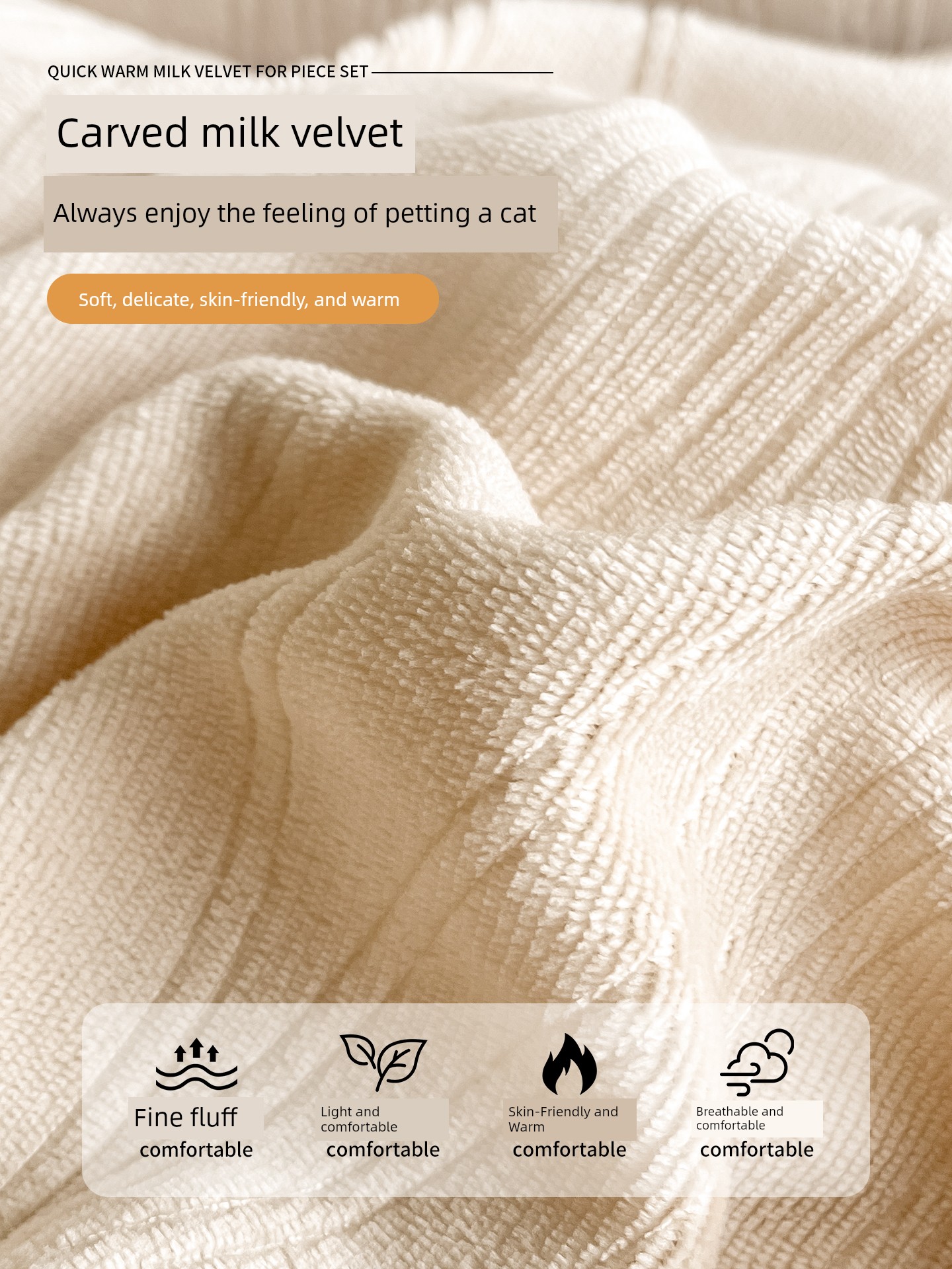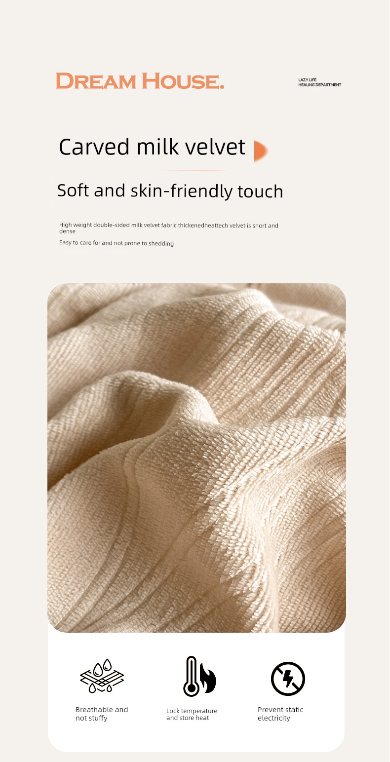 Upgraded Model - Wavy Apricot - [3D Carved Milk Velvet, Class a Quality, Warm and Naked for Sleeping]