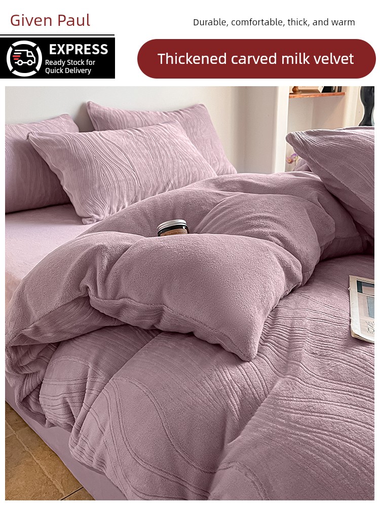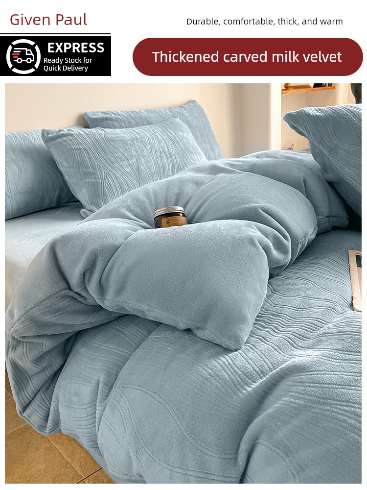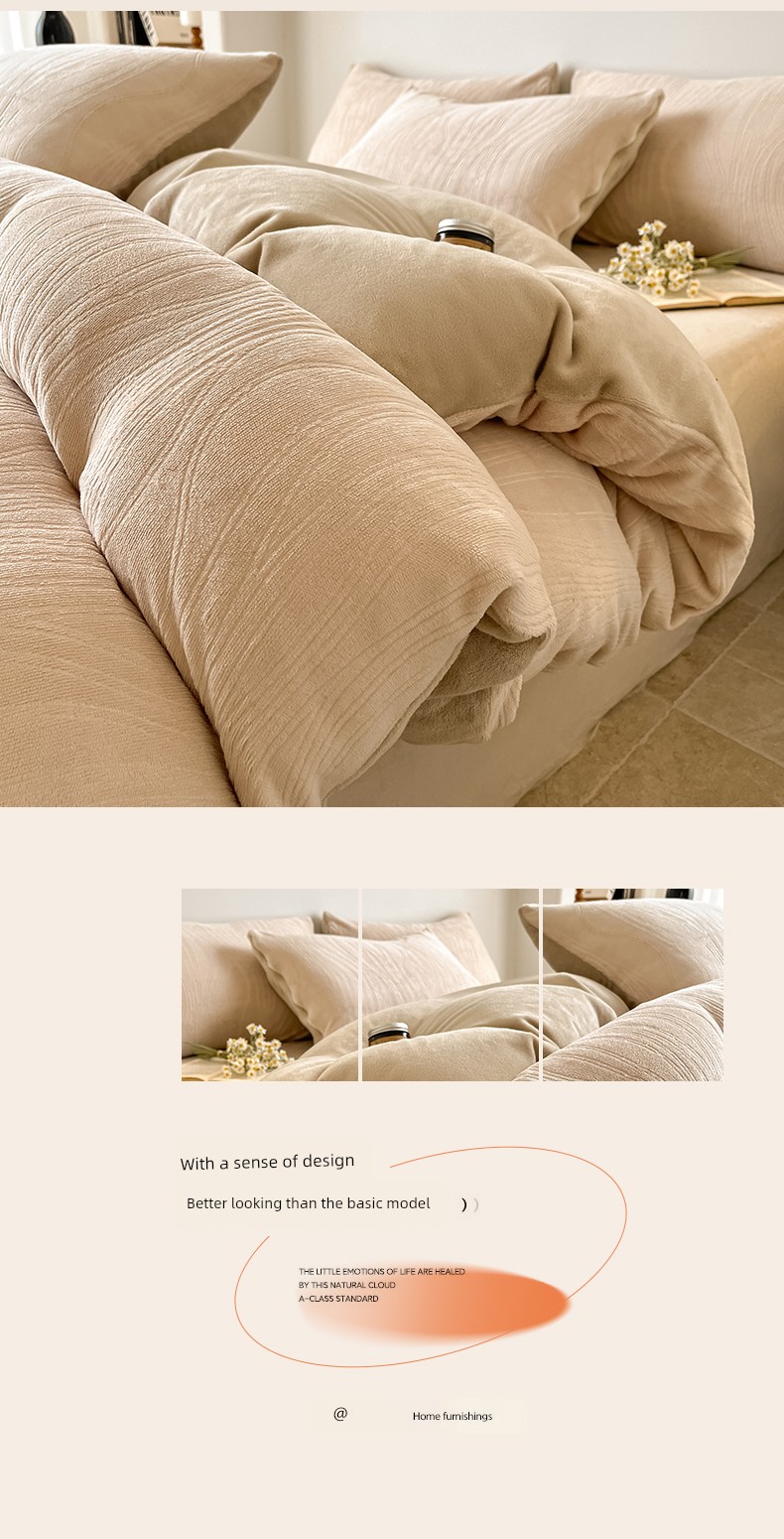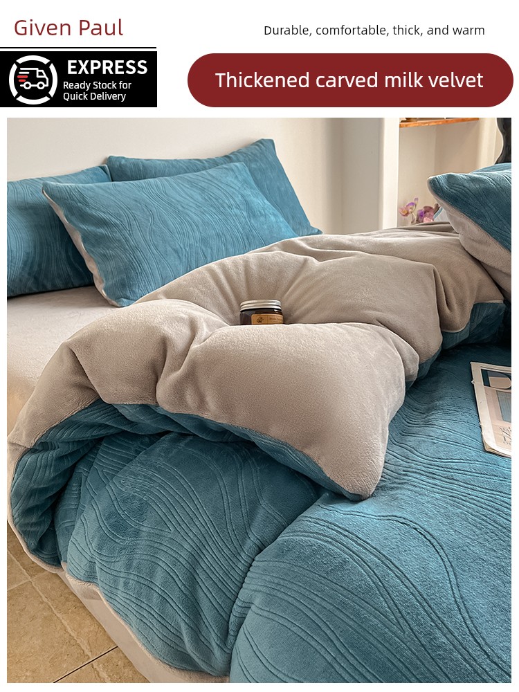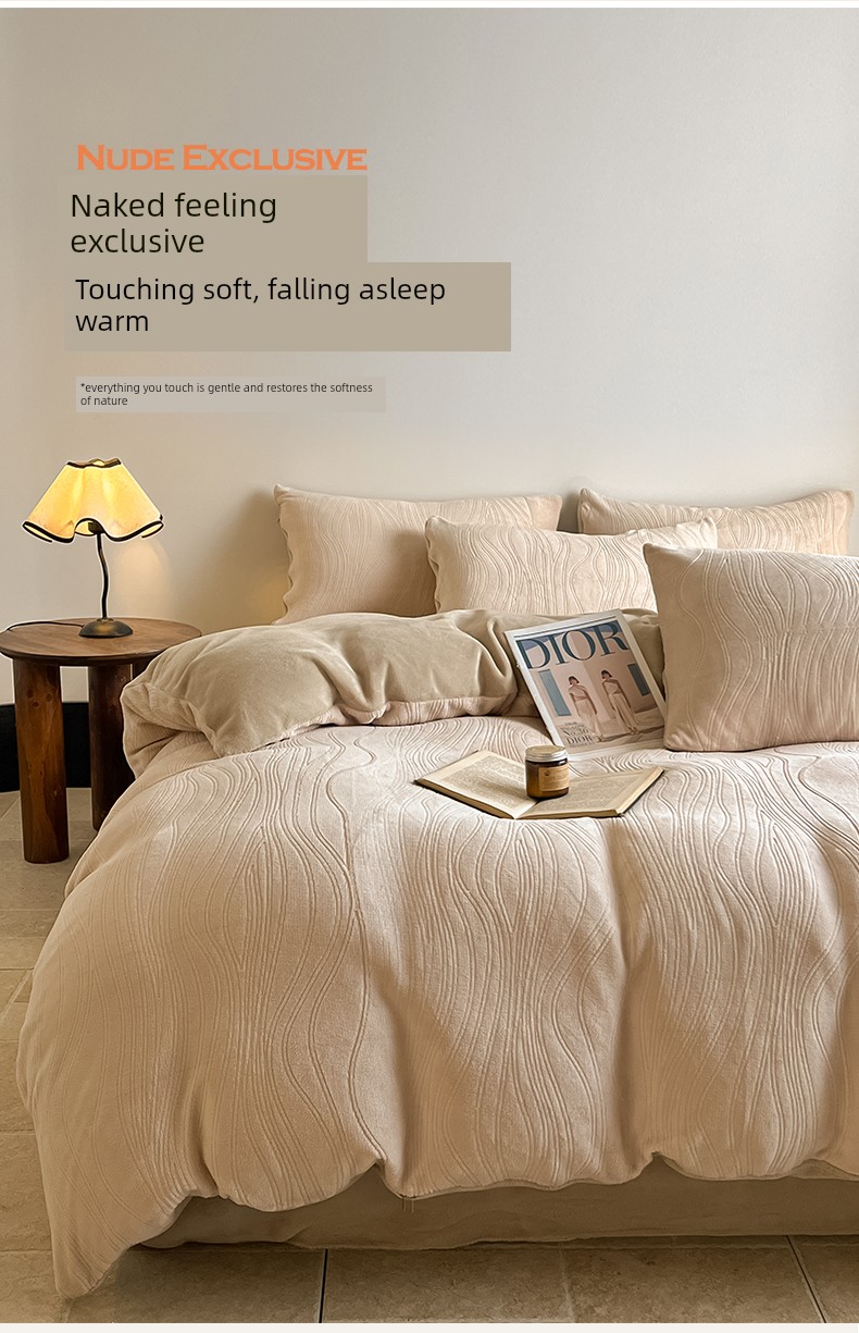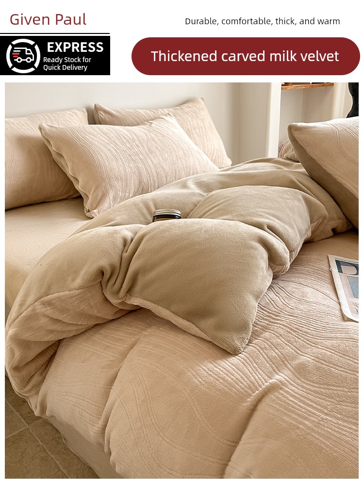 Cream-Style Milk Velvet Four-Piece Set, Winter Thickened Flannel Coral Fleece Duvet Cover, Single Dormitory Bedding Three-Piece Set