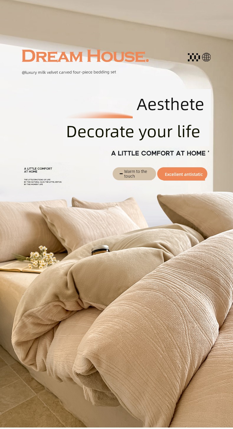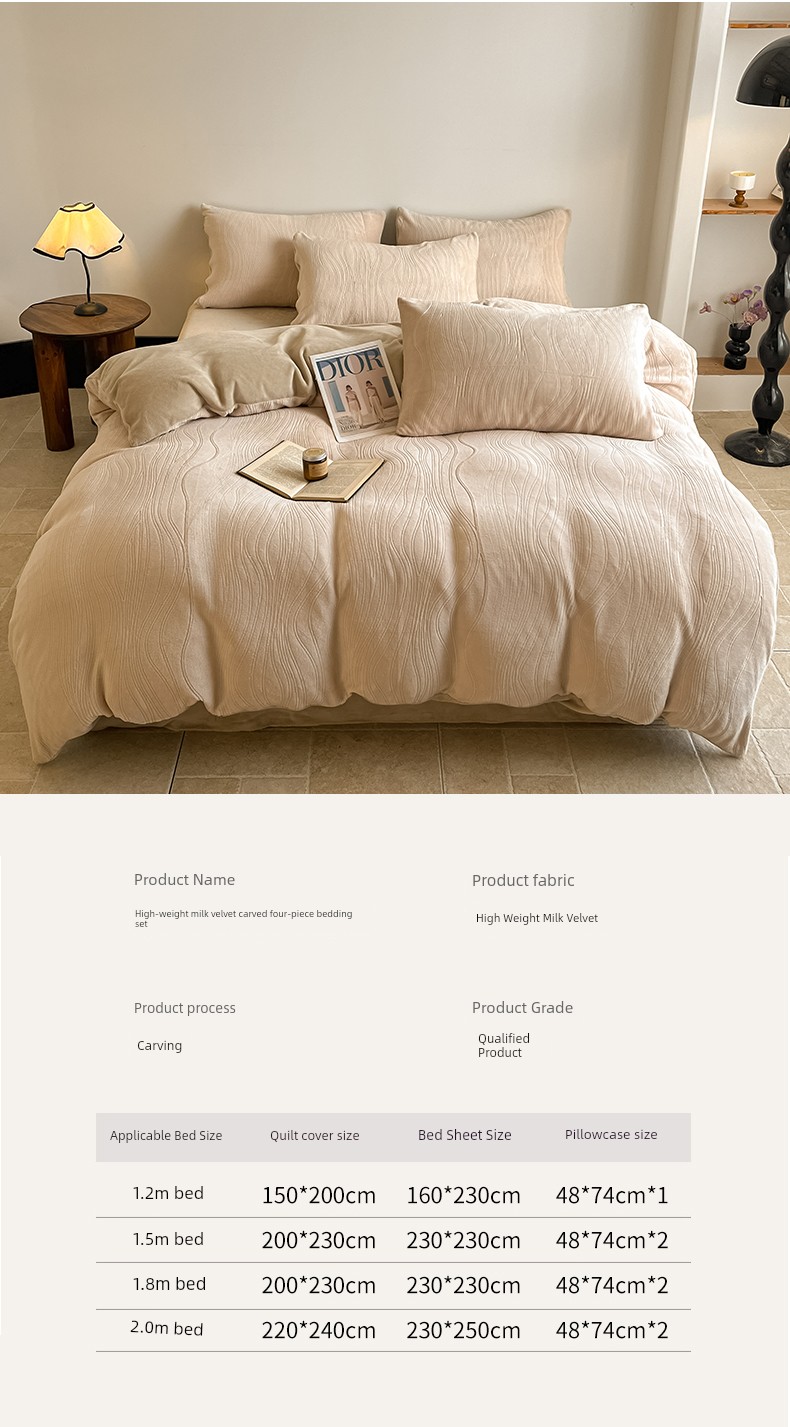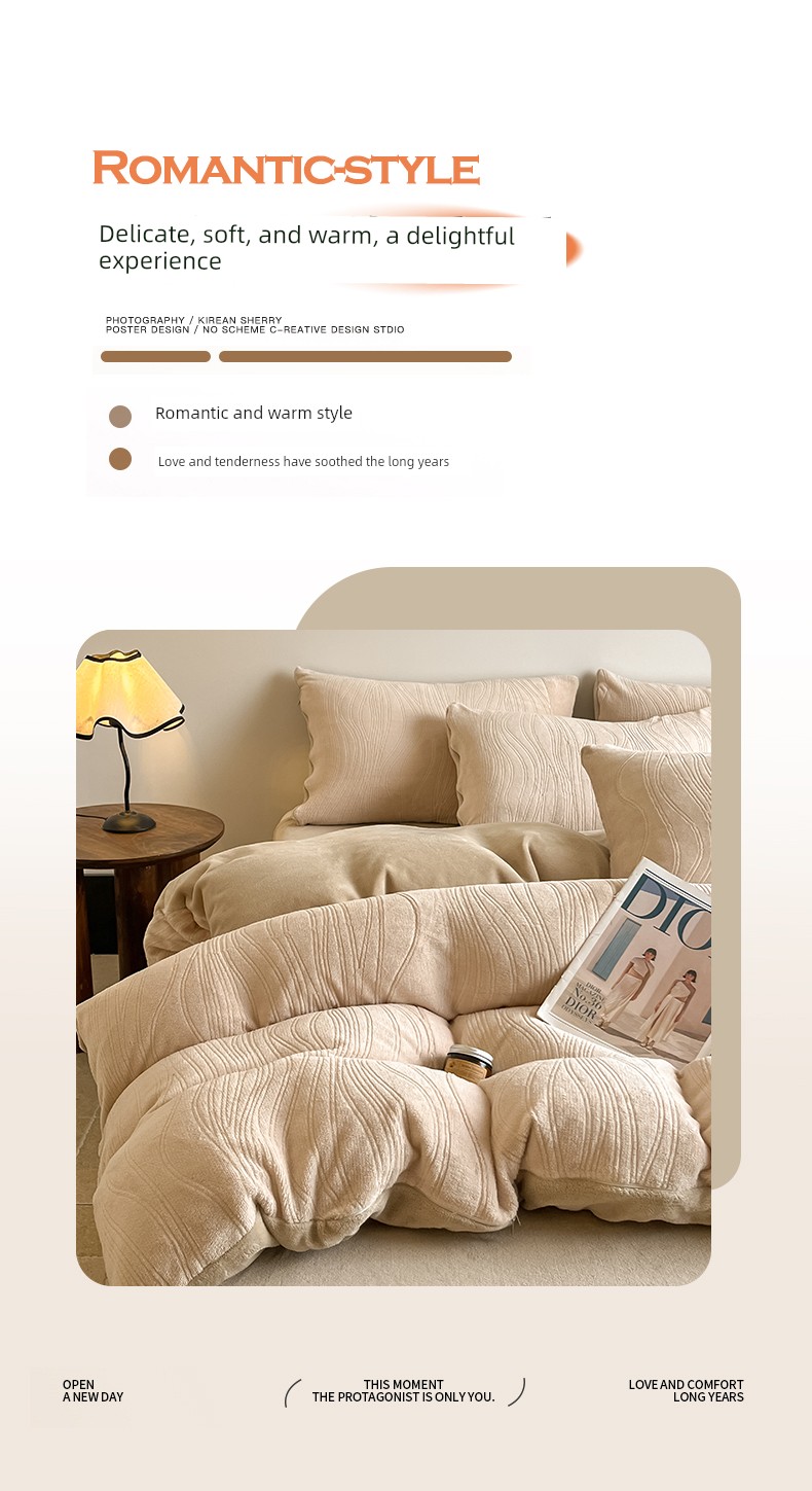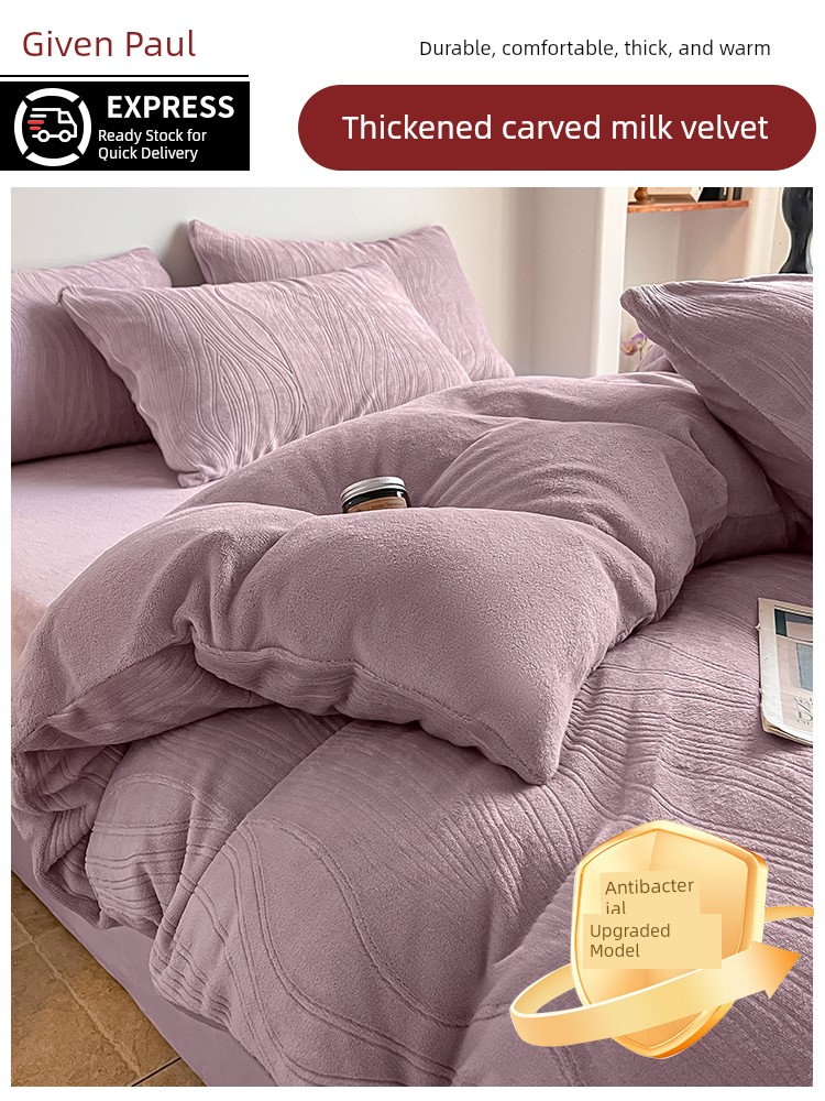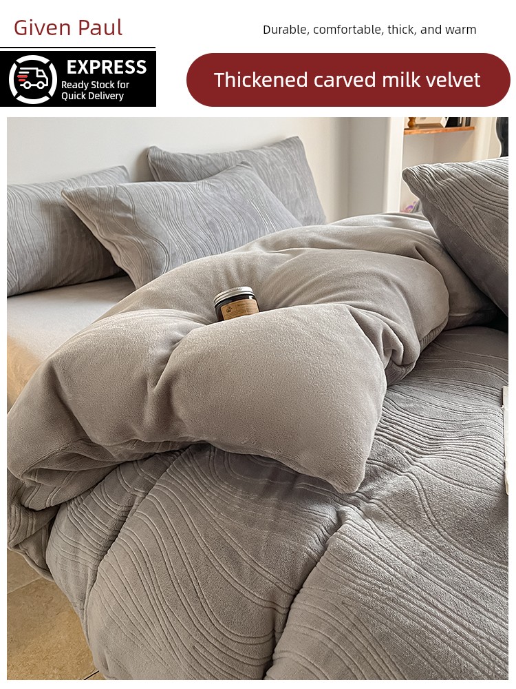 Cream-Style Milk Velvet Four-Piece Set, Winter Thickened Flannel Coral Fleece Duvet Cover, Single Dormitory Bedding Three-Piece Set