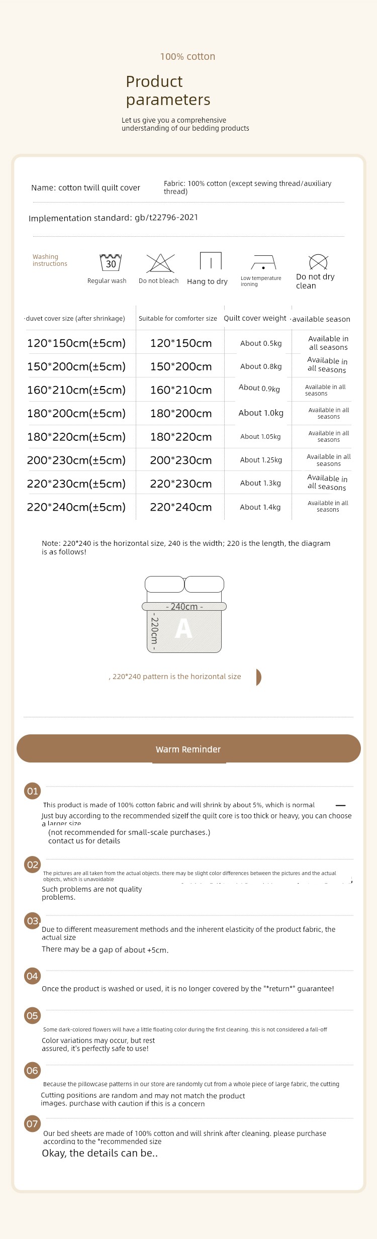 160X210 Quilt Cover + 2.2X2.3 Sheets + a Pair of Pillowcases