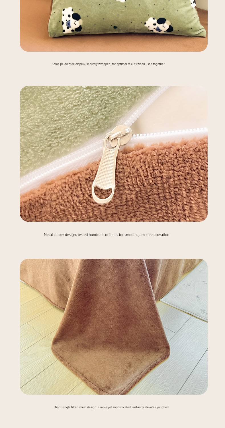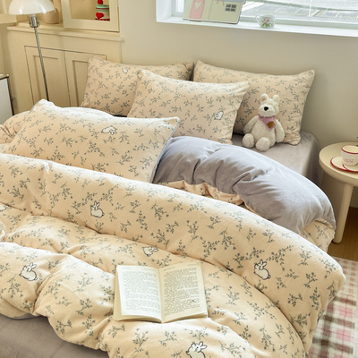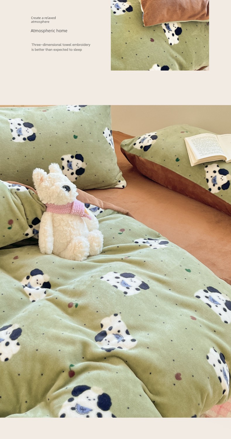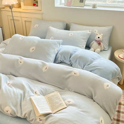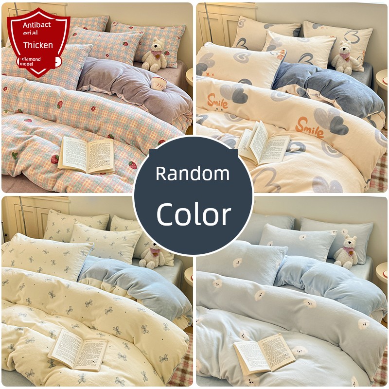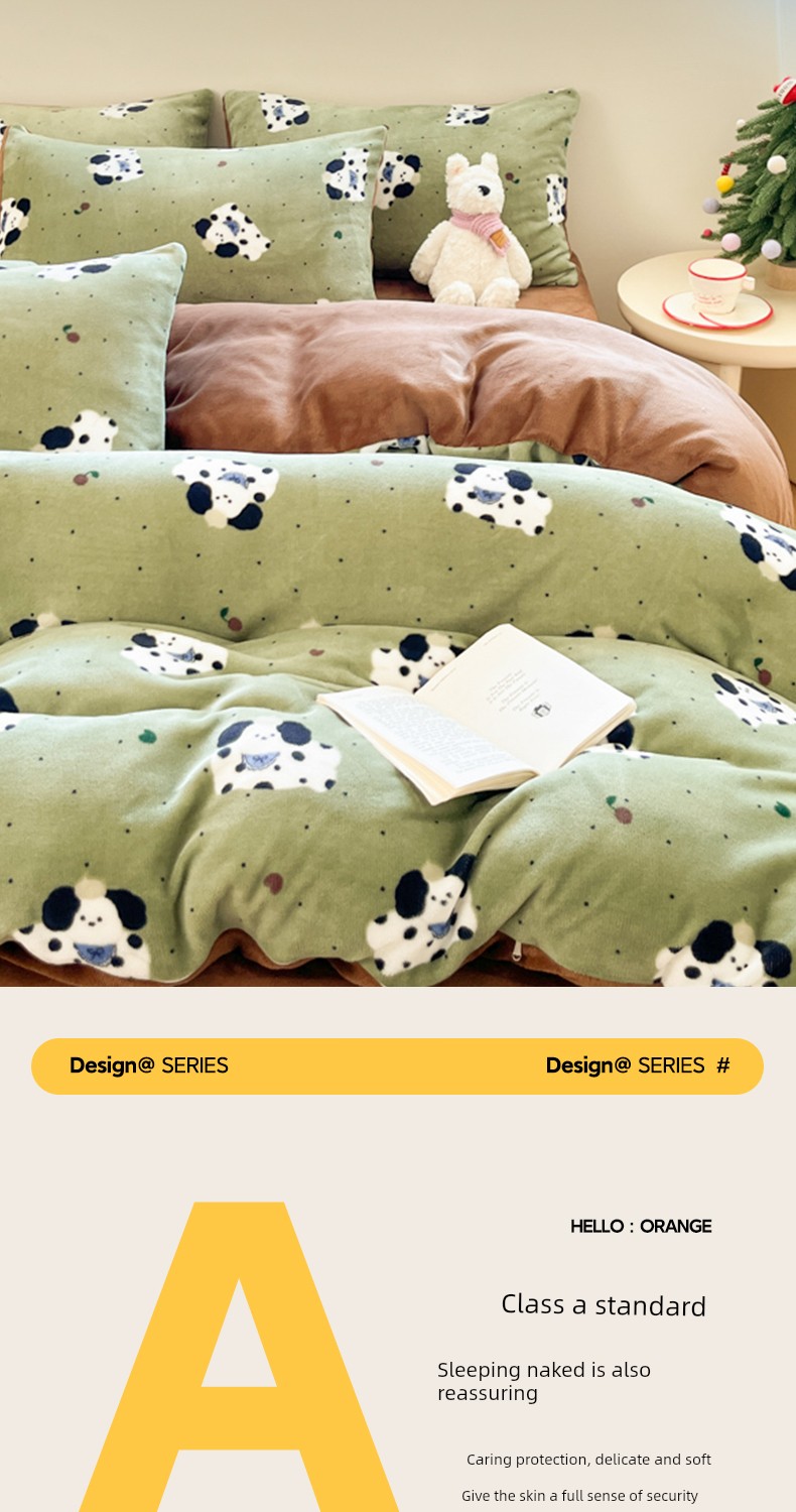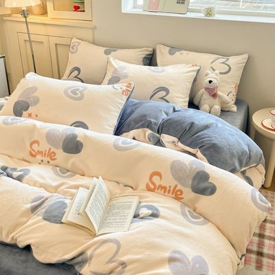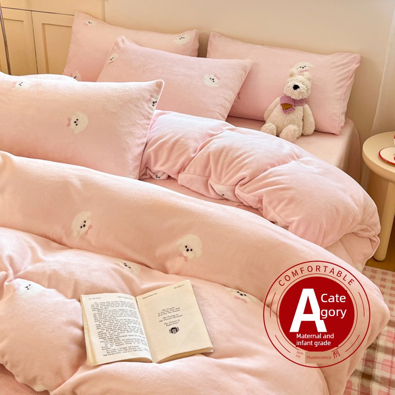 New Cartoon Milk Velvet Four-Piece Bedding Set for Autumn and Winter, Coral Velvet Bed Sheet, Duvet Cover, Fitted Sheet, Three-Piece Bedding Set