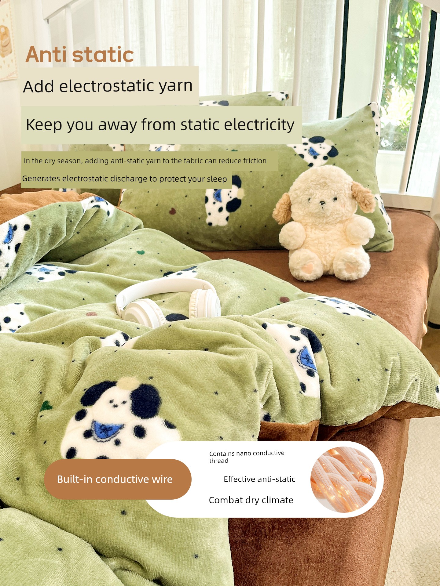 Upgraded Thickened Version - Matcha Green Dog [Maternal and Infant Grade Fabric, Thickened Warm Milk Velvet, Long-Lasting Heat Retention]