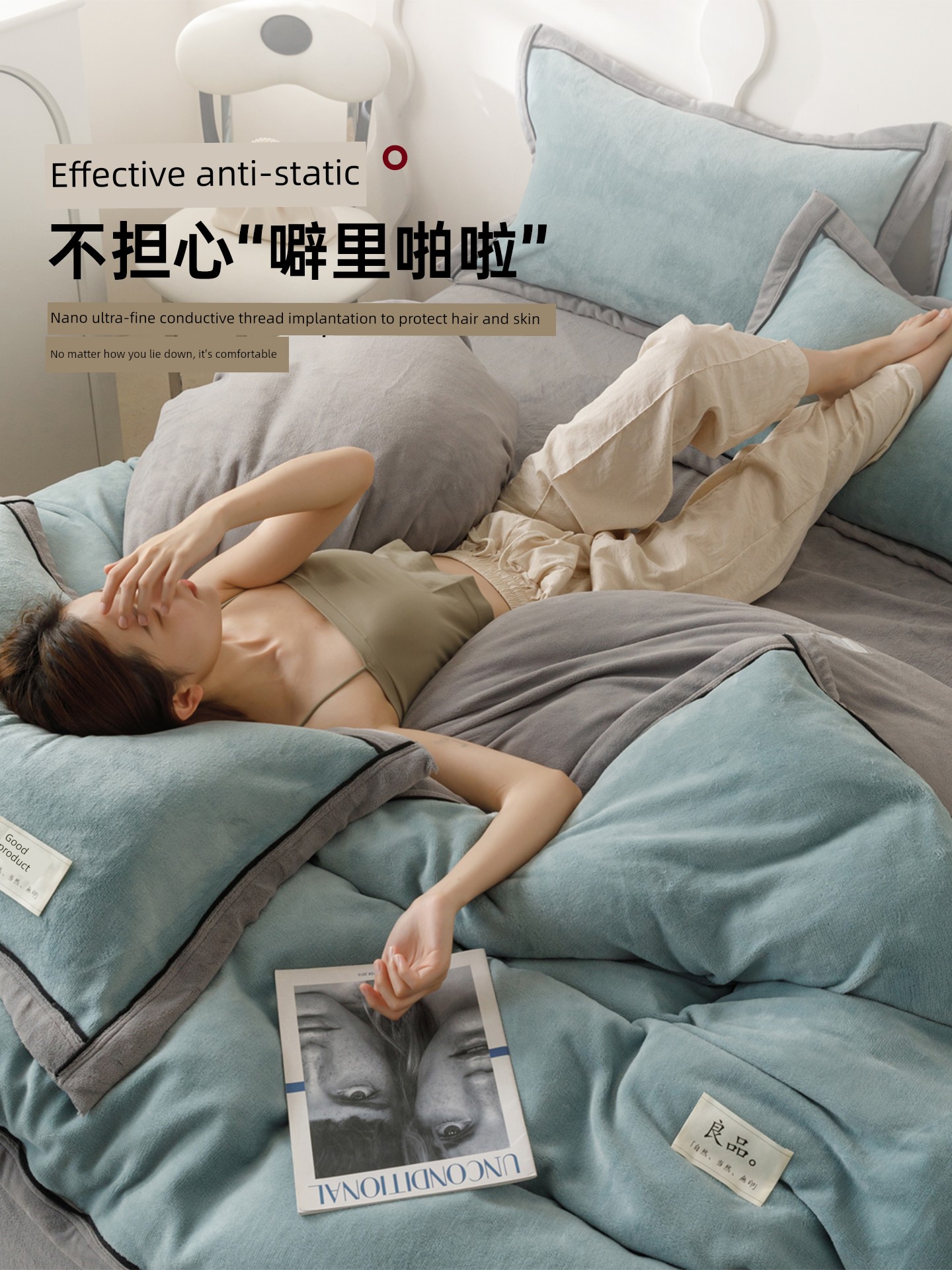 Light Aqua + Olive Green [High Weight Milk Velvet, Non-Shedding and Anti-Static]