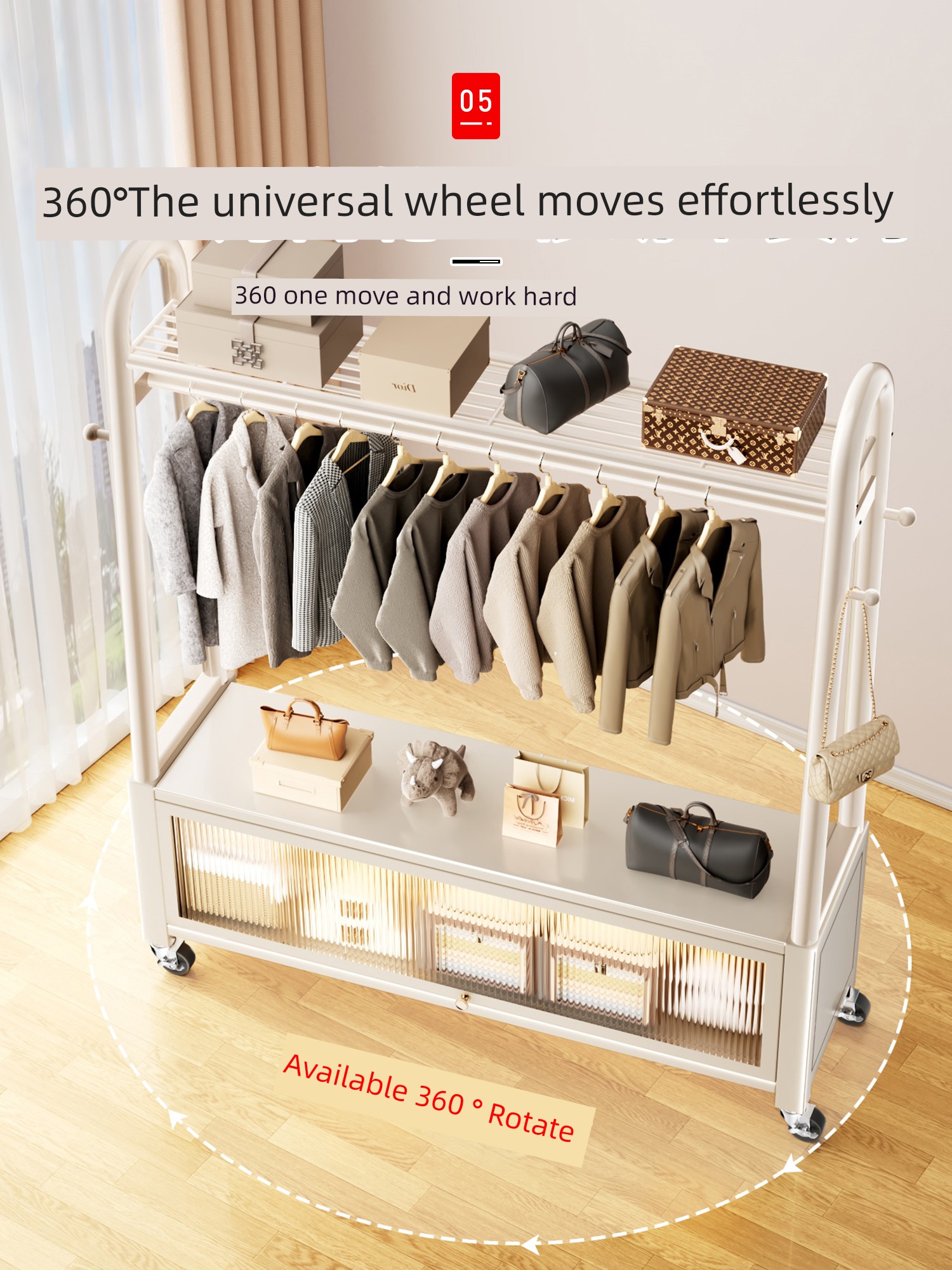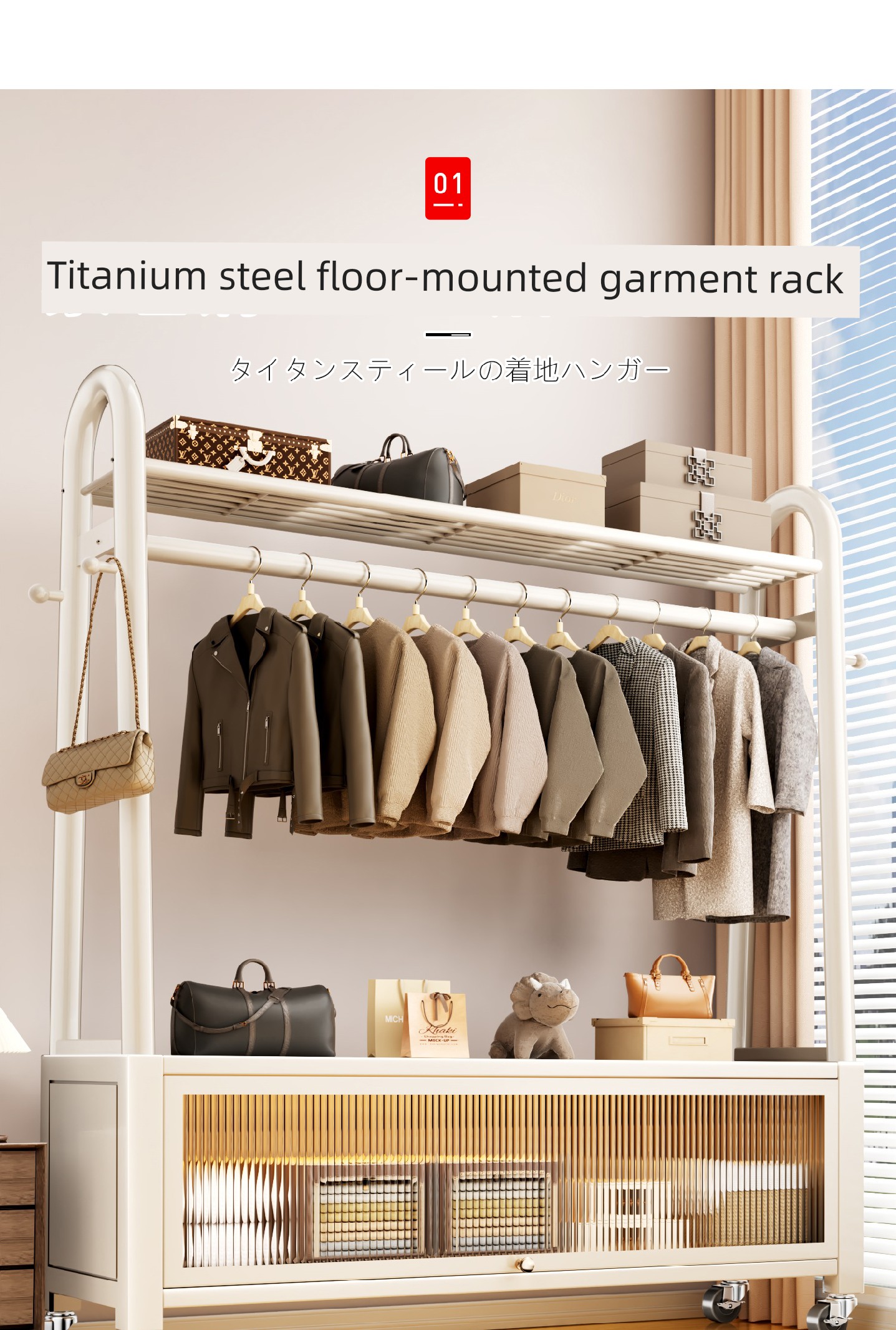 Japanese-Style Clothes Rack for Bedroom, Floor-Standing, 2025 New Model, Movable Clothes Hanger, Household Clothing Rack, Room Storage Rack