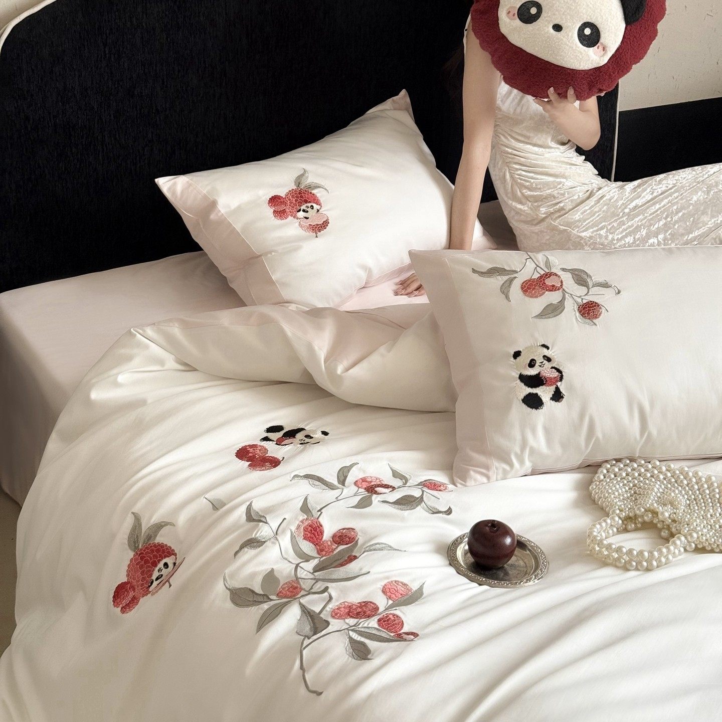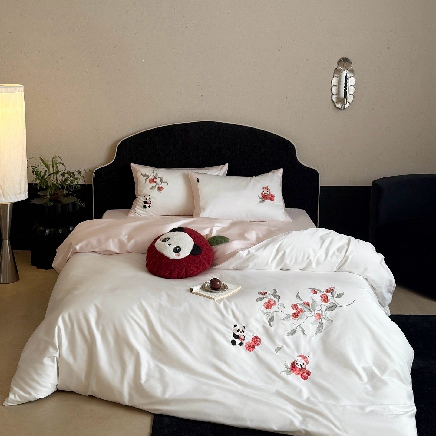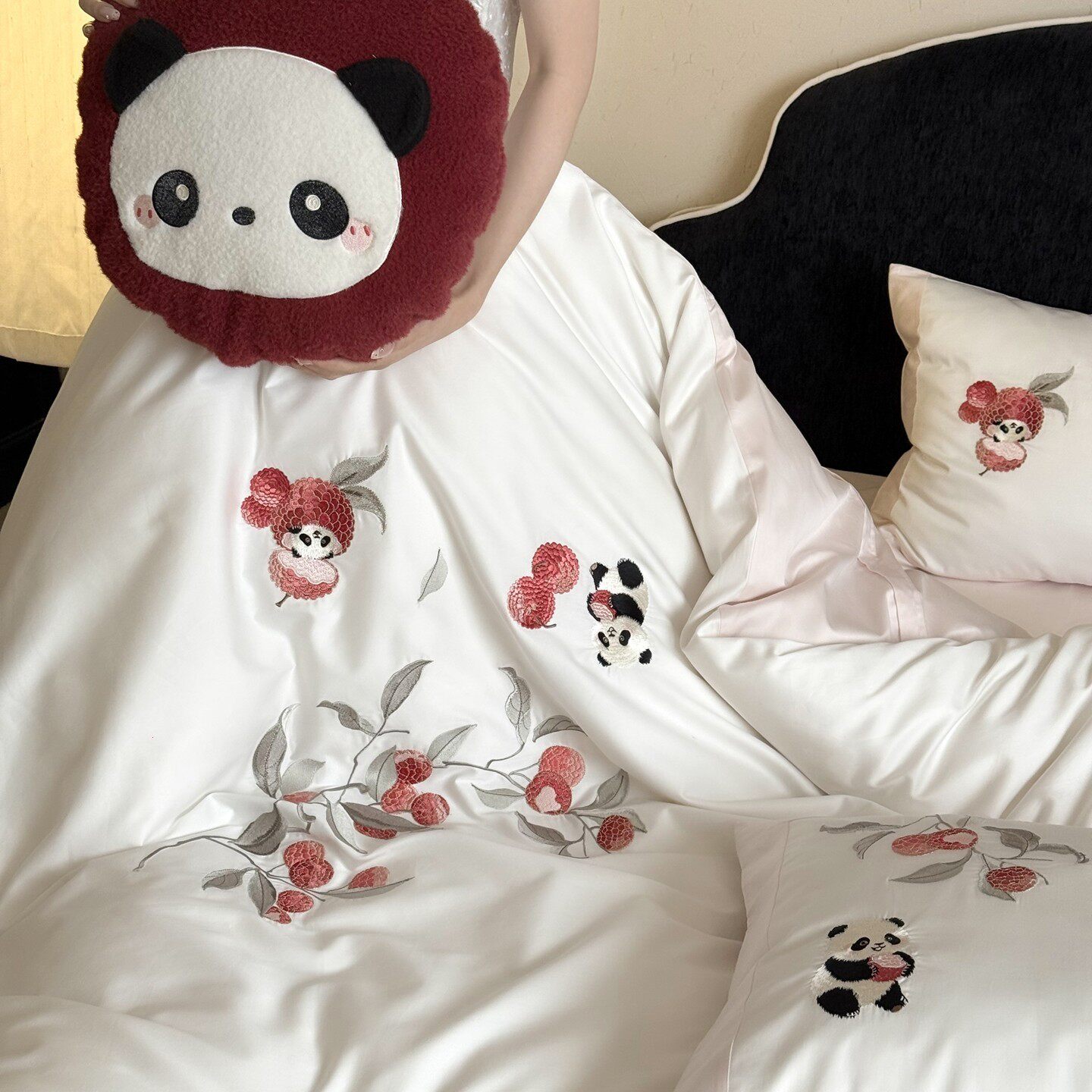Cartoon | Cute Panda 100-Count Long-Staple Cotton Four-Piece Set, All-Cotton Embroidered Duvet Cover, Four-Season Pure Cotton Bedding for Sleeping Naked 4
