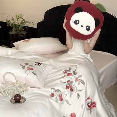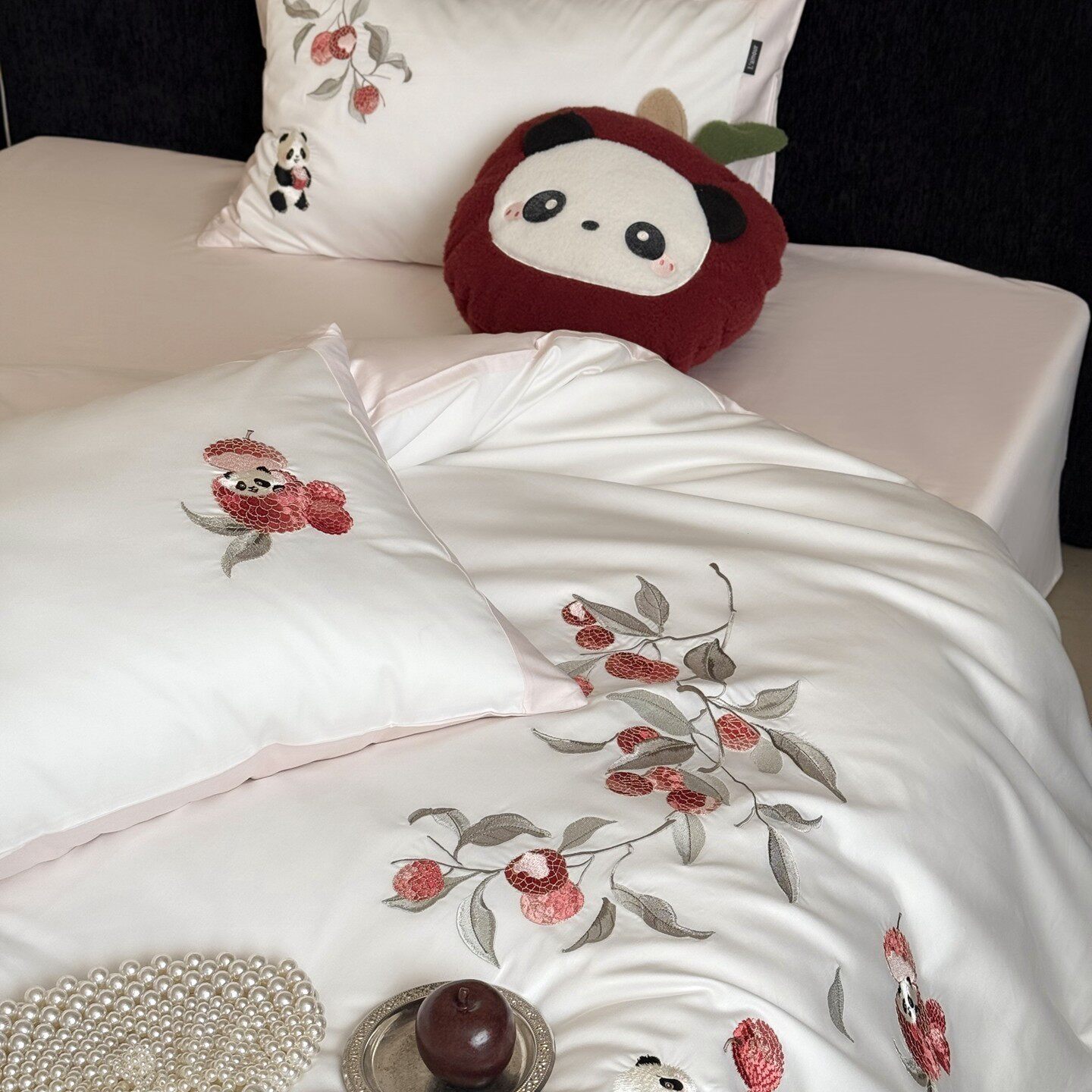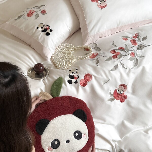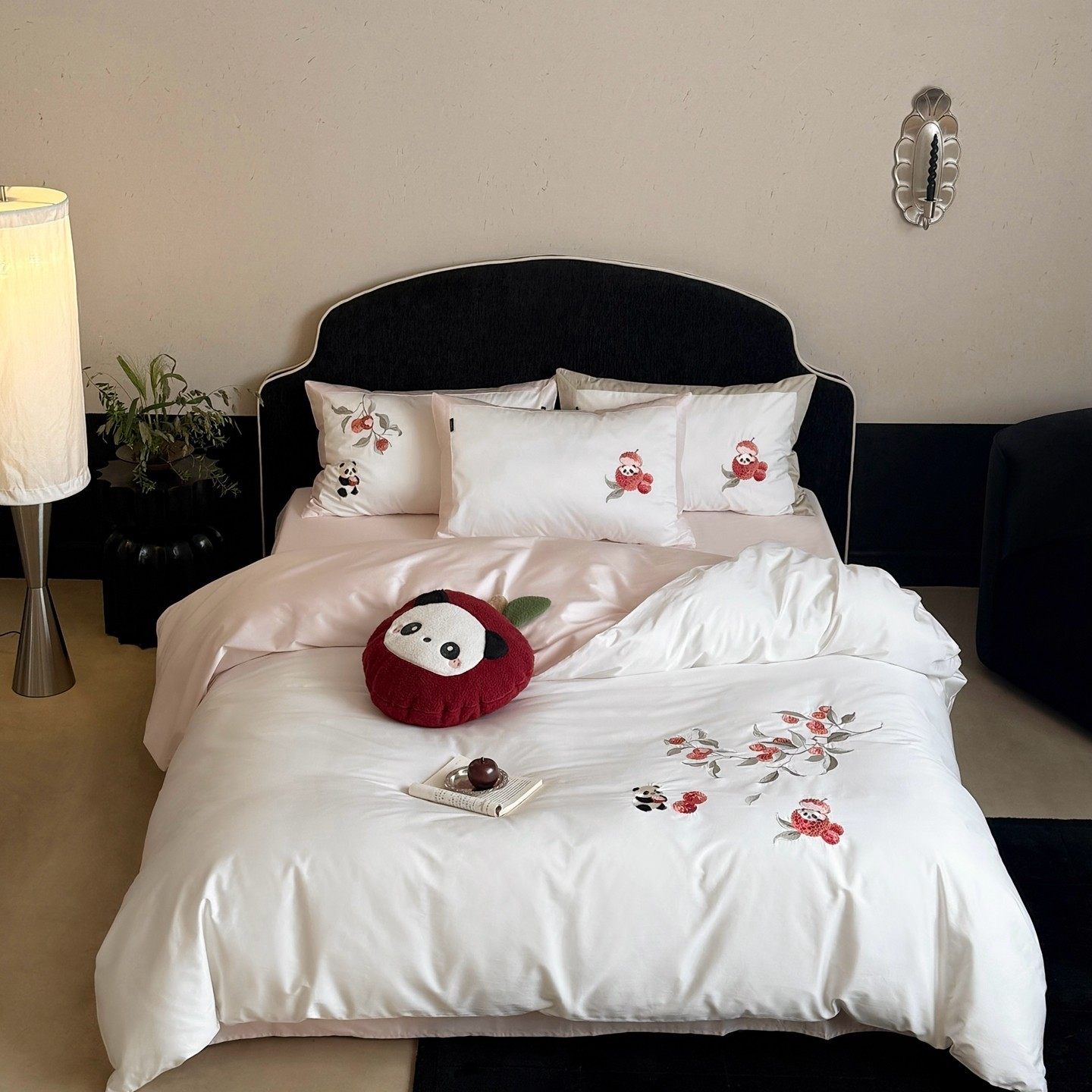 Cartoon | Cute Panda 100-Count Long-Staple Cotton Four-Piece Set, All-Cotton Embroidered Duvet Cover, Four-Season Pure Cotton Bedding for Sleeping Naked 4