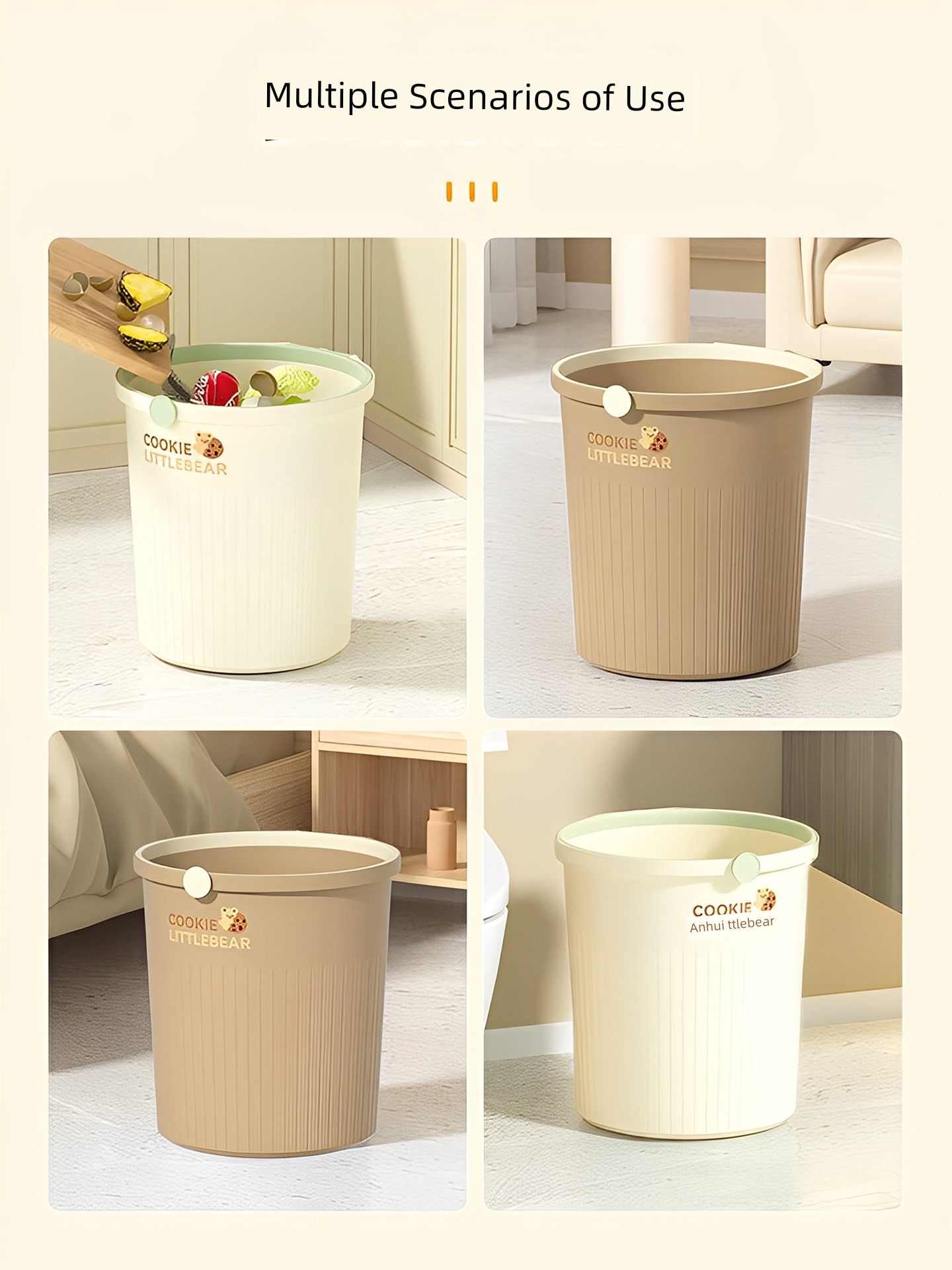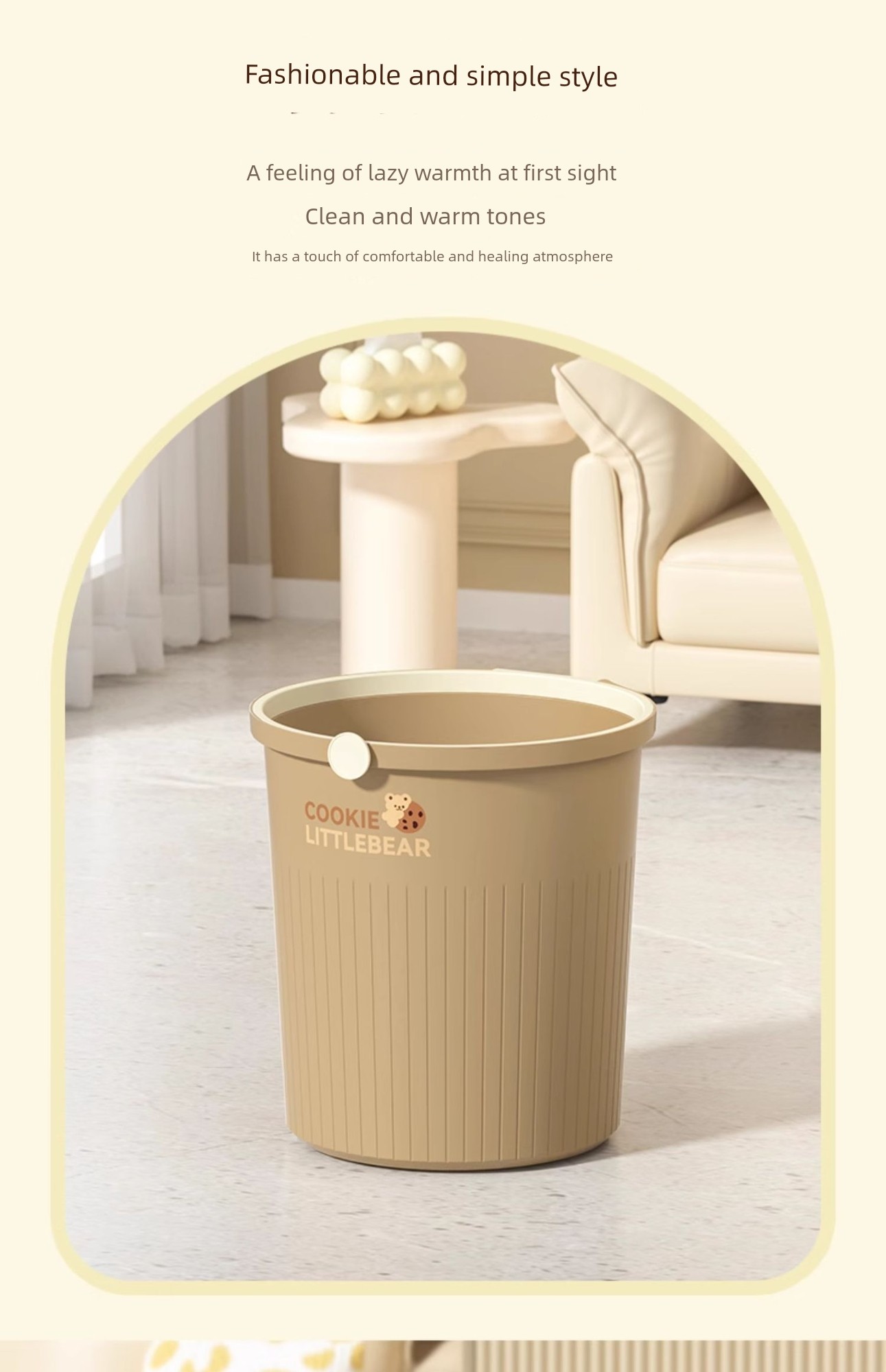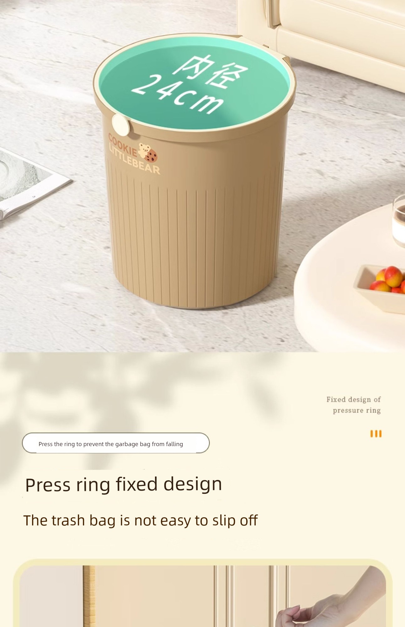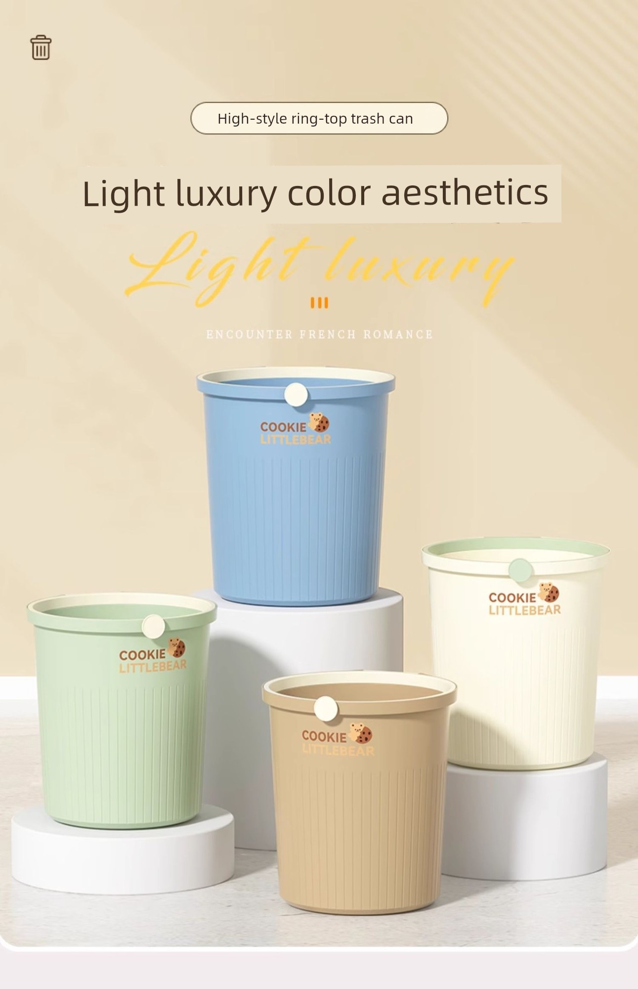 2026 New Model Simple Trash Can with a Ring-Shaped Lid in Cream Style for Kitchen, Living Room, Office, Toilet, and Bathroom Use