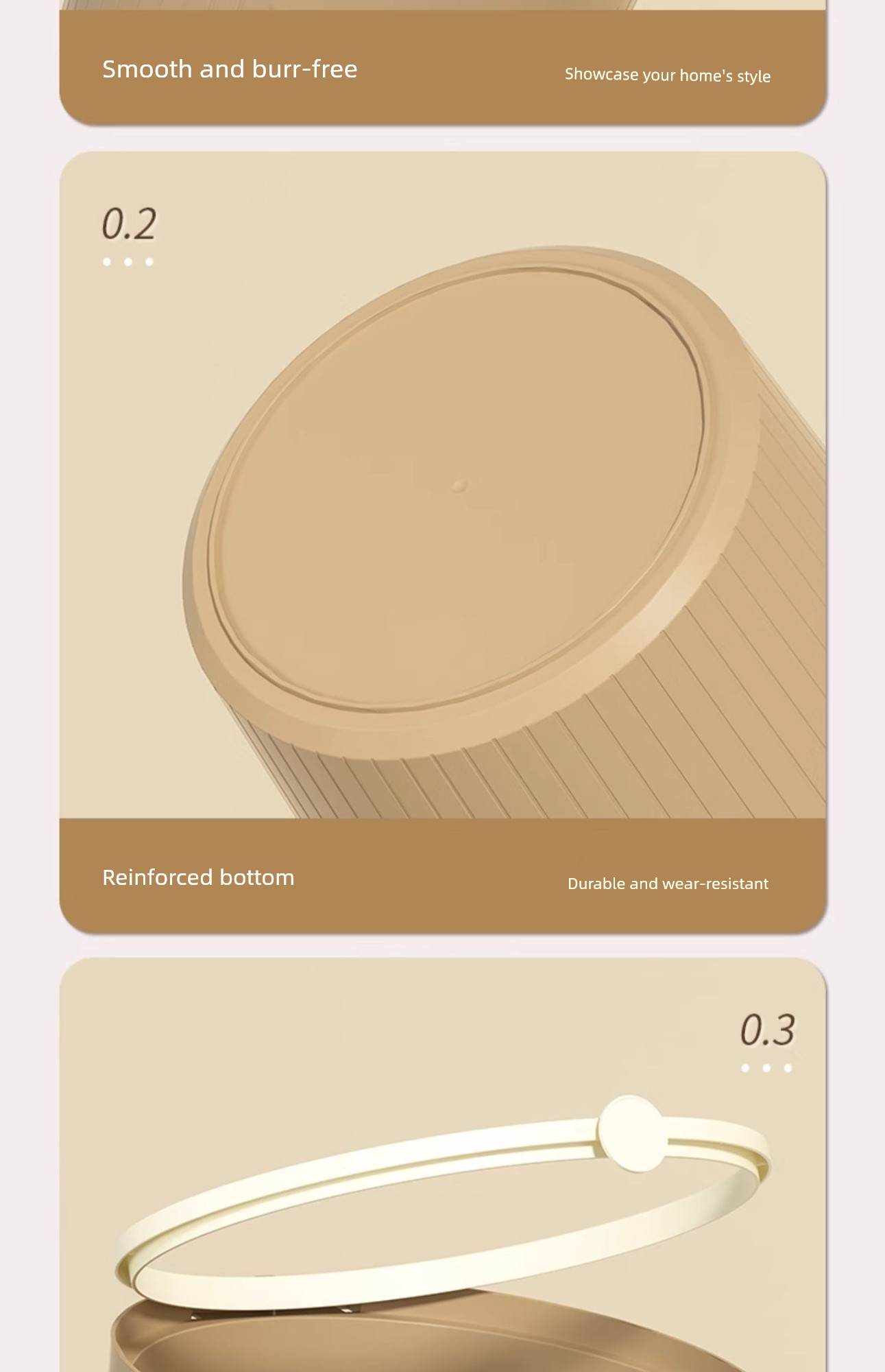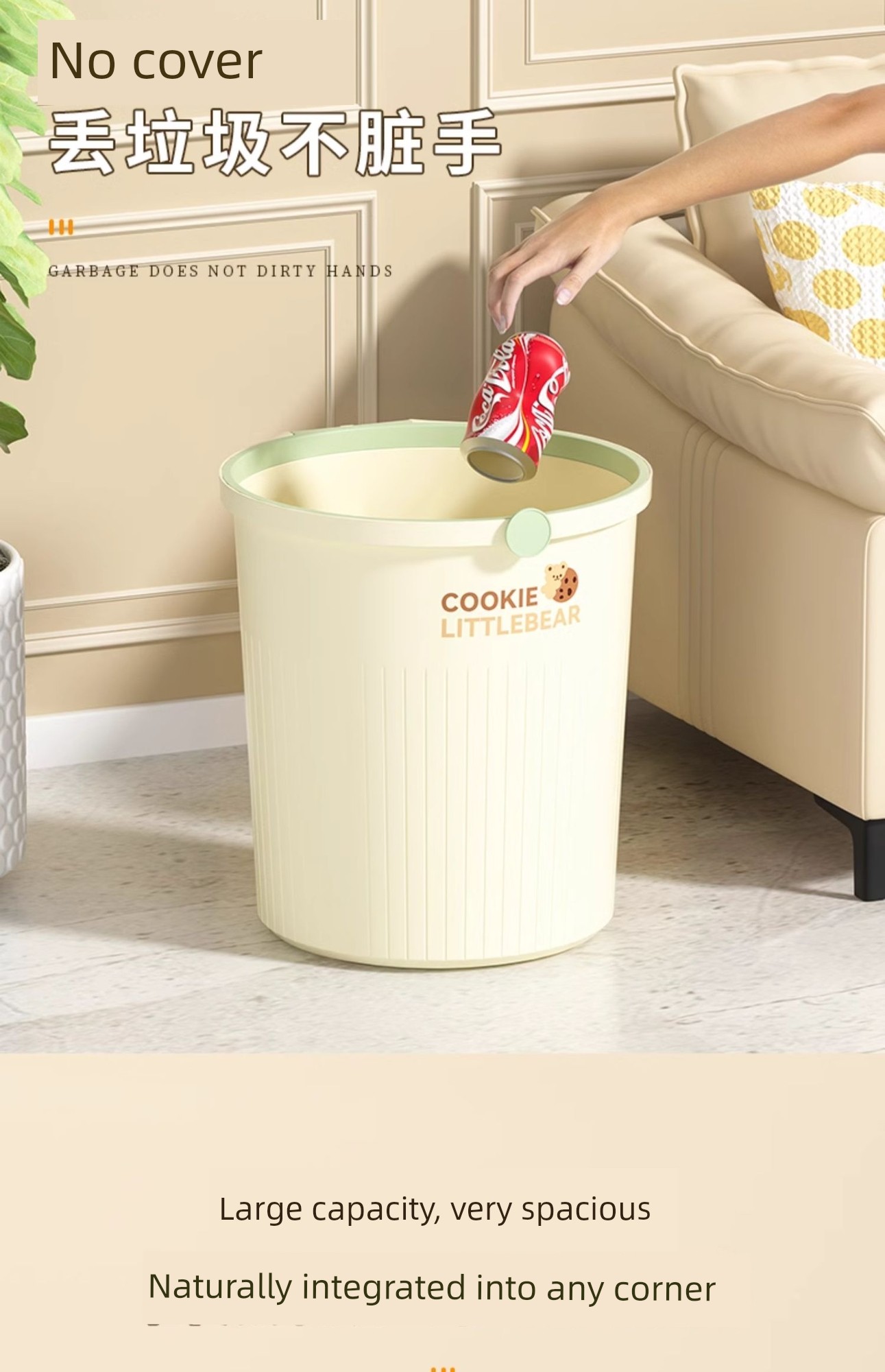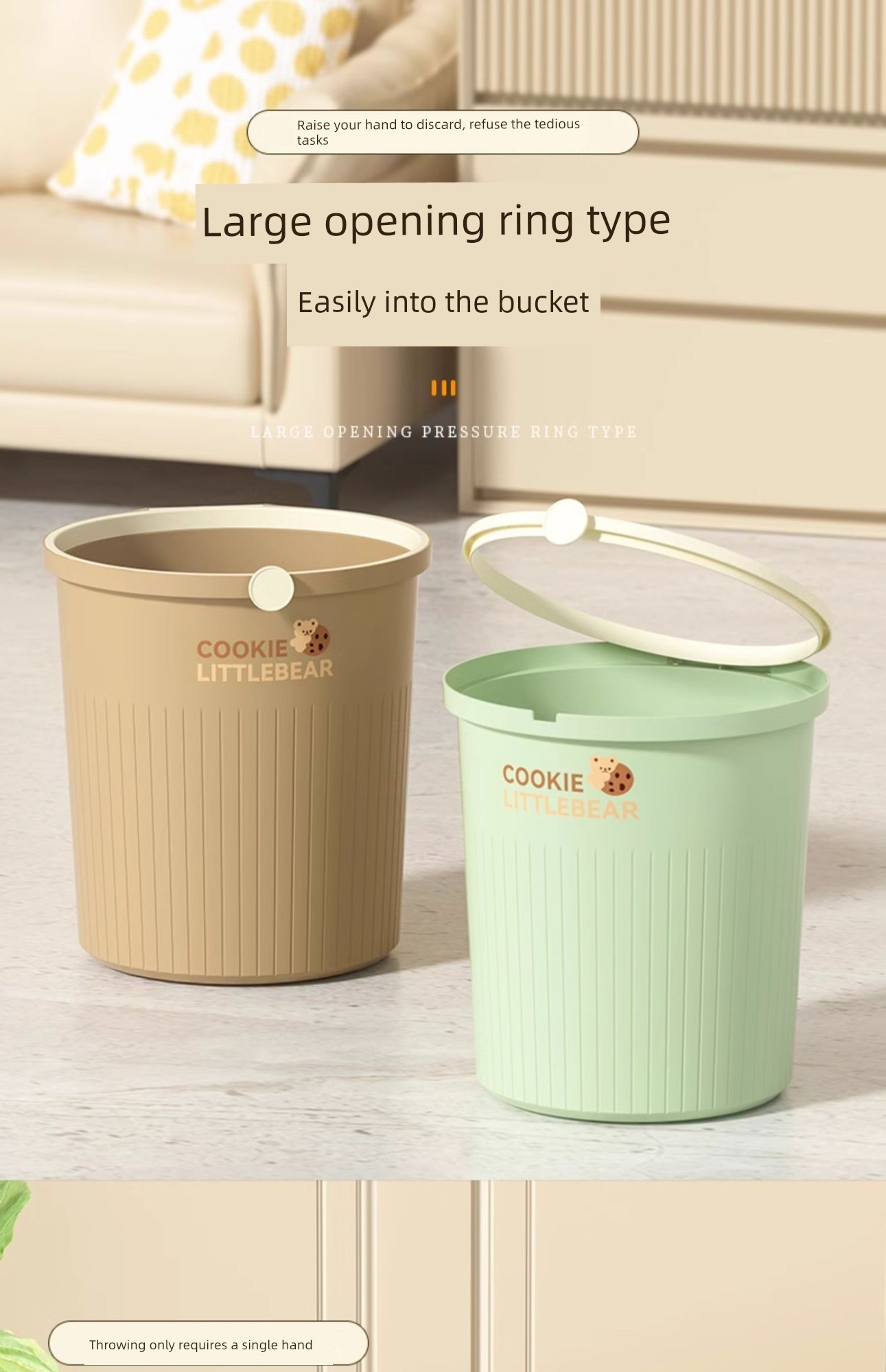 2026 New Model Simple Trash Can with a Ring-Shaped Lid in Cream Style for Kitchen, Living Room, Office, Toilet, and Bathroom Use
