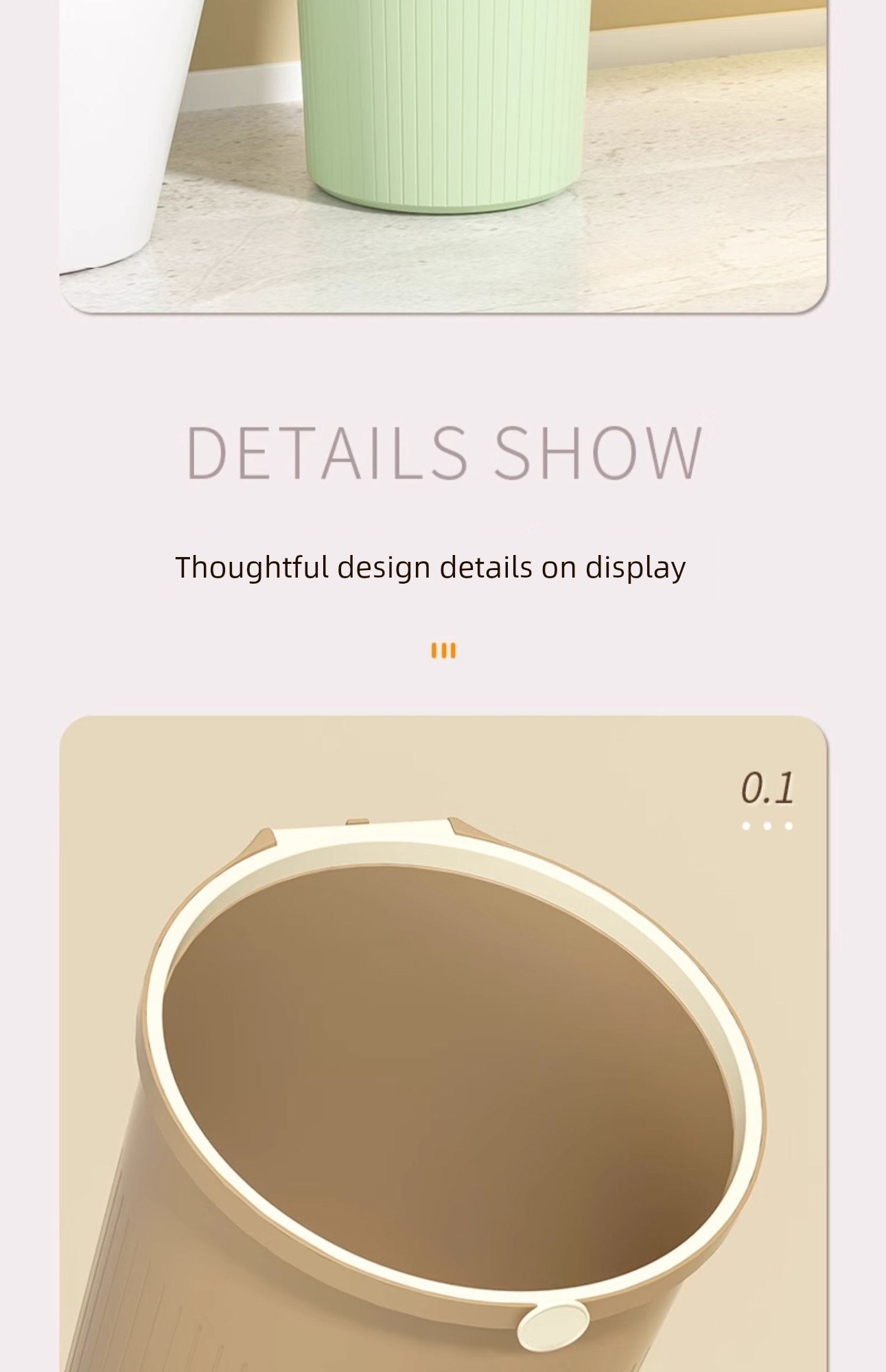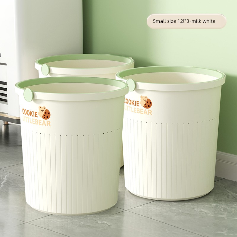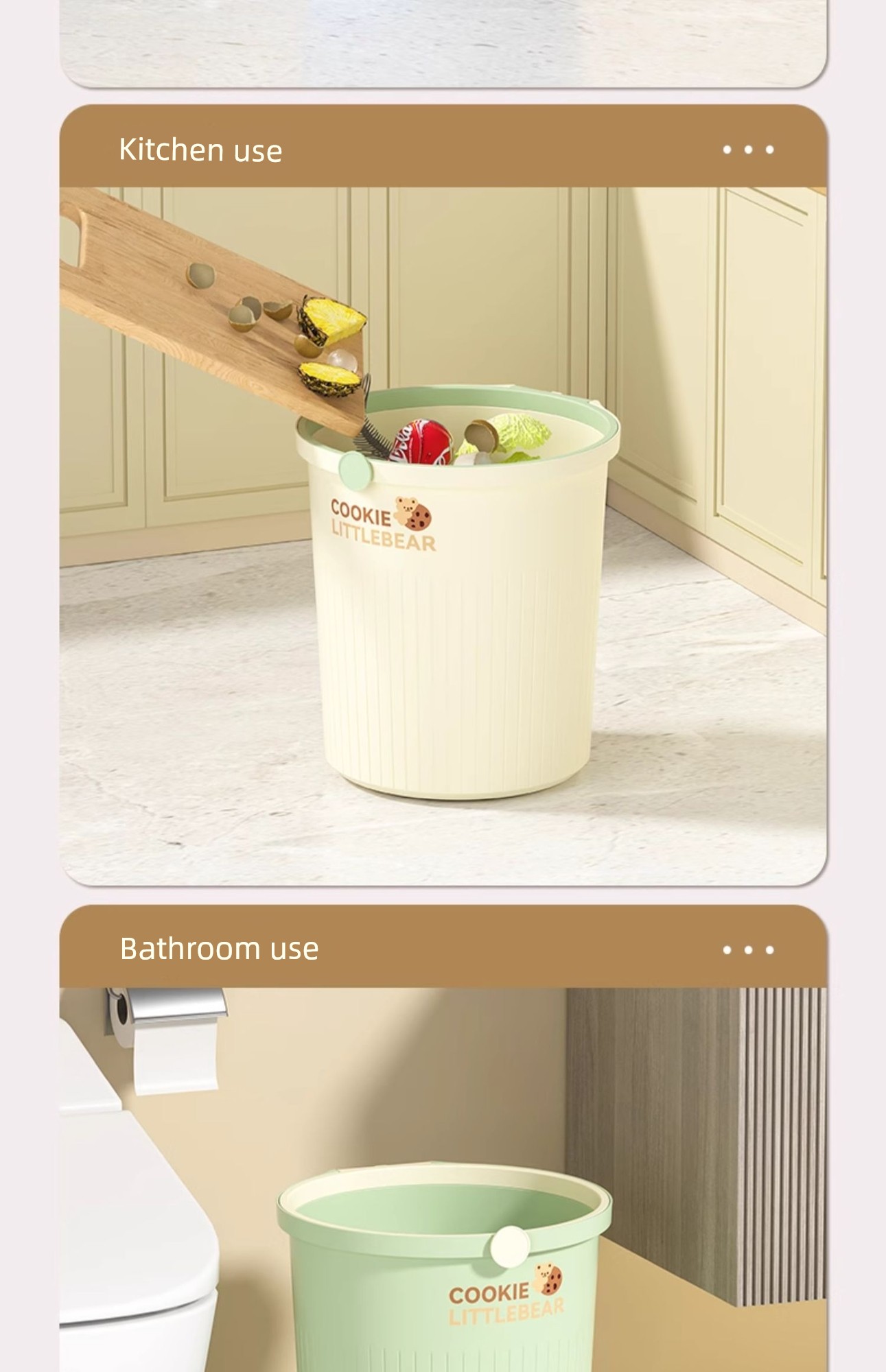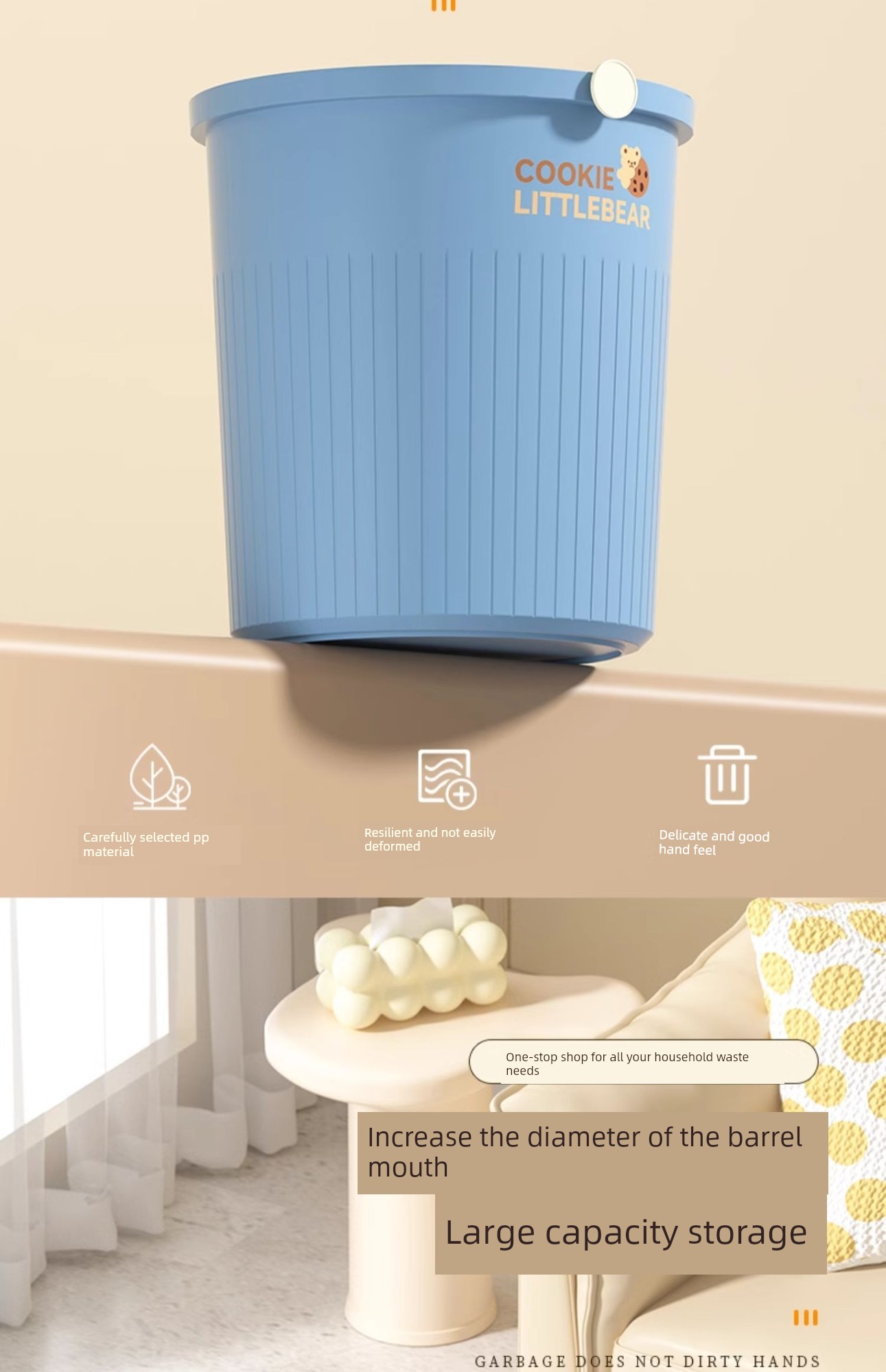 2026 New Model Simple Trash Can with a Ring-Shaped Lid in Cream Style for Kitchen, Living Room, Office, Toilet, and Bathroom Use