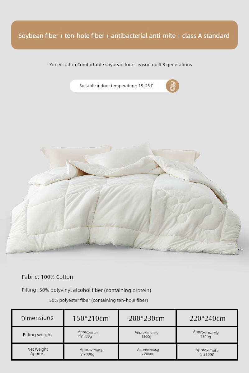 Four Seasons Quilt [50% Soybean Fiber + 40 Count Cotton Fabric + Antibacterial and Anti-Mite Technology] Yimei 3Rd Generation