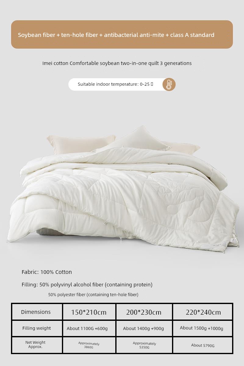 2-in-1 Quilt [50% Soybean Fiber + 40S Cotton Fabric + Antibacterial & Anti-Mite Technology] Yimei 3Rd Generation