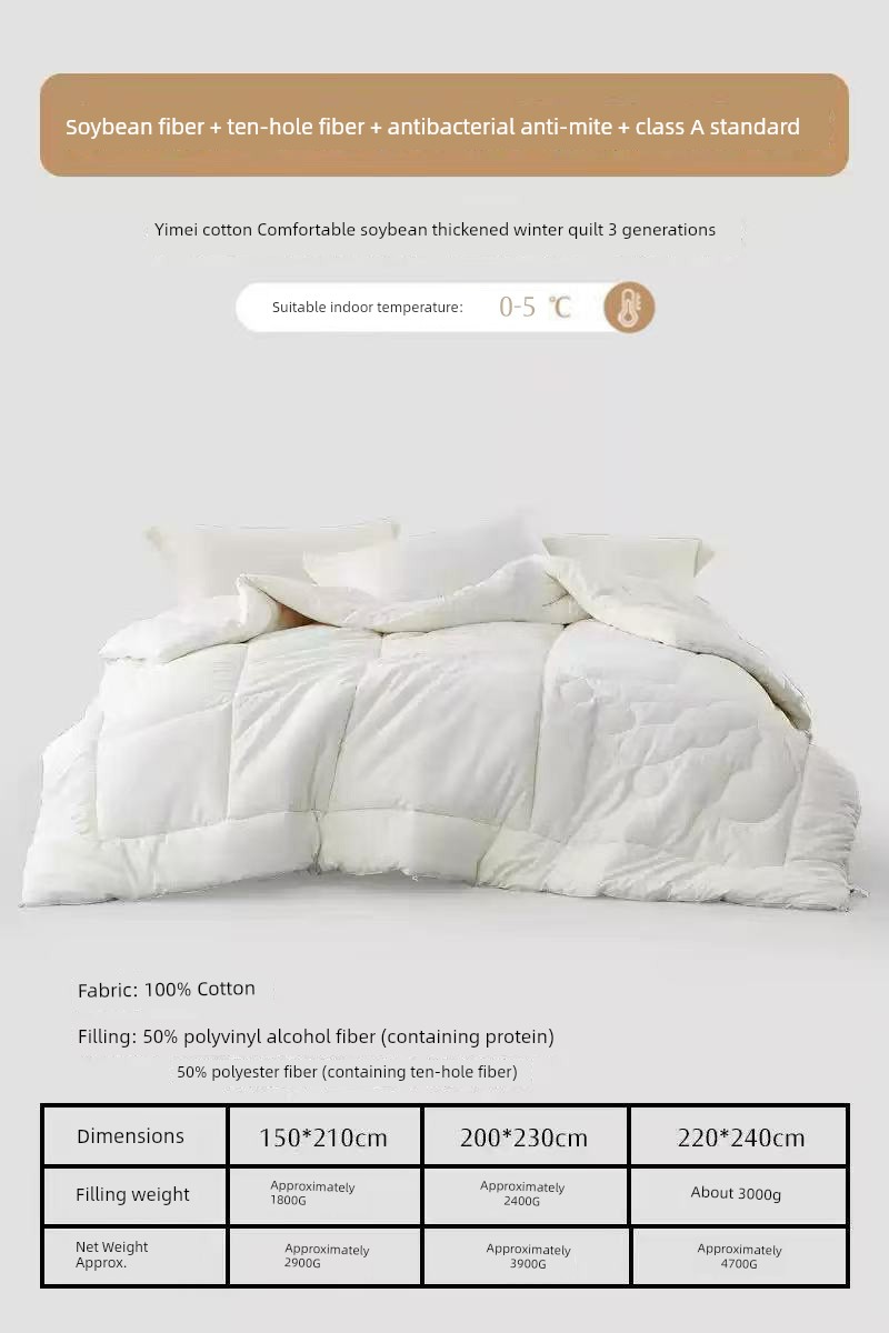 Thickened Winter Quilt [50% Soy Fiber + 40 Count Cotton Fabric + Antibacterial and Anti-Mite Technology] Yimei 3Rd Generation