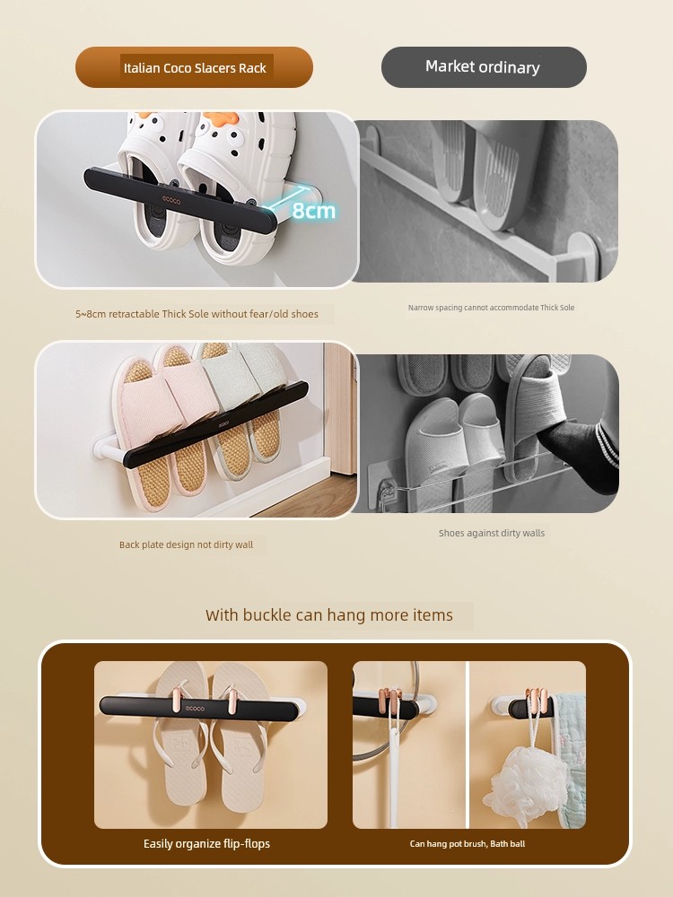 Punch-Free Bathroom Storage Handy Gadget Bathroom Slipper Rack